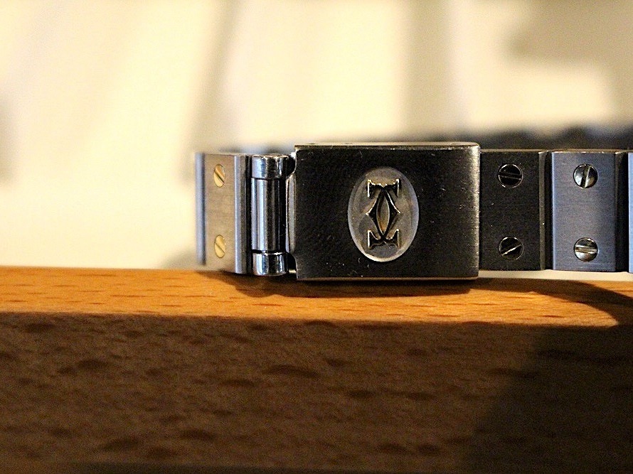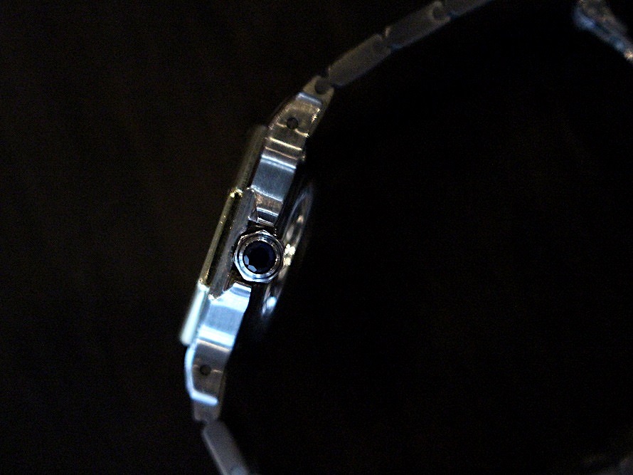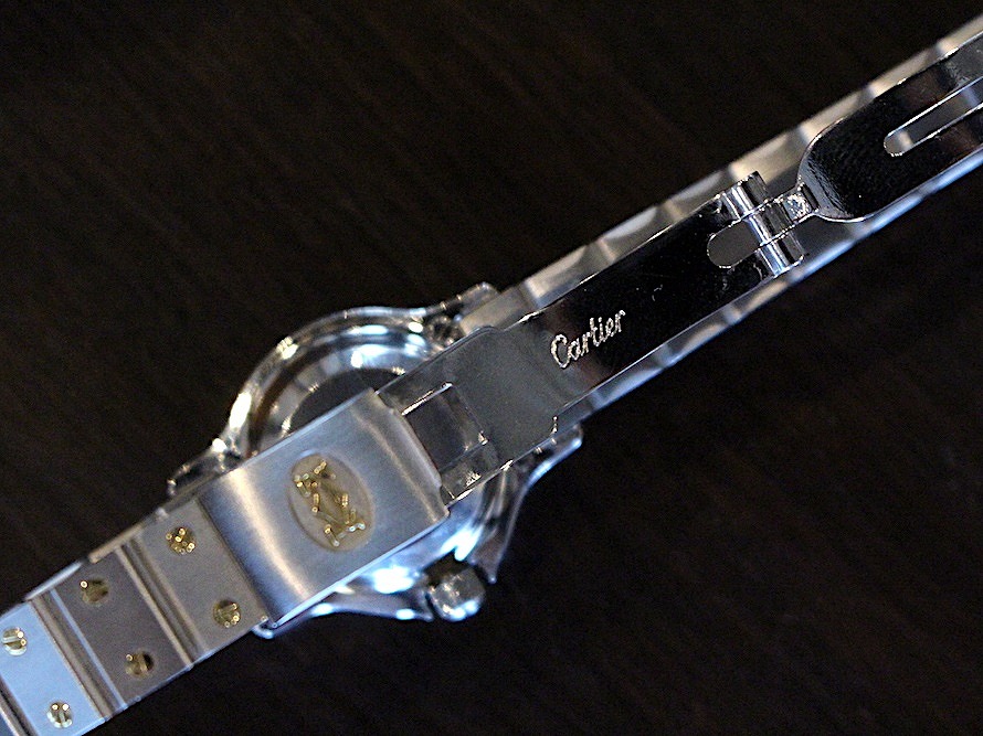 | 廃盤レディースモデル。生産終了モデルの「サントス・オクタゴンSM/SantosOctagon」80年代の自動巻きモデルです。特徴的な8角形のベゼルと、ローマンダイヤル、ブルースチール針、カボションリューズとカルティエらしい洗練されたスポーツウォッチです。現在のラブブレスは観音開きタイプに変更されておりますが、メタルブレスも当時から交換されていない初期型カルティエロゴ入リシングルバックルがセッティングされており、クラシカルな印象です。掲載前に新品仕上げを施しておりとても綺麗な状態ですので末永くご愛用頂けます。 |