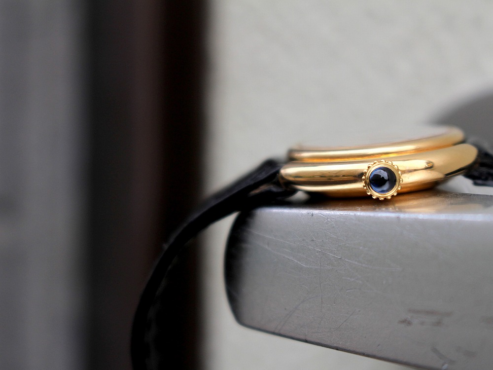 | 廃盤レディースモデル。1970年代のヴィンテージカルティエのヴァンドームSM。パリのヴァンドーム広場をデザインモチーフとした素晴らしいデザインです。初期型イエローゴールド製デプロイメントバックル (Dバックル)も付属しております。オーバーホール、外装仕上済み。レザーバンドのサイズ調整が出来ない初期バックルですので、定額落札のお客様に限りクロコサイドシャイシー仕上のレザーブレスのオーダー券をお付け致します(納期約1ヵ月) |