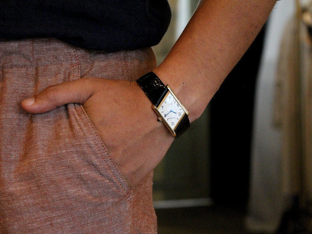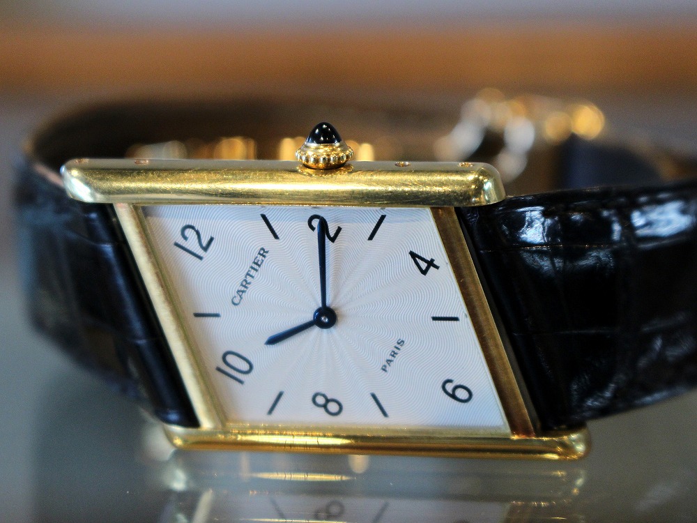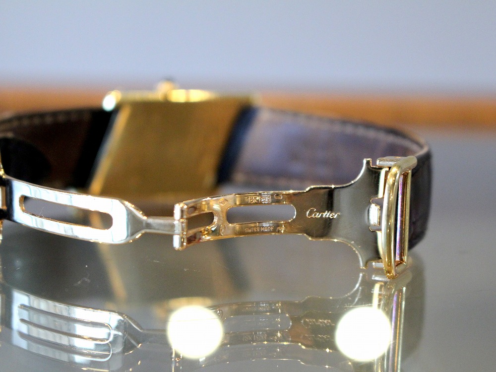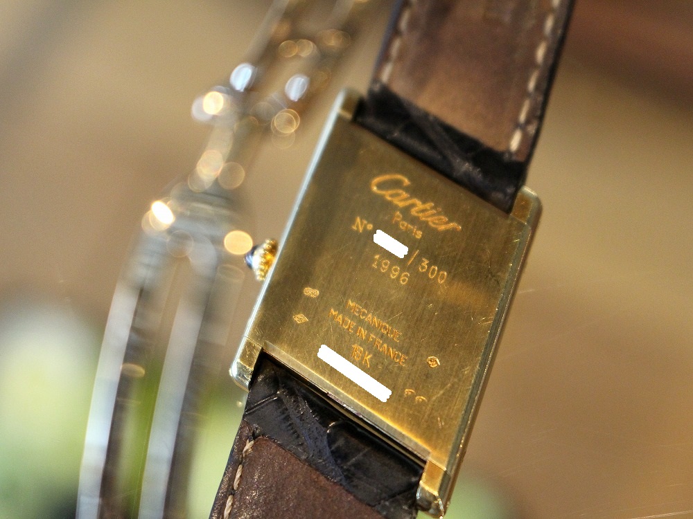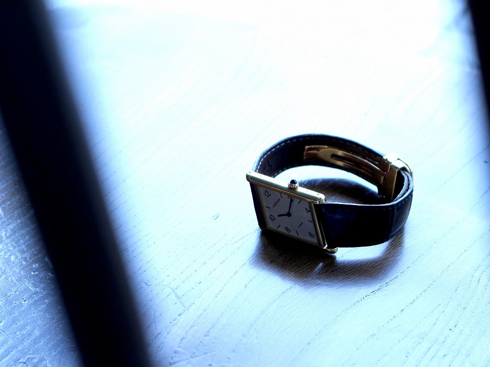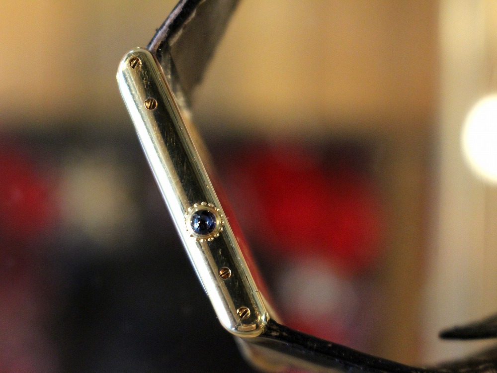 | 廃盤メンズモデル。1936年に発売されたタンクアシンメトリックのリミテッドモデル。1996年に300本限定にて作られた内の一本で、1998年から本格始動となったCPCP(コレクションプリヴェ)同様に、Cal.9P2のピアジェ製マニュファクチュールムーブを使用した最高峰のコレクションとして発売されたモデルです。腕を自然と曲げた時の角度にあわせたアシンメトリックなデザインは今見ても目新しく、見る者を魅了します。長年スイスメイドであった歴史の中で、裏蓋に刻印された『Made in france』の文字が何よりもカルティエの力の入れようを感じる事の出来る一本です。 |