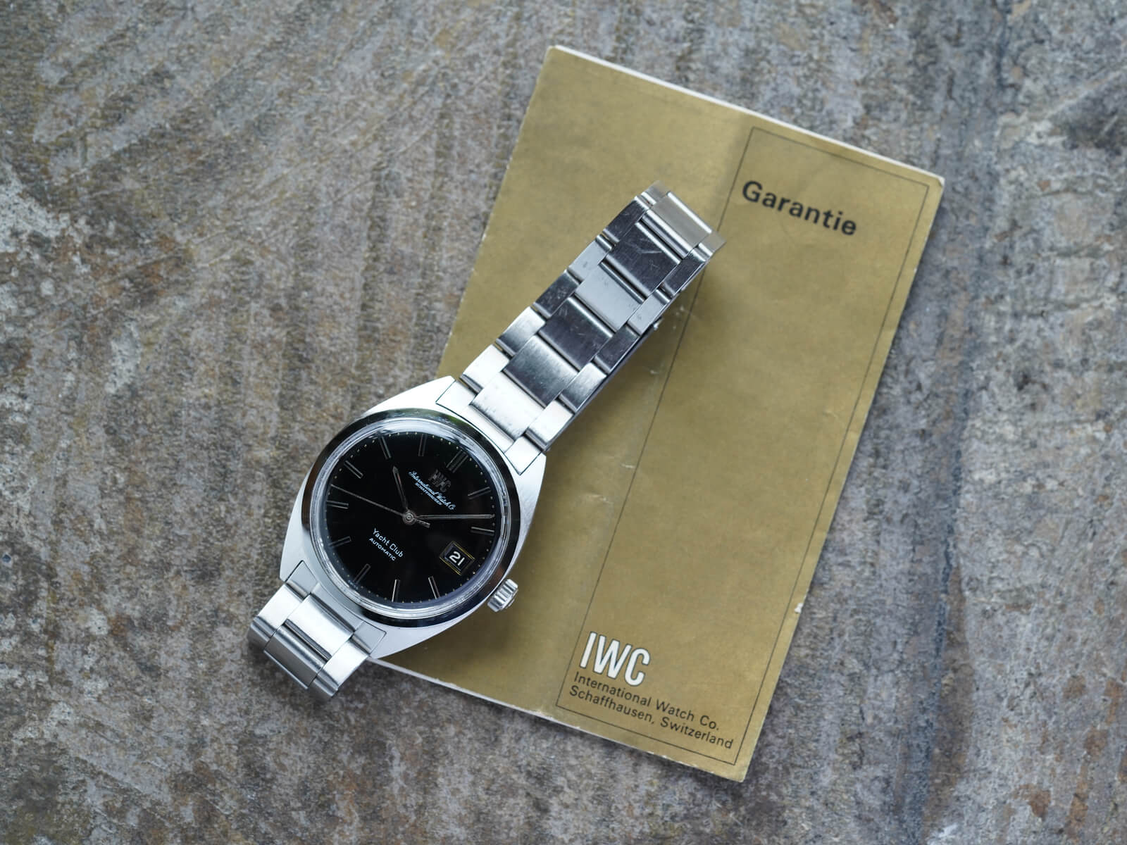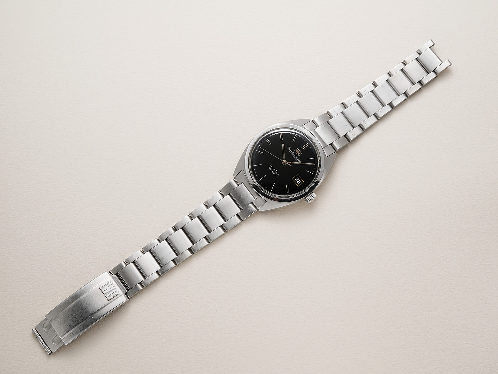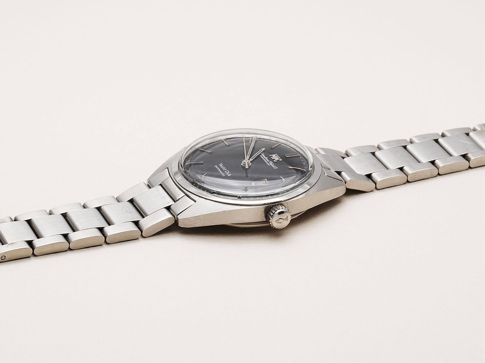 | メンズモデル 60年代にスタートした「ヨットクラブ/Yacht Club」と言うペットネームの通り、ヨット乗りの為に作られた、耐衝撃性・耐水性に優れた高級スポーツモデル。各メーカーのブランディングの歴史において重要な立ち位置にある正真正銘の「オールドインター/Oldinter」で、腕時計の名デザイナー「ジェラルドジェンタ/Charles Gerald Genta」によって創られた、流れる様な特徴のあるフォルムにマインドを見る事が出来ます。 今回は、ヴィンテージの魅力を引き立たせるミラーダイヤルで、キリっと引き締まった印象のモデル、ヨットクラブRef.R811ADのご紹介です。光沢のしっかりと残る漆黒のミラーダイヤルに、ペンシルハンドが浮かび上がるかの様な美しさを演出。デイトディスクもミラーダイヤルである事が、とても貴重な存在である事を物語り、往年のアプライドのIWCロゴにアイコニックな純正魚リューズ等の、素晴らしいディテールの揃った綺麗なモデルです。 ムーブメントは、自動巻きキャリバー8541を搭載。巻き上げ効率が高いペラトン式自動巻機構を採用し、耐衝撃性、メンテナンス性にも優れたIWCの歴史的発明のムーブメントです。23:45から24:00を行き来する事で日付の早送りもできるので、実用性にも優れております。 ブレスレットは、貴重なステンレス製IWCビックロゴ純正3連ブレスレットが付属しております。特にこの個体に関しては、1968年購入時のメーカーギャランティーカードも付属しているので、大切にされていた事が伺える魅力的な存在です。ミラーダイヤルの艶感がとても綺麗で、シンプルでありながら時計本来の美しさの際立つ、とても素敵な時計です。是非店頭にてご覧ください。 |