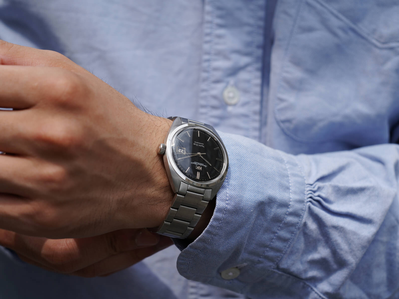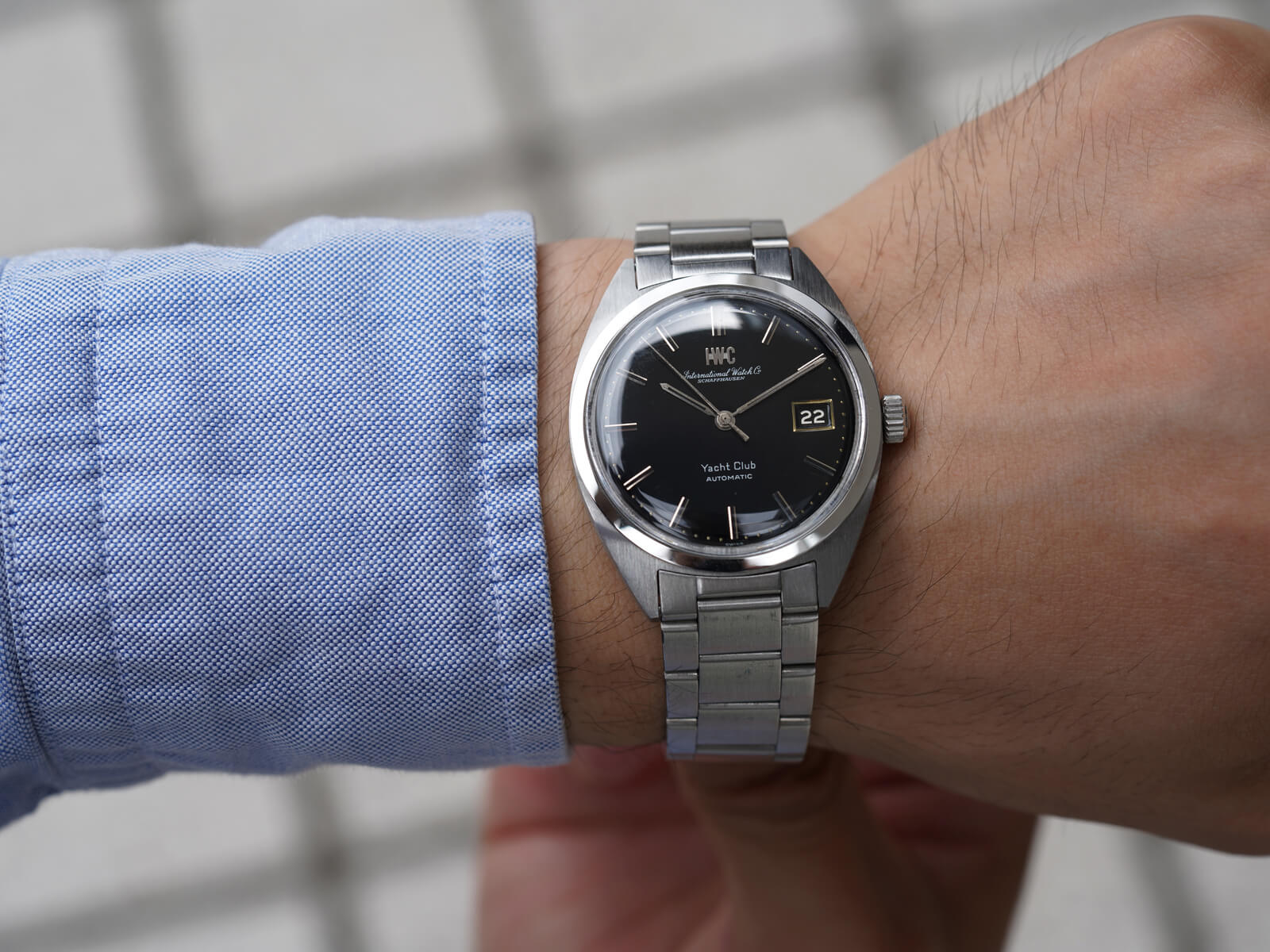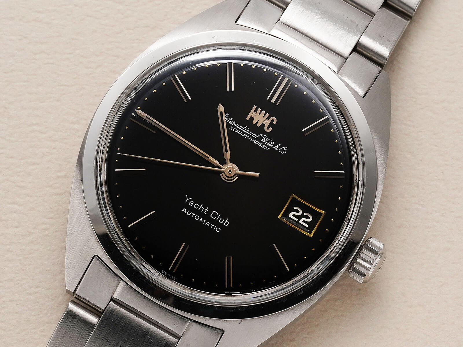 | メンズモデル 60年代にスタートした「ヨットクラブ/Yacht Club」と言うペットネームの通り、ヨット乗りの為に作られた、耐衝撃性・耐水性に優れた高級スポーツモデル。各メーカーのブランディングの歴史において重要な立ち位置にある正真正銘の「オールドインター/Oldinter」で、腕時計の名デザイナー「ジェラルドジェンタ/Charles Gerald Genta」によって創られた、流れる様な特徴のあるフォルムにマインドを見る事が出来ます。 今回は、ヴィンテージの魅力を引き立たせるミラーダイヤルで、キリっと引き締まった印象のモデル、ヨットクラブRef.R811ADのご紹介です。光沢のしっかりと残る漆黒のミラーダイヤルに、ペンシルハンドが浮かび上がるかの様な美しさを演出。デイトディスクもミラーダイヤルである事が、とても貴重な存在である事を物語り、往年のアプライドのIWCロゴにアイコニックな純正魚リューズ等の、素晴らしいディテールの揃った綺麗なモデルです。 ムーブメントは、自動巻きキャリバー8541を搭載。巻き上げ効率が高いペラトン式自動巻機構を採用し、耐衝撃性、メンテナンス性にも優れたIWCの歴史的発明のムーブメントです。23:45から24:00を行き来する事で日付の早送りもできるので、実用性にも優れております。 ブレスレットは、貴重なステンレス製IWCビックロゴ純正3連ブレスレットが付属しております。特にこの個体に関しては、1968年購入時のメーカーギャランティーカードも付属しているので、大切にされていた事が伺える魅力的な存在です。ミラーダイヤルの艶感がとても綺麗で、シンプルでありながら時計本来の美しさの際立つ、とても素敵な時計です。是非店頭にてご覧ください。 |