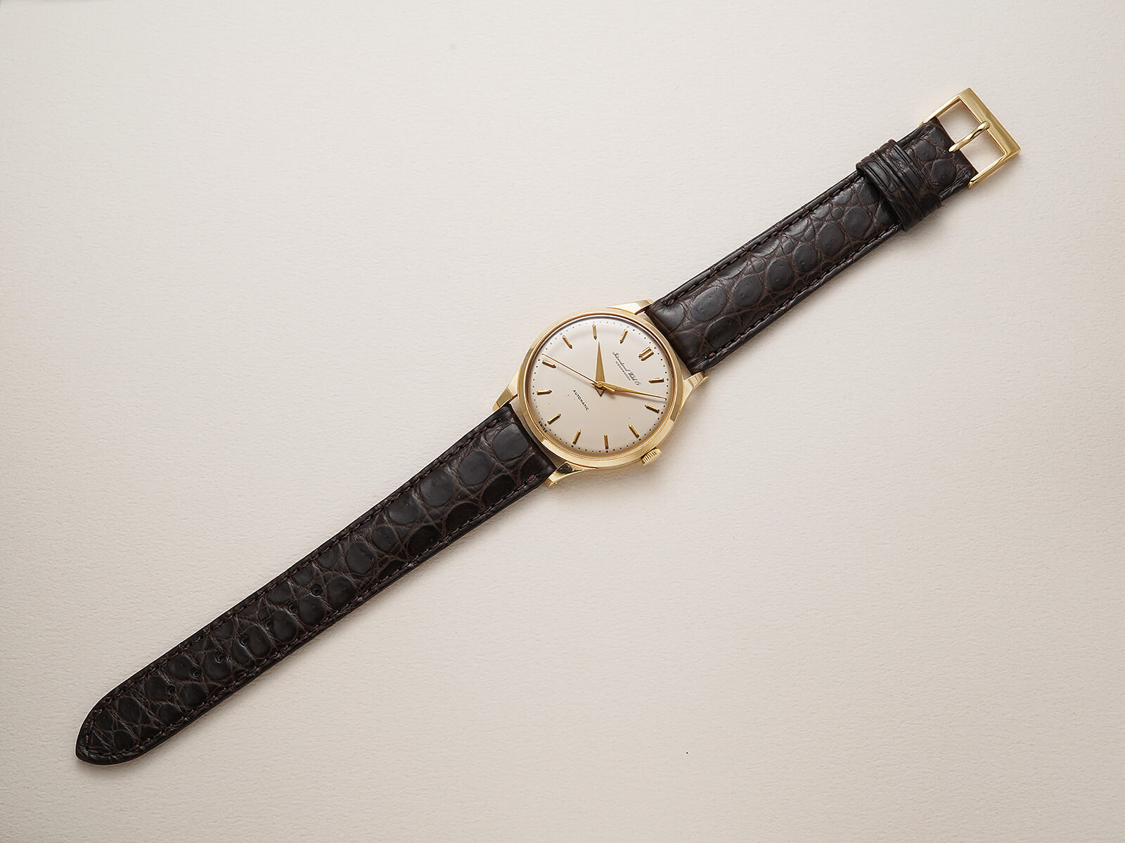 | 廃盤メンズモデル [IWC/International Watch Company]は社名が表しているように、伝統的なスイスとアメリカの洗練された機械生産技術を融合させ、1868年に創業したスイスの時計会社です。優秀の証であるクロノメーター規格よりも厳しいとされる社内規格を持ち、軍用時計等の多くの名機を輩出。質実剛健なデザインと卓越した技術力で、優れた時計製造を続けてきました。 今回は、イエローゴールド製ラウンドケースが美しく、IWCらしいモデルのご紹介です。風格のあるアイボリーダイヤルに、渋いゴールドのバレットインデックスとドルフィンハンドで、落ち着きを感じさせてくれる魅力的な一本。オールドインター特有の、クラシカルで品の良い筆記体ロゴや職人気質を感じさせる金属のボールを埋め込んだミニッツマーカーもあり、無駄のないシンプルさと実用性の高いディテールで、腕時計通の間でも「玄人好み」と認められる逸品です。 ムーブメントは、ペラトン式自動巻きキャリバー853を搭載。この時代のIWCムーブメントは、細部にわたり丁寧な仕上げが施された美しさがあり、インジュニアにも搭載された名機であると同時に、パテックと同等の評価をされる存在でもあります。 レザーブレスには、当店オリジナルのクロコダイルレザーのブラウンをセレクト。ドレスウォッチの様に美しく袖口に収まり、知性と品格を印象づける素晴らしい時計です。ぜひ店頭にて御覧ください。 |