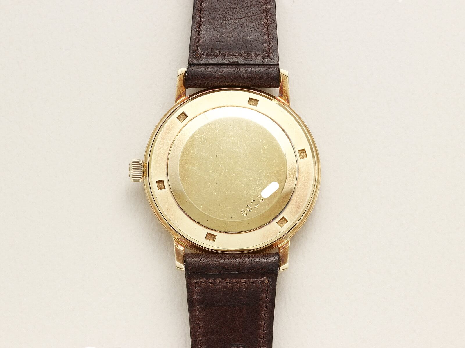 | 廃盤メンズモデル エテルナ社は、1856年にスイスのグレンヘンに設立されたマニュファクチュールです。その技術力、生産力において当時完成品メーカーとしては際立った存在で、ロンジン、オメガに並ぶスイスの強豪メーカーとして存在し、後の最大手のムーブメントメーカー、ETA(エタ)社もエテルナが設立しました。 今回ご紹介のRef.746VTは、スイス最古の時計宝飾店、BEYERとの貴重なWネームモデルのご紹介です。イエローゴールドを使用したラウンドケースに、サンバースト加工の綺麗なシルバーダイヤル、墨入りされたバーインデックスとペンシルハンドが視認性も良く、シンプルでありながら格別なオーラを放っている一本。 ムーブメントは、「エテルナマチック」のキャリバー1500Kを搭載。世界で初めて自動巻きローター内部に、ボールベアリングを組み込みまれたムーブメントで、機能性が飛躍的に向上された一躍エテルナの名を知らしめた存在です。ちなみにエテルナのロゴマークは、5つのボールベアリングをモチーフとしています。 レザーブレスには、Accurate Form製の新品カーフレザーのブラウンをセレクト。ヴィンテージの風合いを感じさせつつも都会的で、実用性も高く、様々なシーンに合わせやすいお奨めの時計です。 是非店頭にてご覧ください。 |