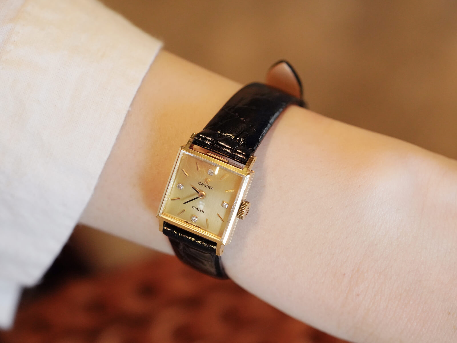 オメガ/スクエアケース/ゴールドダイヤル/4ポイントダイヤモンド/チューラー/Omega/Square Case/Gold Dial/Four Point Diamond/For Turler - 江口洋品店・江口時計店 / Eguchi Store Watch, Repair, Clothes