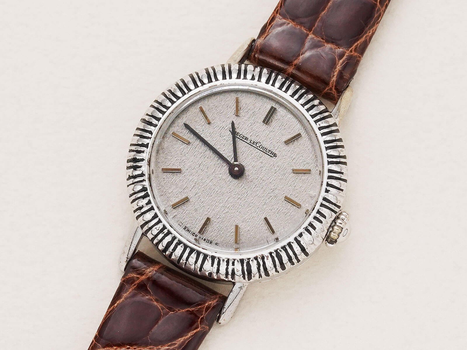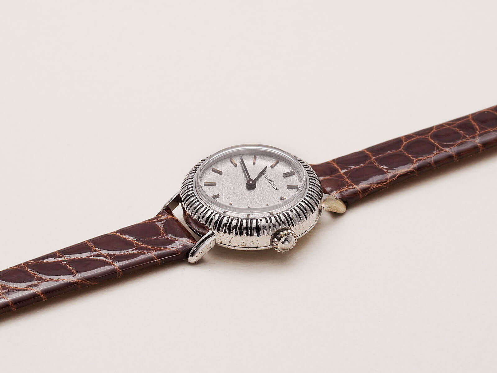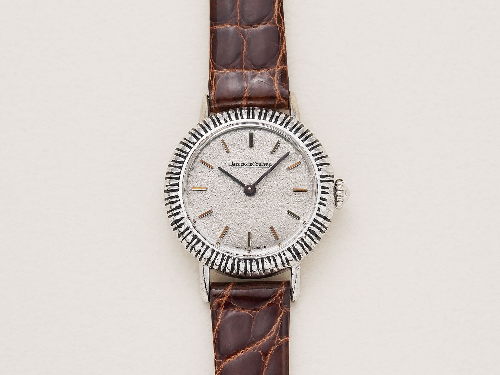 | 廃盤レディースモデル ジャガールクルトは1833年にスイスの小さな工房から始まり、多くのメーカーにムーブメントを供給していた一流のマニファクチュール。ムーブメントの信頼性は勿論の事、全工程を自社内で行い、時計業界において模範的とも言えるマインドを持ったブランドです。 今回ご紹介のRef.6014は、シルバー製ラウンドケースのベゼル部分に、繊細な刻み模様が施された個性的な一本です。気品漂うモザイク模様の入ったダイヤルが、クラシカルな上品さを感じさせてくれる綺麗なデザイン。繊細で優美な魅力を感じさせる、独特な造形美を演出された素晴らしいモデルです。 ムーブメントは、手巻き式キャリバー841を搭載。コンパクトな設計ながら、卓越した精度と耐久性を実現した代表作です。 レザーブレスには、Cassis社製アリゲーターレザーのシャイニーブラウンをセレクト。ユニークでありながら個性溢れる独特な魅力がお奨めの時計です。是非お手に取ってご覧ください。 |