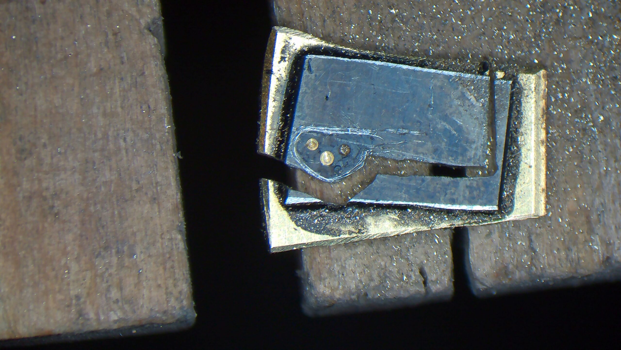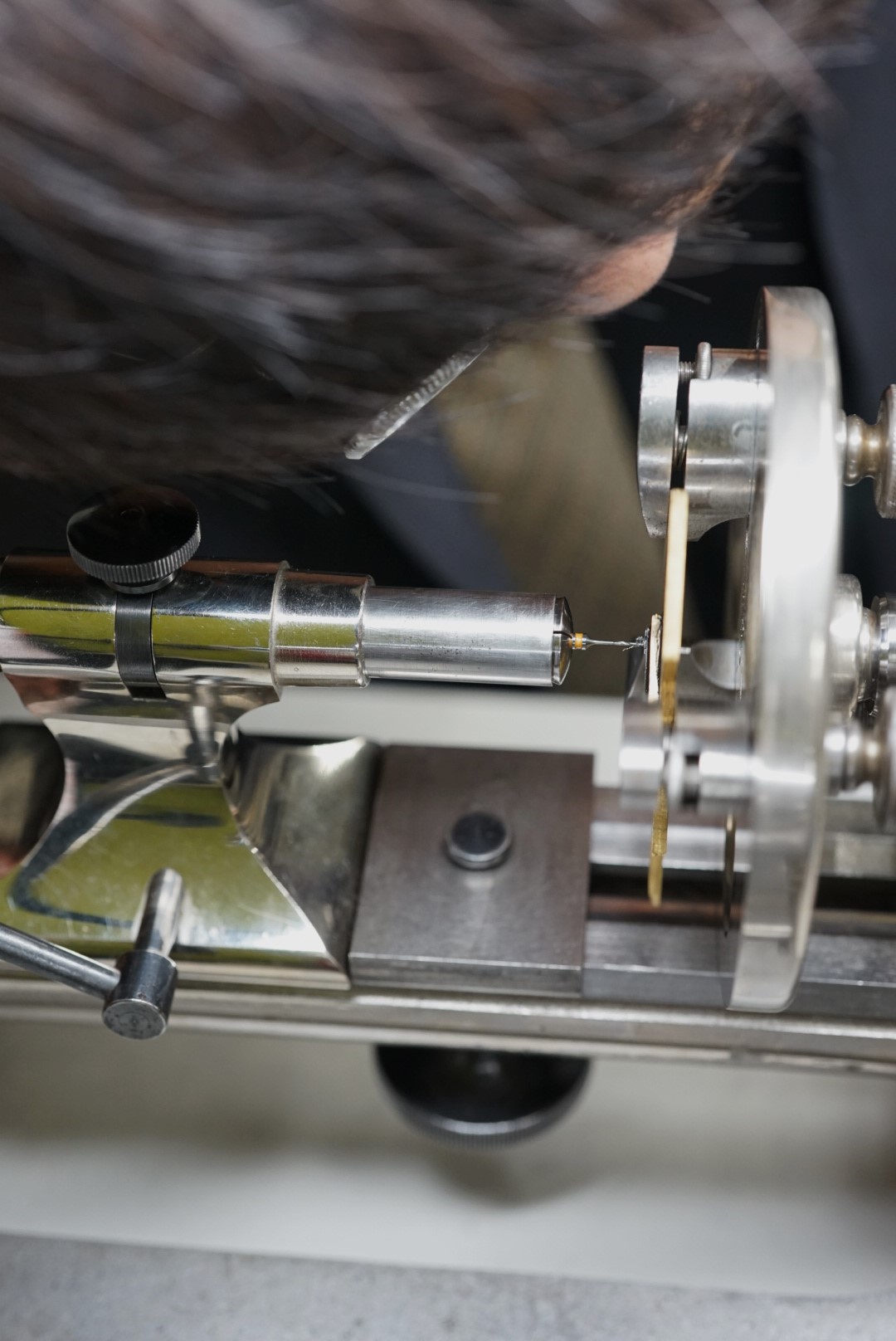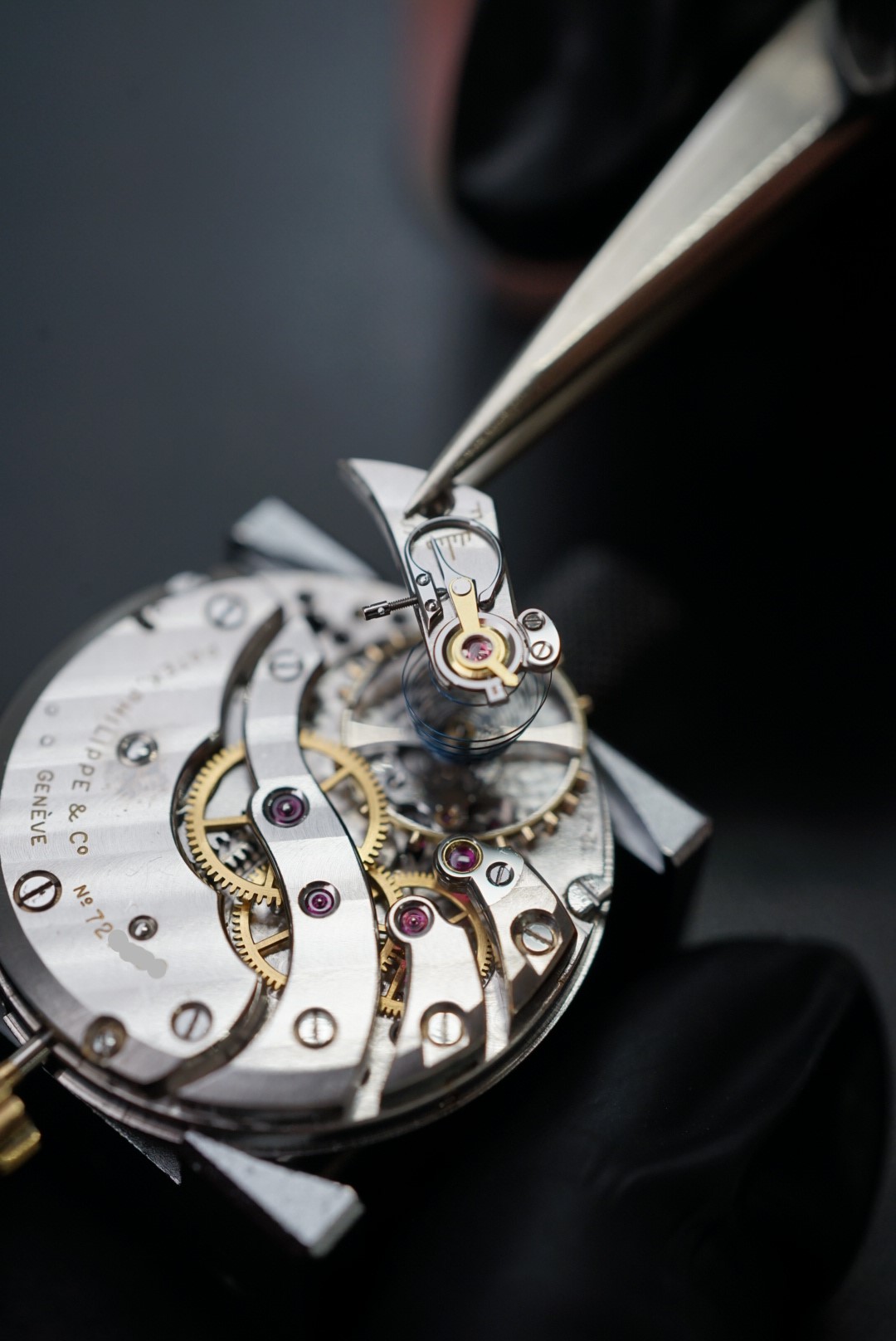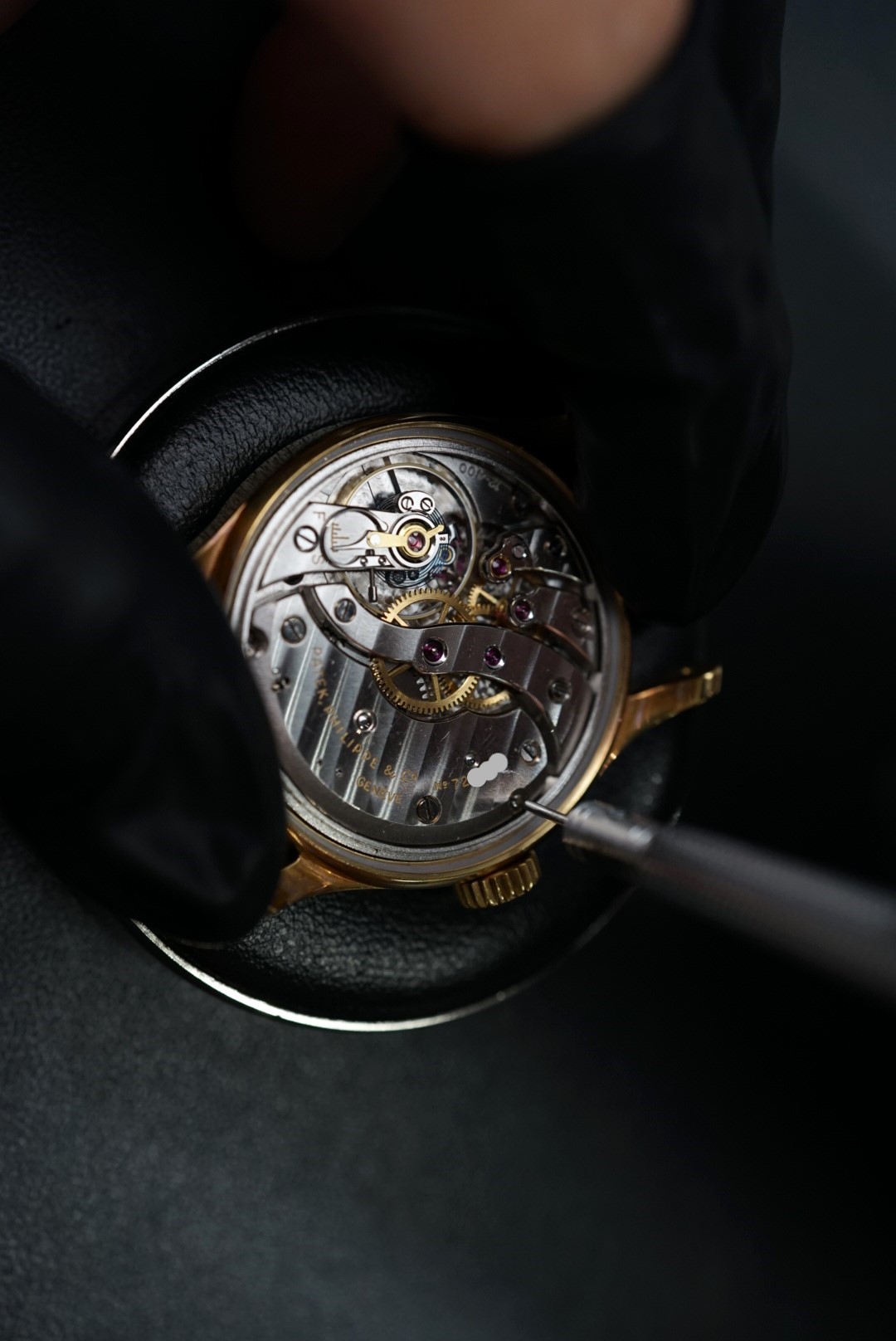 顕微鏡の画像です。受けの角は勿論の事、ルビーが入る穴の周りやアンクルと呼ばれる小さいパーツにも仕上げが施されています。コート・ド・ジュネーブも綺麗です。