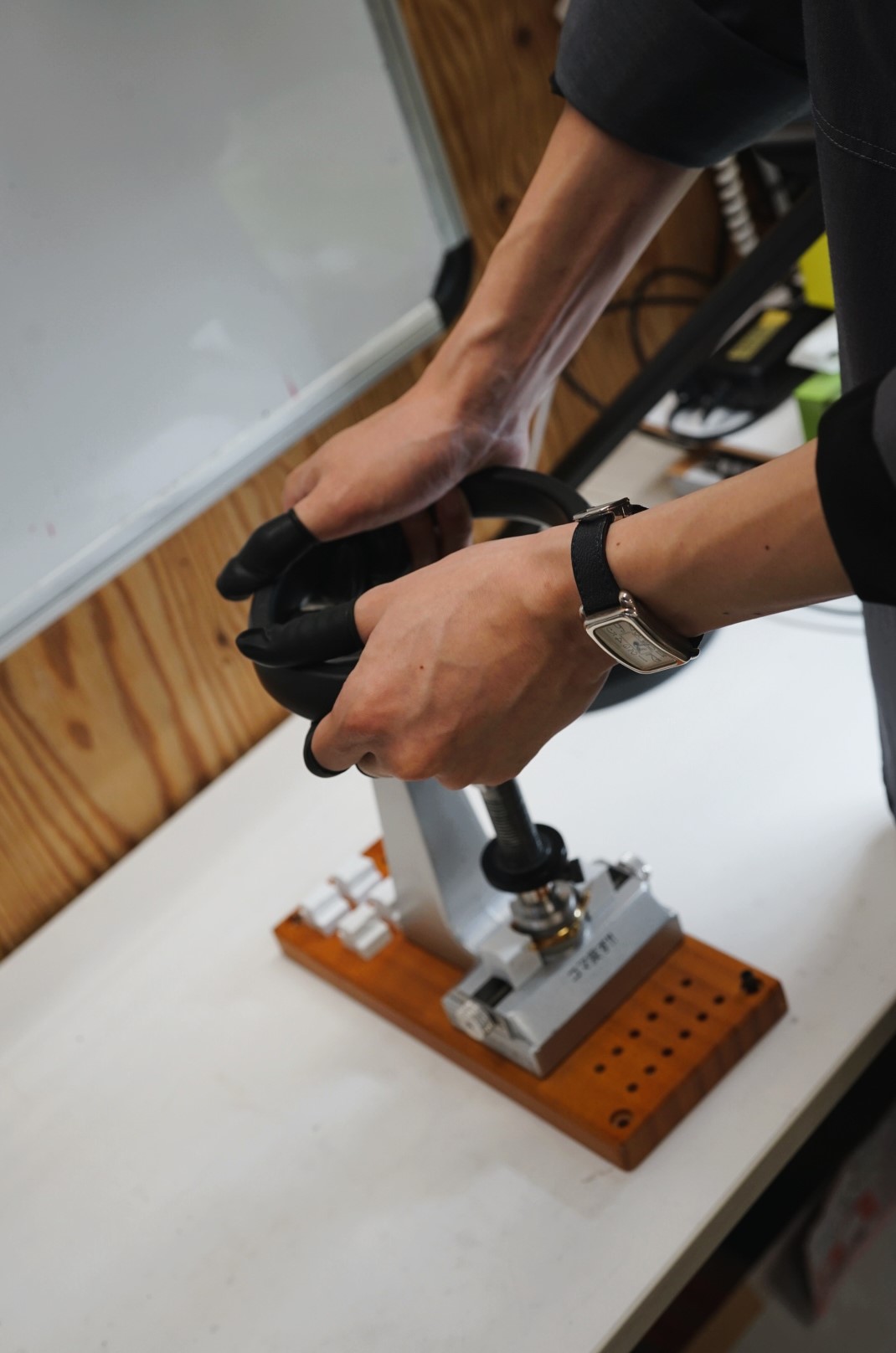 まずは専用の器具で裏蓋を開けます。