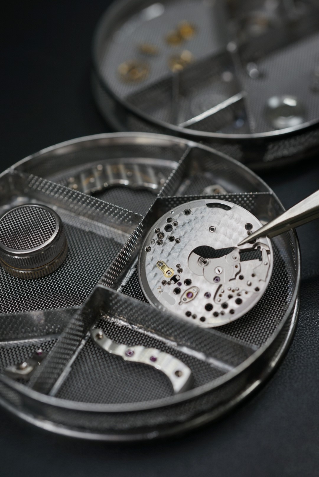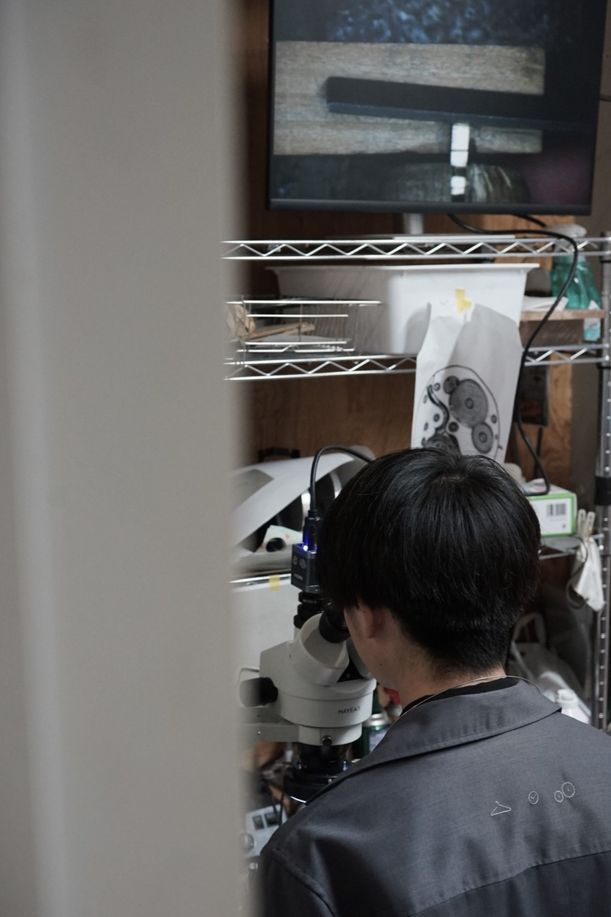 注油をします。完全に見えない箇所ですが、こんなところにもしっかりとペルラージュ仕上げが施されています。