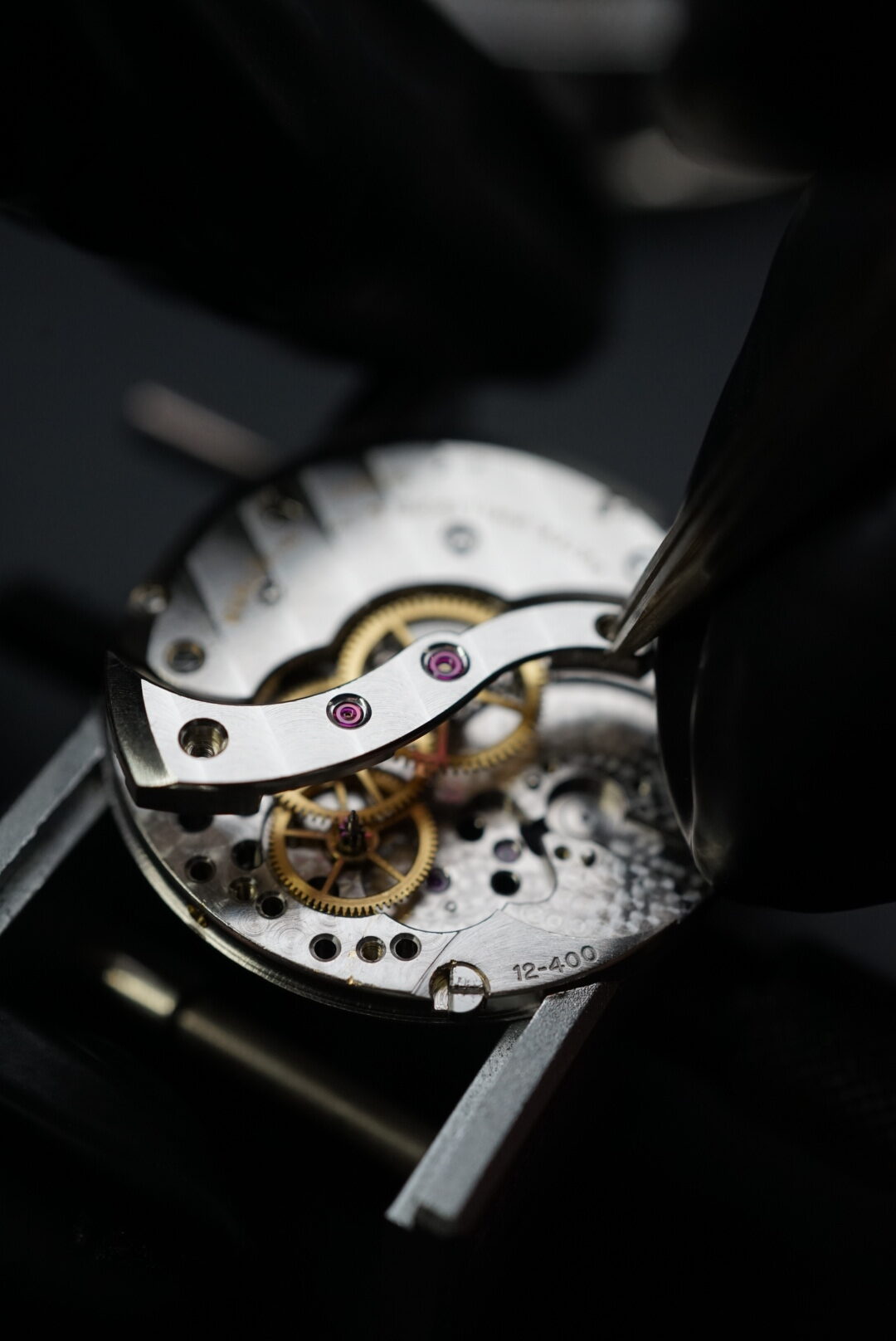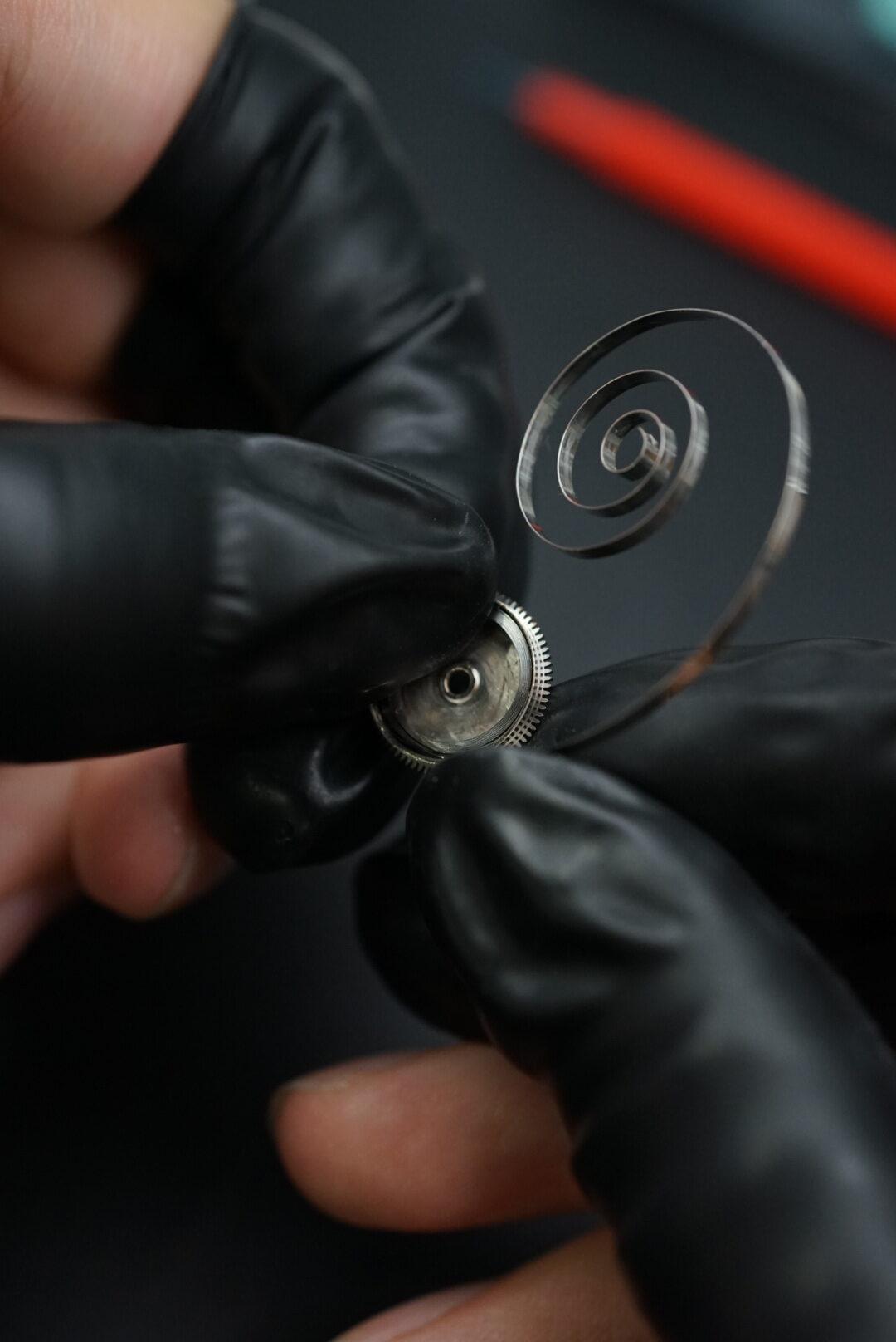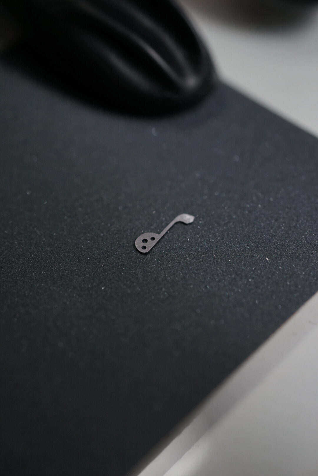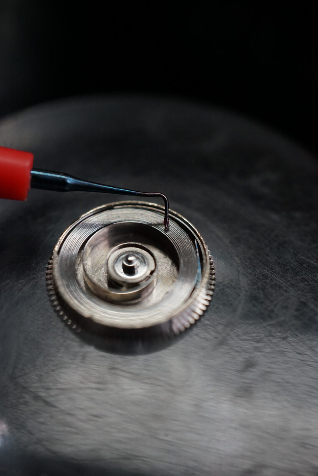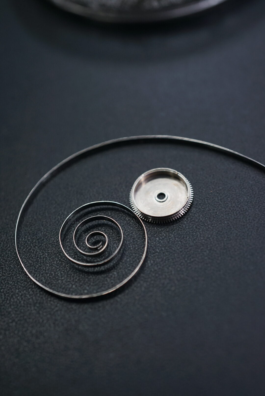今回製作したパーツが折れているとリューズを引いた時の感覚が軽く、針を回そうとしてもすぐにリューズが戻ってしまう症状がおこります。修理をしていてよく折れている事が多い箇所です。パテックフィリップに限らず、お持ちの時計で同じような症状があれば、是非一度ご相談下さい。