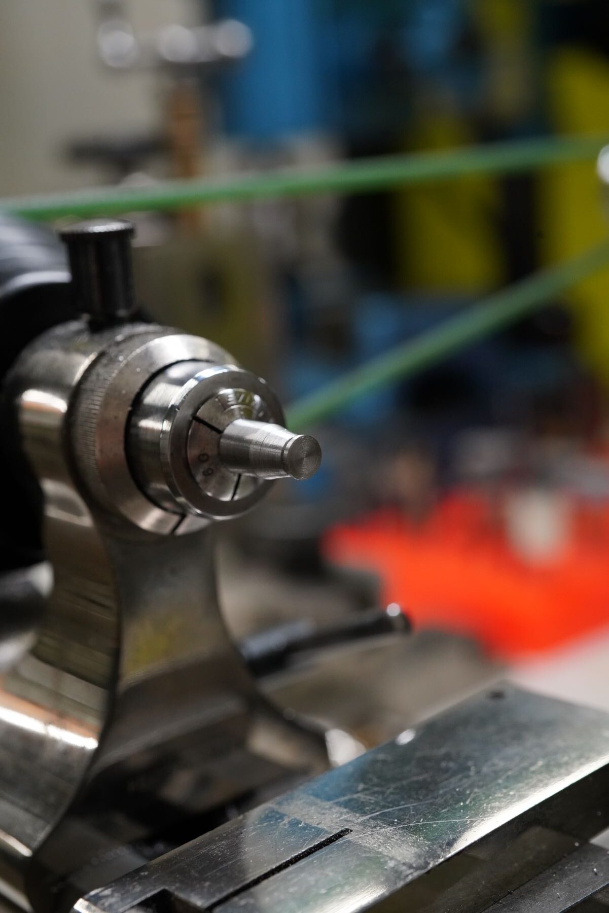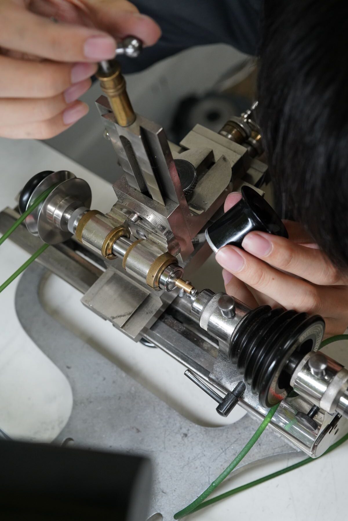 設計図をもとに旋盤で丸いスチール棒を切削していきます。