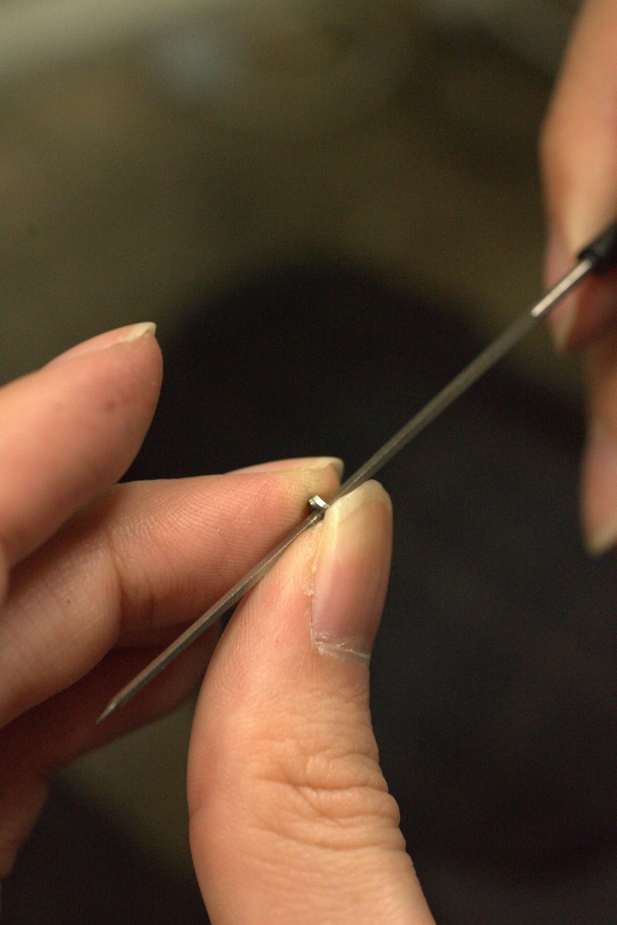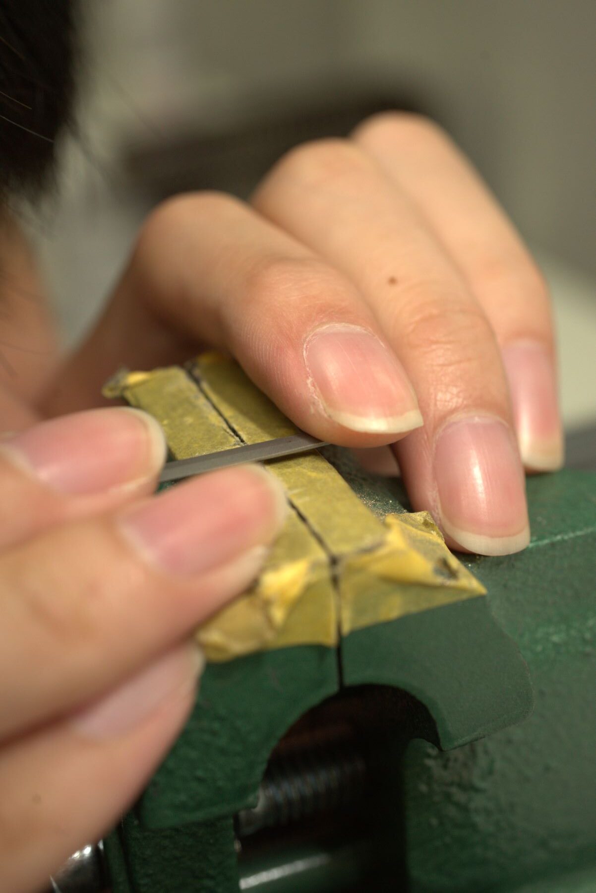 ある程度の弾性を持たせるために焼き入れ・焼き戻しを行います。