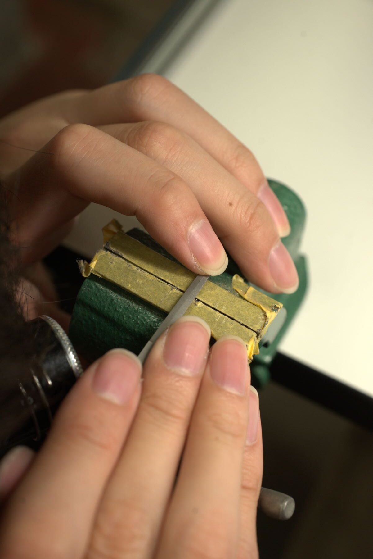 まだ切削痕や金属バリがあるので、形をととのえます。