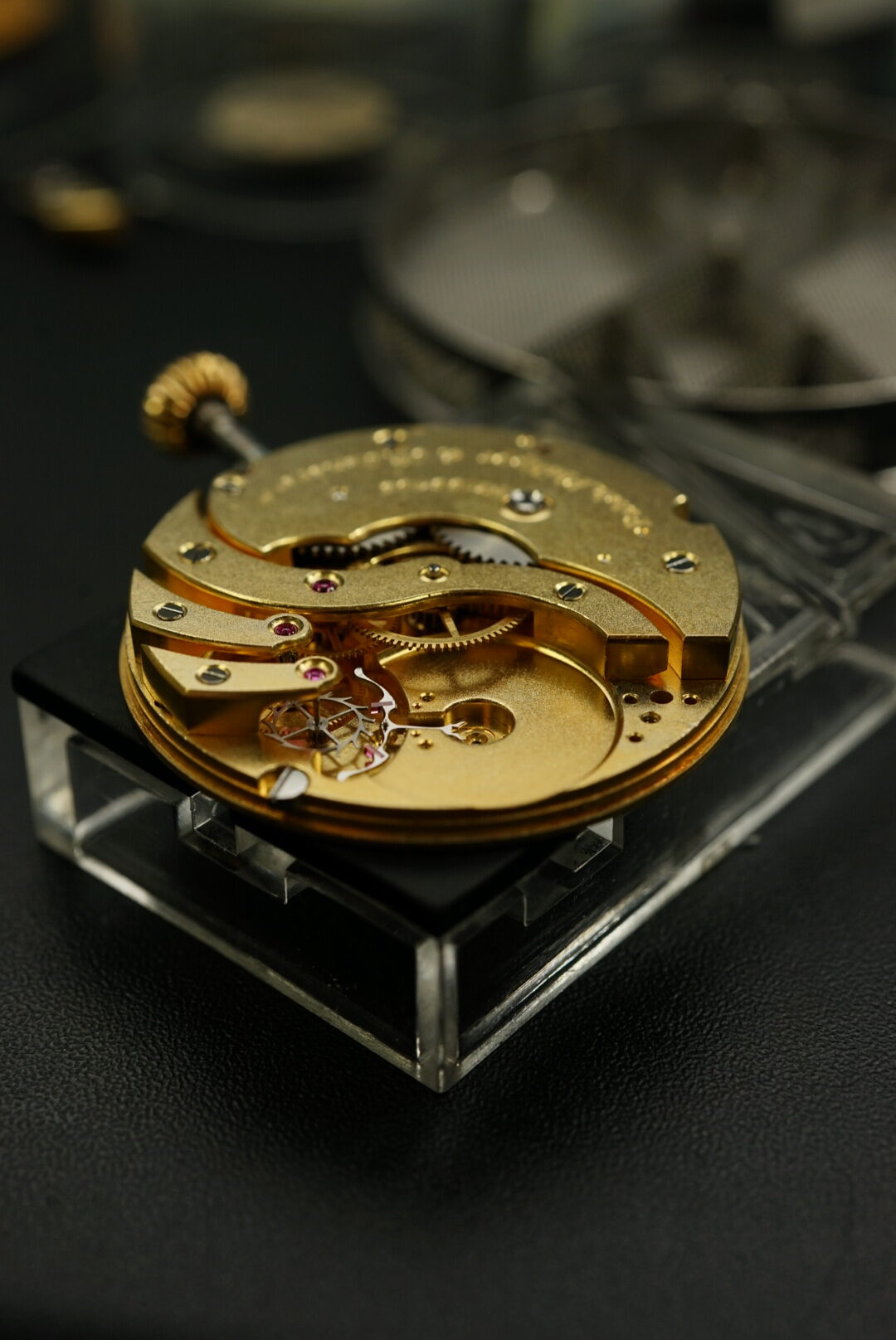 今回は変わった修理をご紹介します。古い懐中時計に入っているゼネバストップという特徴的なパーツがあります。