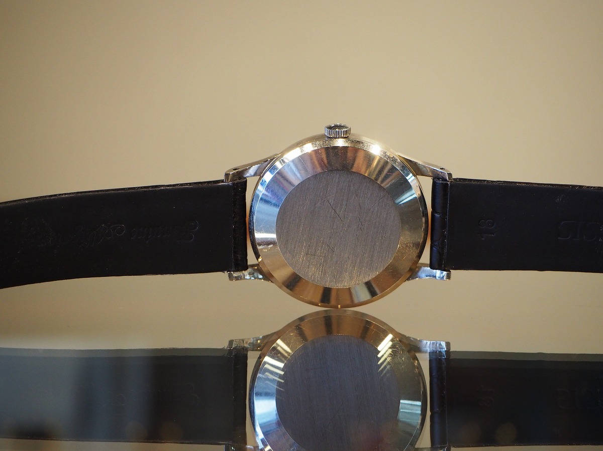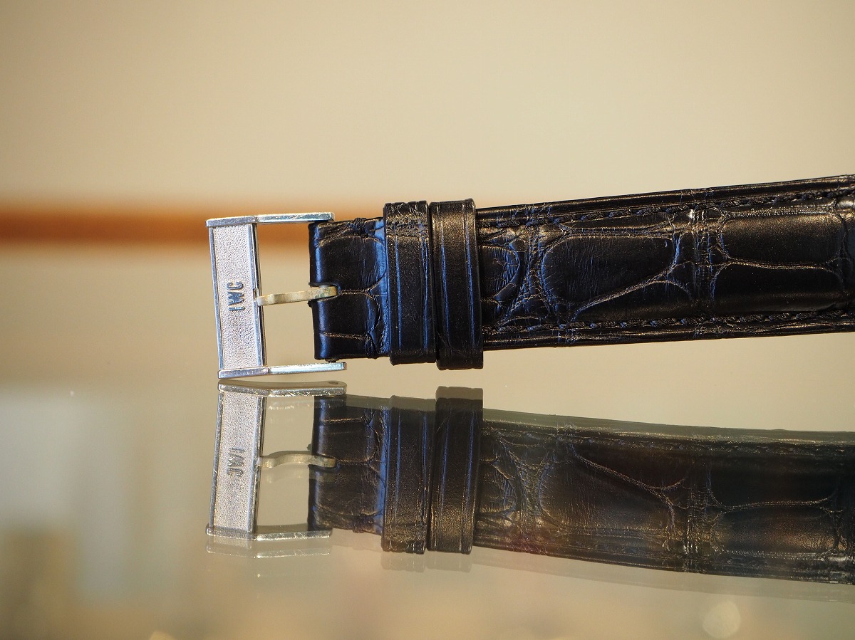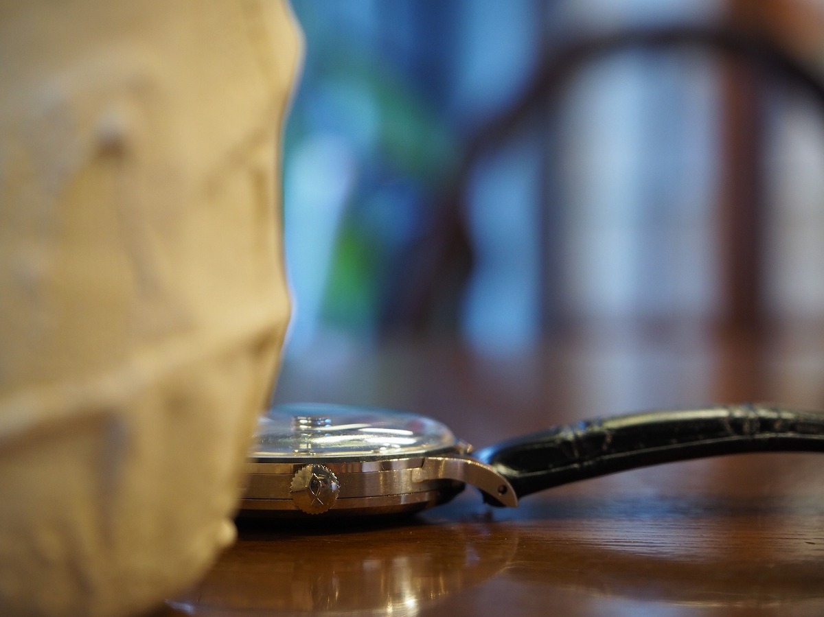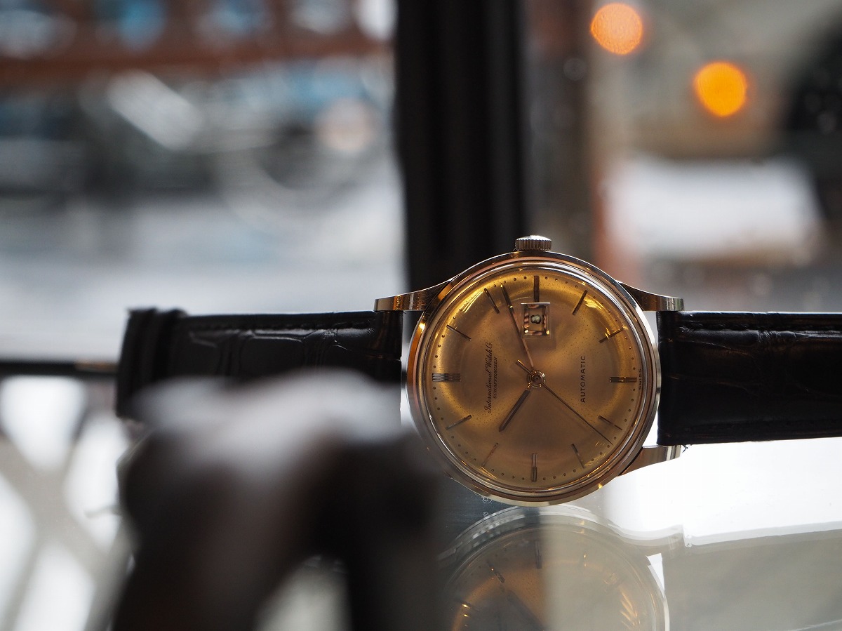 もっと瞬間に違いを感じるホワイトゴールドのシンプルなスナップバックラウンドケース。「IWC/Internationalwatchcompany」の素晴らしいディテールが詰め込まれたバーインデックスにペンシルハンド針の組み合わせが、オールドインターを象徴するシンプルなデザイン。外周のミニッツマーカーのドットポイントはプリントではなく、ダイヤルに金属のボールを埋め込んだ”パール・ドロップ”手法によるもの。手の込んだオリジナルダイヤルに職人気質が宿る素晴らしい一本です。綺麗に退色したシルバーダイヤルはアイボリーに輝き、魚リューズもオールドインターを語る上で欠かせないポイントです。ムーブメントは、ペラトン式自動巻きCal8531(1959年~)で、デイトがダイヤルの内側に寄った「寄り目デイト」を有しており、Cal853(1958年~)にデイト機能を載せた機械であり、IWCの技術者『アルバート・ペラトン/Albert Peraton』の開発した素晴らしいディテールを味わう事が出来る正真正銘のヴィンテージムーブメントです。純正尾錠も付属する素晴らしい状態ですので、レザーブレスには最高級の竹斑クロコダイルレザーベルトをセレクトしております。