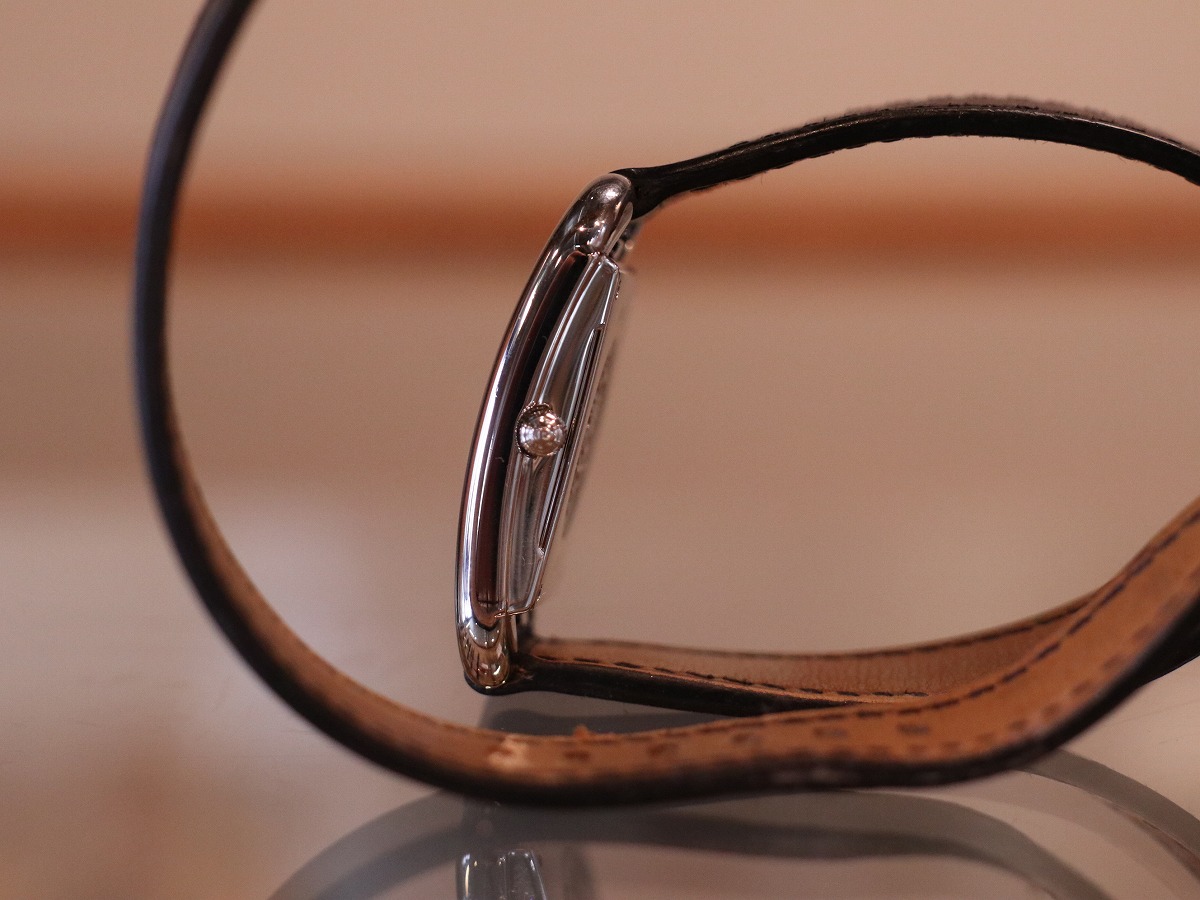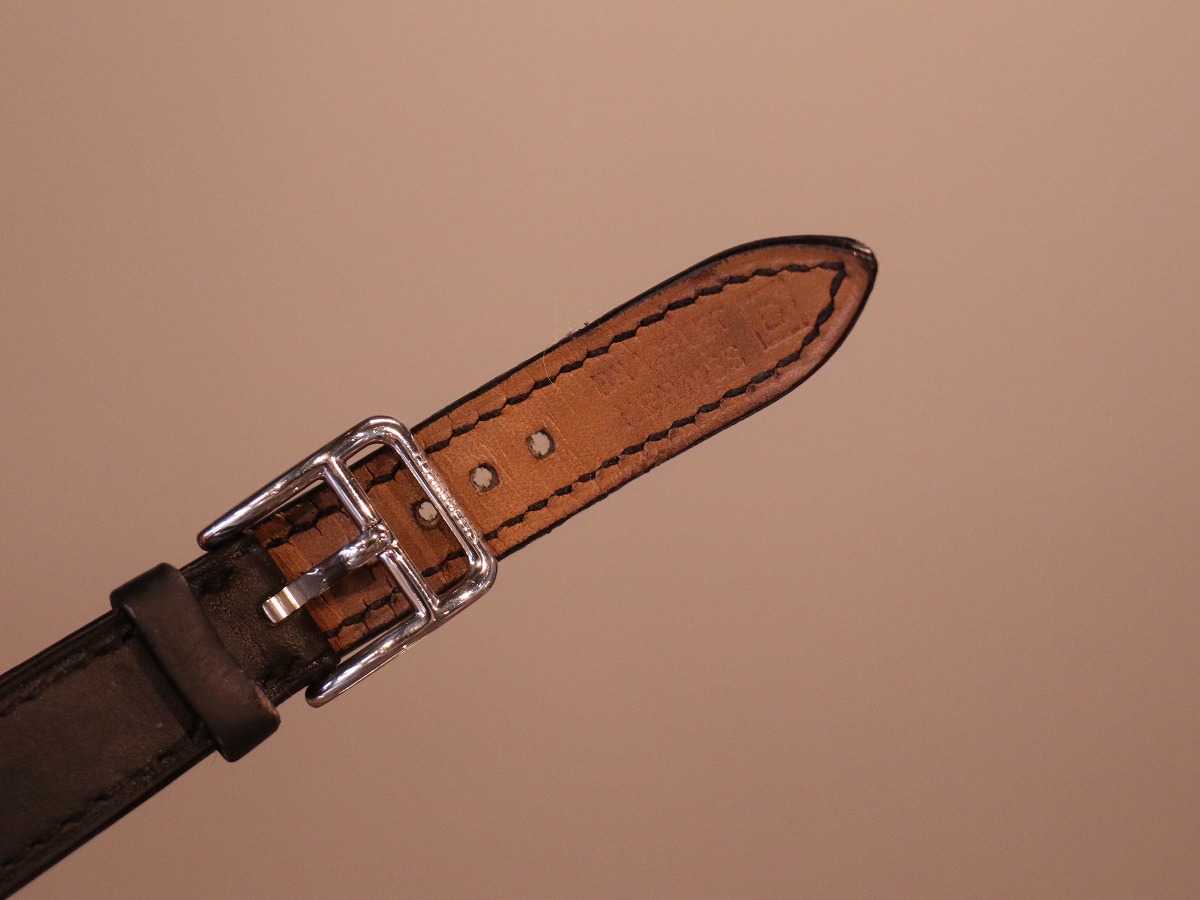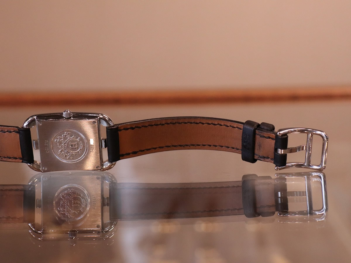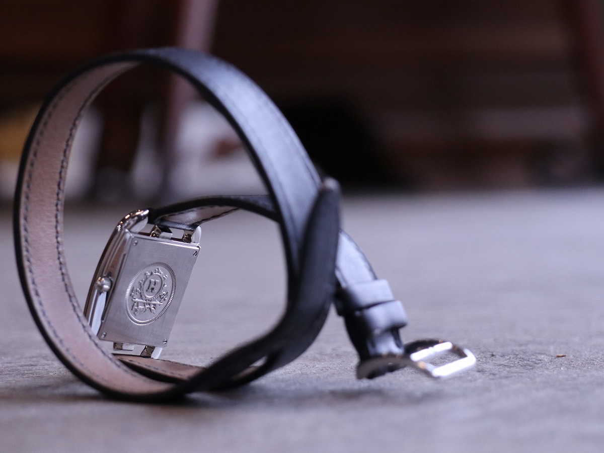 エルメスのコレクションを語る上で欠かせない存在である、マルタンマルジェラのデザインとして知られる「Cape Cod / ケープコッド」。レディースサイズでデザインされたアイテムであり23mmケースにはアラビアダイヤルがセッティングされ他に同一の物を見つける事の出来ない素晴らしいモデルです。2000年製のアイテムですが、発売当時のスウェードレザーブレスタイプと同等の人気を誇るブラックカーフレザーベルトは、二重巻きを表す「Double Tour / ドゥブルトゥール」。純正レザーブレスレットがとても良い風合いでお勧めです。