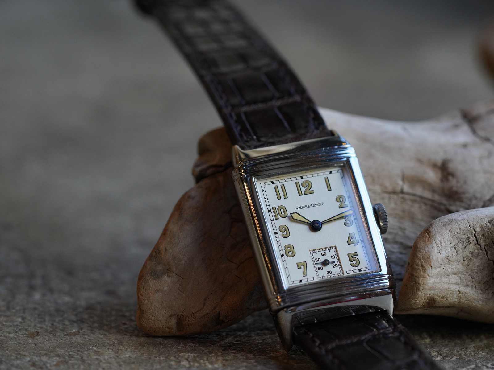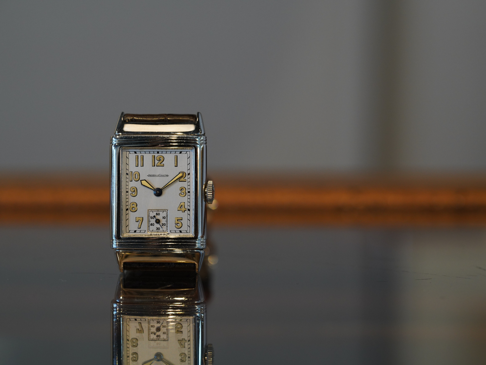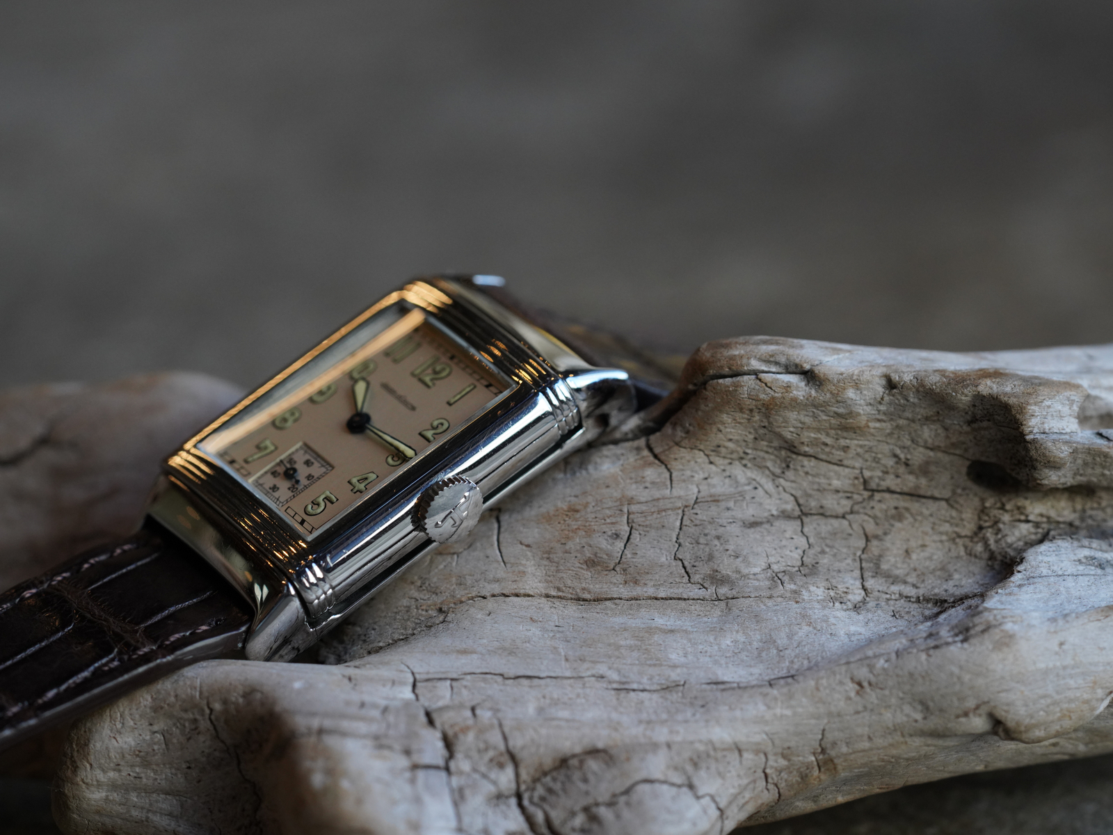 そんなジャガールクルトの中でシンボル的存在であり、時計の世界の中で永久の定番である[Reverso / レベルソ]のご紹介です。「ポロ競技に使用できる時計を」との要望で生まれたケースを反転させ、衝撃で破損しやすい風防を保護するという変わった構造が特徴、1930年代初頭にリリースされてから80年以上経った現在に続き、時計の世界の中で代表的なアイテムであり、最も有名な「四角い時計」の一つであることに間違いありません。