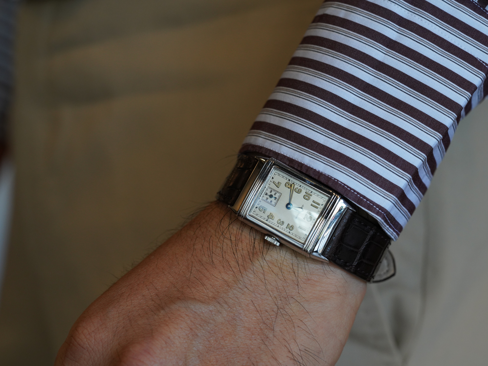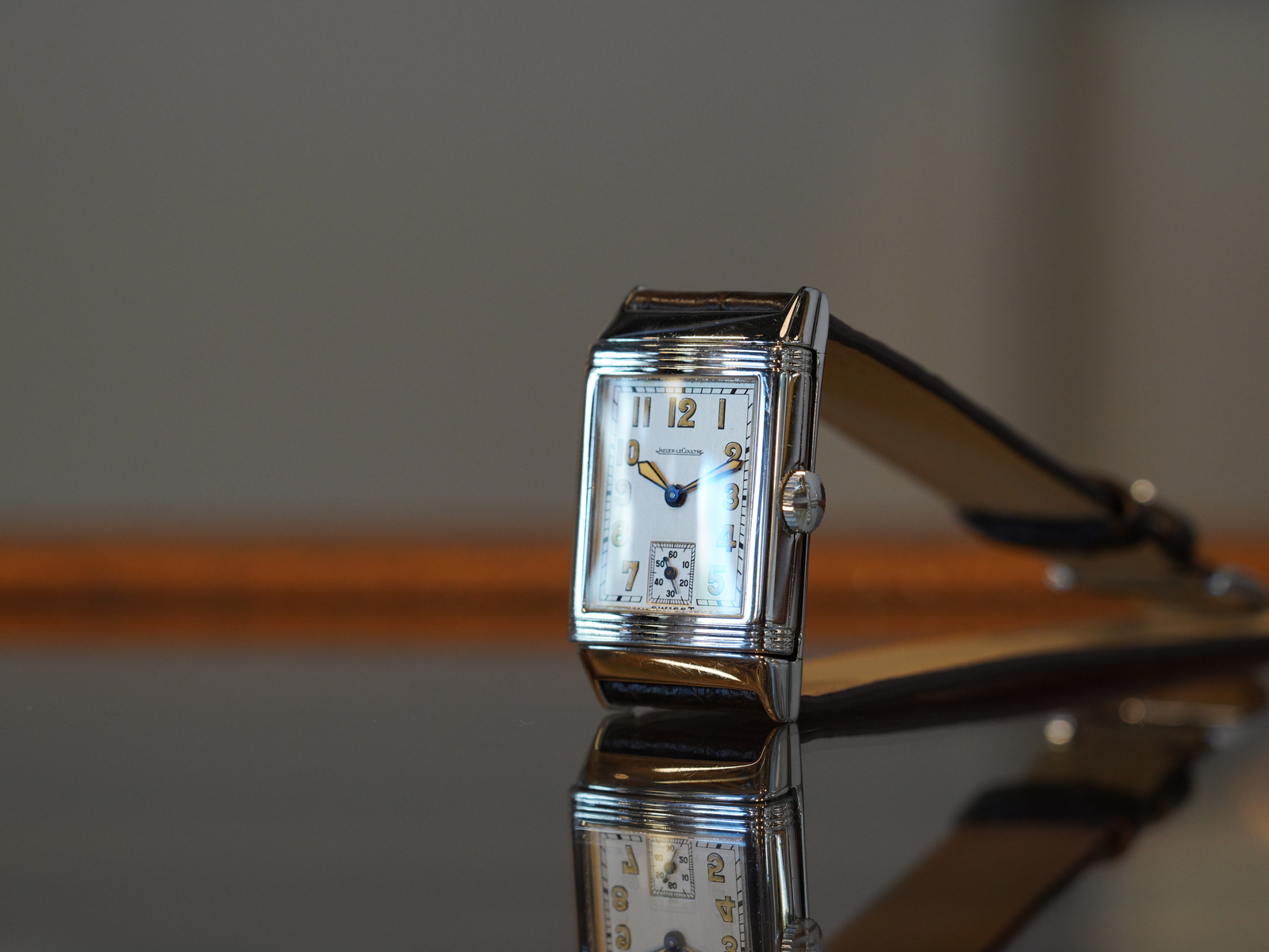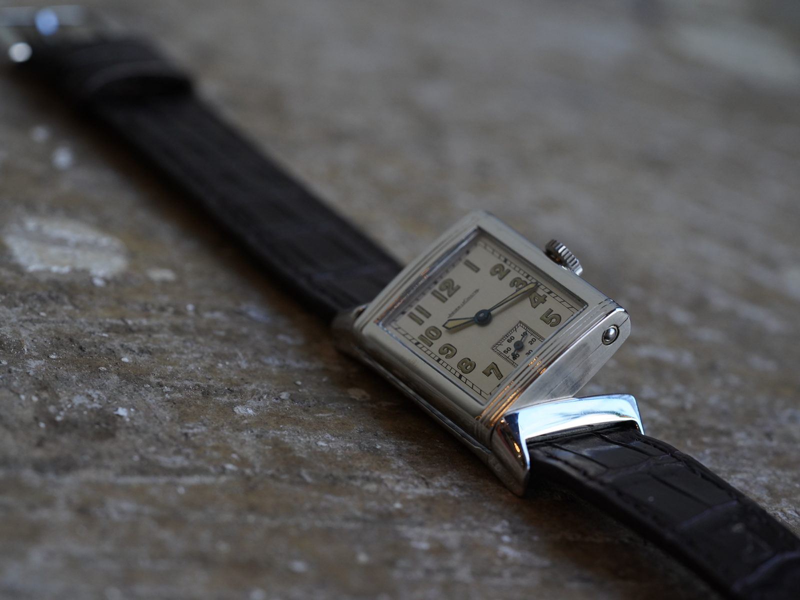 そんなジャガールクルトの中でシンボル的存在であり、時計の世界の中で永久の定番である[Reverso / レベルソ]のご紹介です。「ポロ競技に使用できる時計を」との要望で生まれたケースを反転させ、衝撃で破損しやすい風防を保護するという変わった構造が特徴、1930年代初頭にリリースされてから80年以上経った現在に続き、時計の世界の中で代表的なアイテムであり、最も有名な「四角い時計」の一つであることに間違いありません。