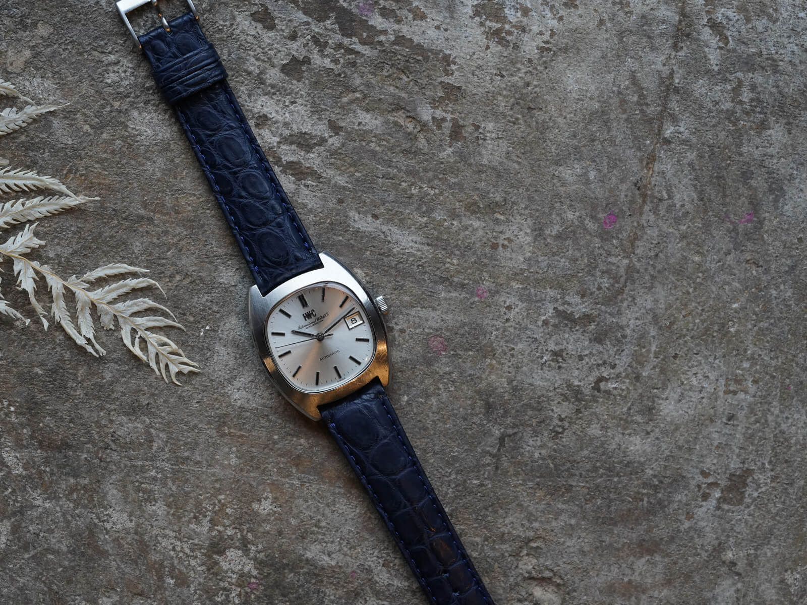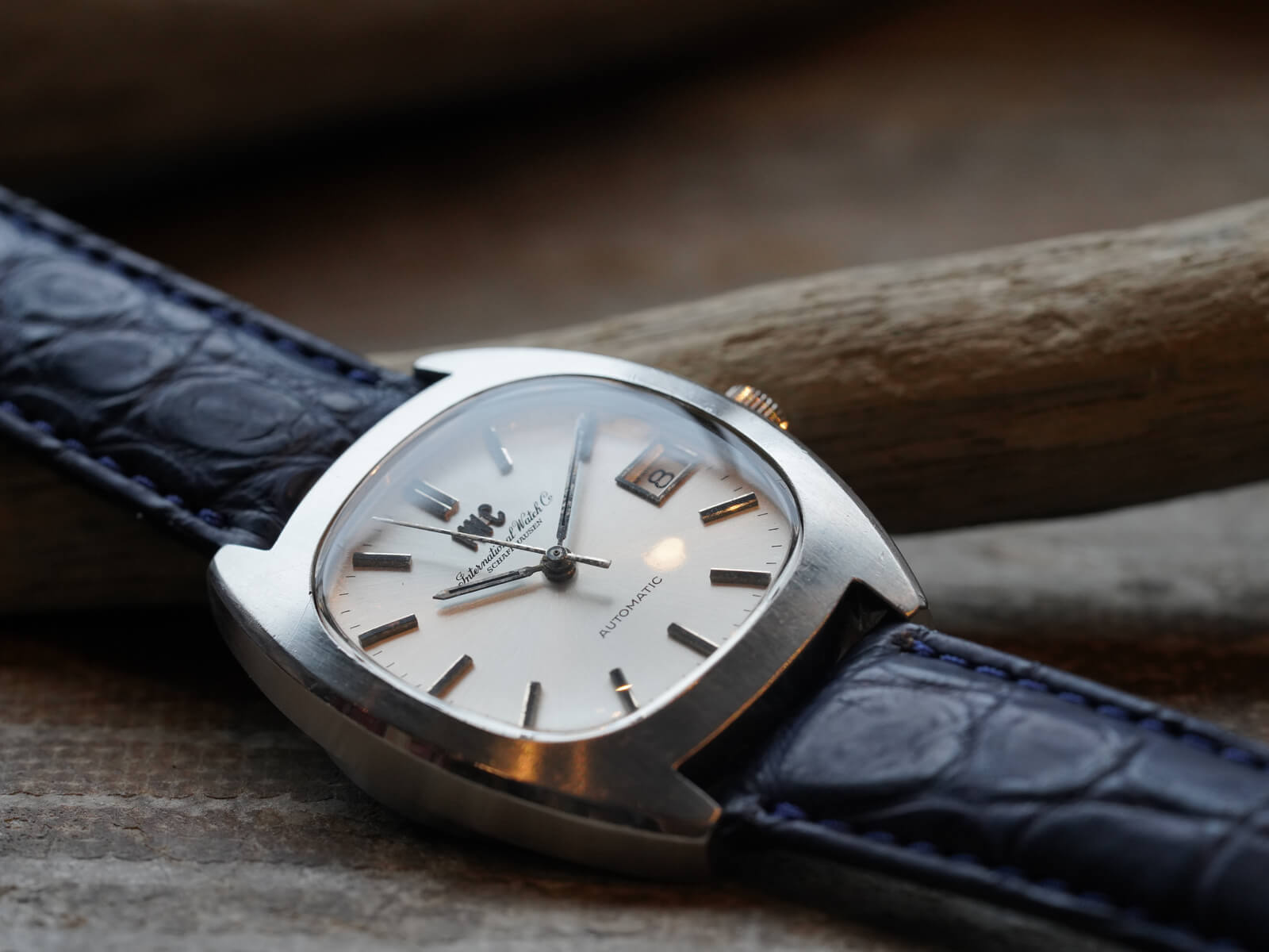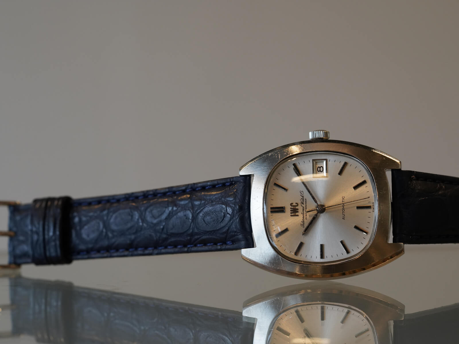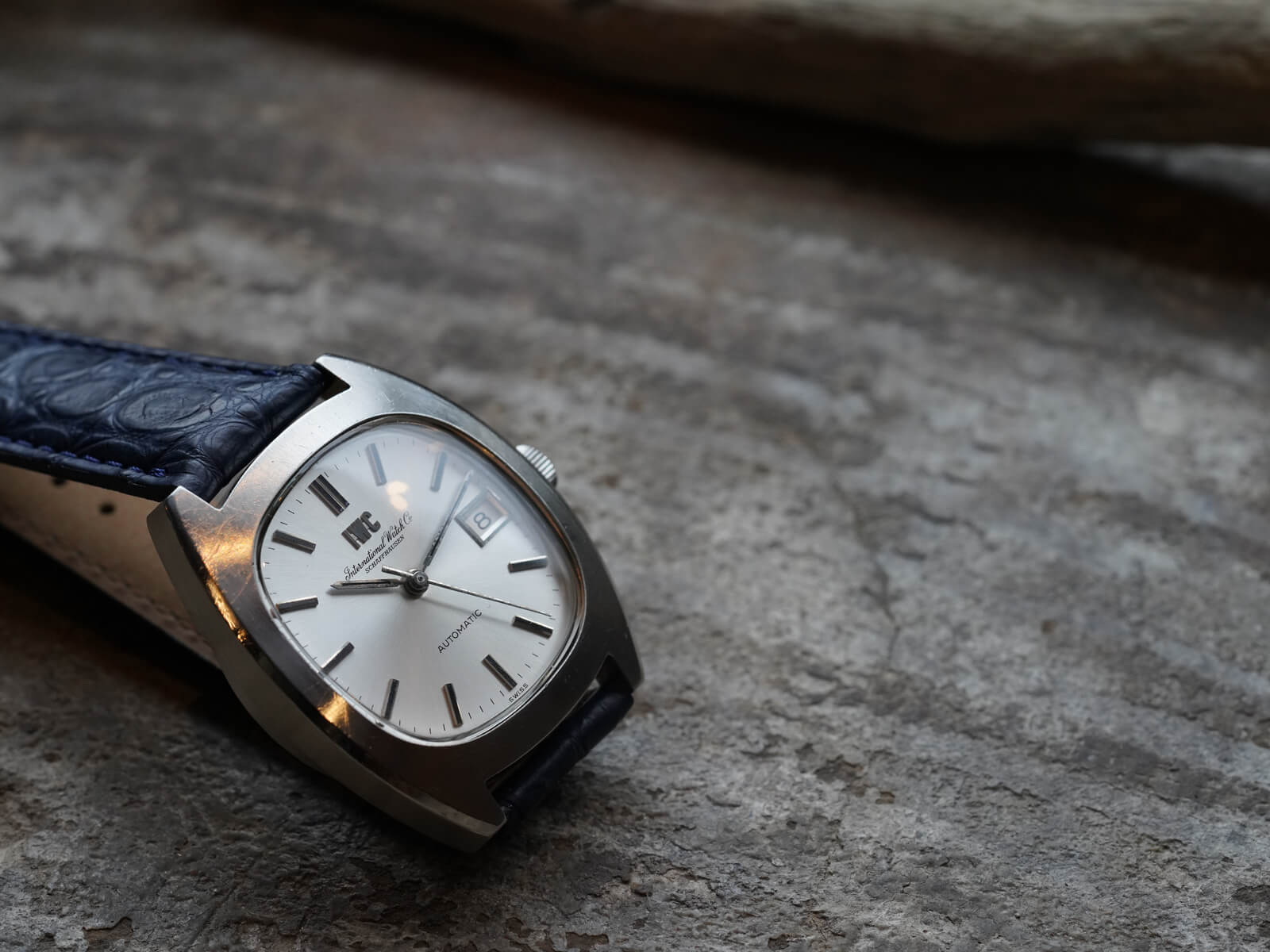 そんなIWCの歴史の中でドレスウォッチの位置づけとなる、デイト付きシルバーダイヤルのRef.1872のご紹介です。当時の風潮として創られたTVスクリーンともいわれる、オールドインターの中でも珍しいトノーケースモデルであり、近代的なケースデザインの35㎜ステンレススチール製スクリューバック式ケース。筆記体と共に現在でも使用されるアップライトの”IWC”ロゴが入る二重表記と、綺麗なサンバースト加工が施されたシルバーダイヤルに、ソードハンドと、墨入りされアップライトされたバーインデックスが視認性も良く、プラスチックドーム風防と魚マークのリューズ、その時代の仕様をそのままに残し、シャープで洗練された印象を感じさせてくれます。特にこのモデルに関しては、独特なのケースデザインを持ちながら、IWC特有である"質実剛健"なデザインをも兼ね備えた、落ち着きも感じさせてくれる綺麗な顔立ち。だからこそお洒落な面白味と上品さを感じさせてくれるデザインです。