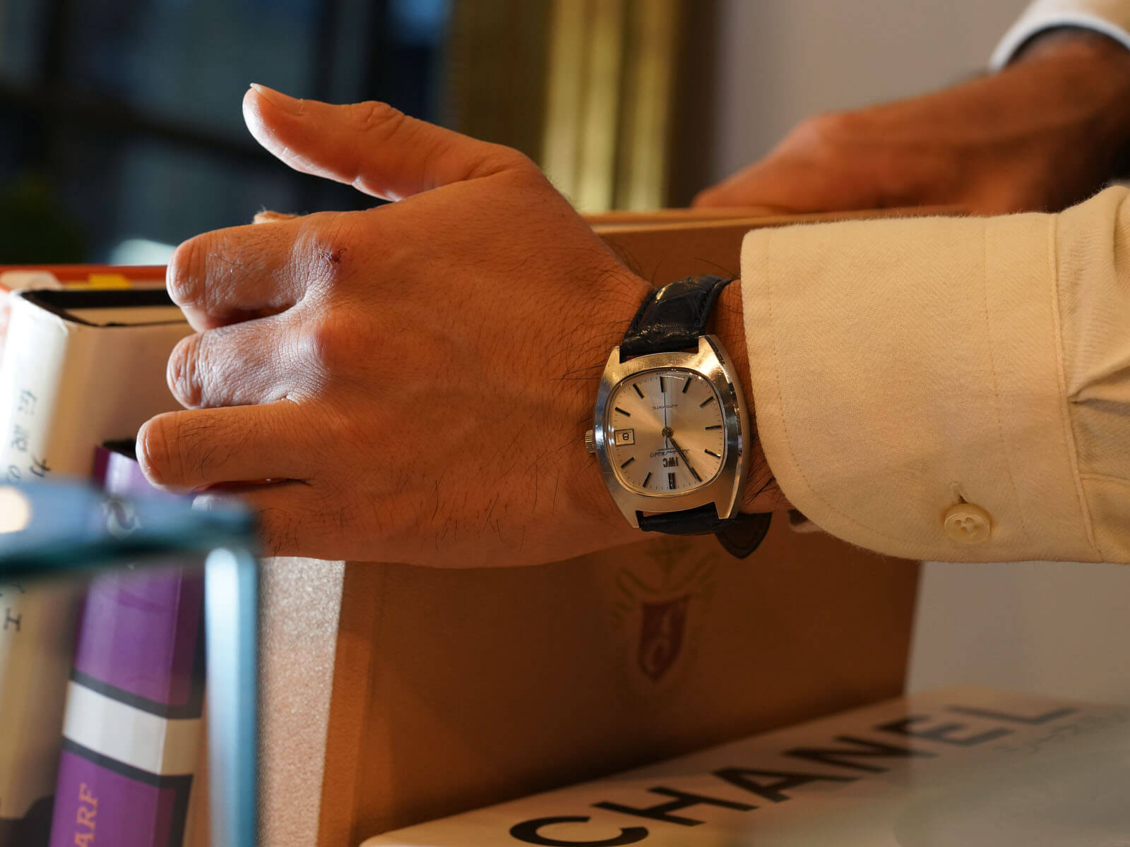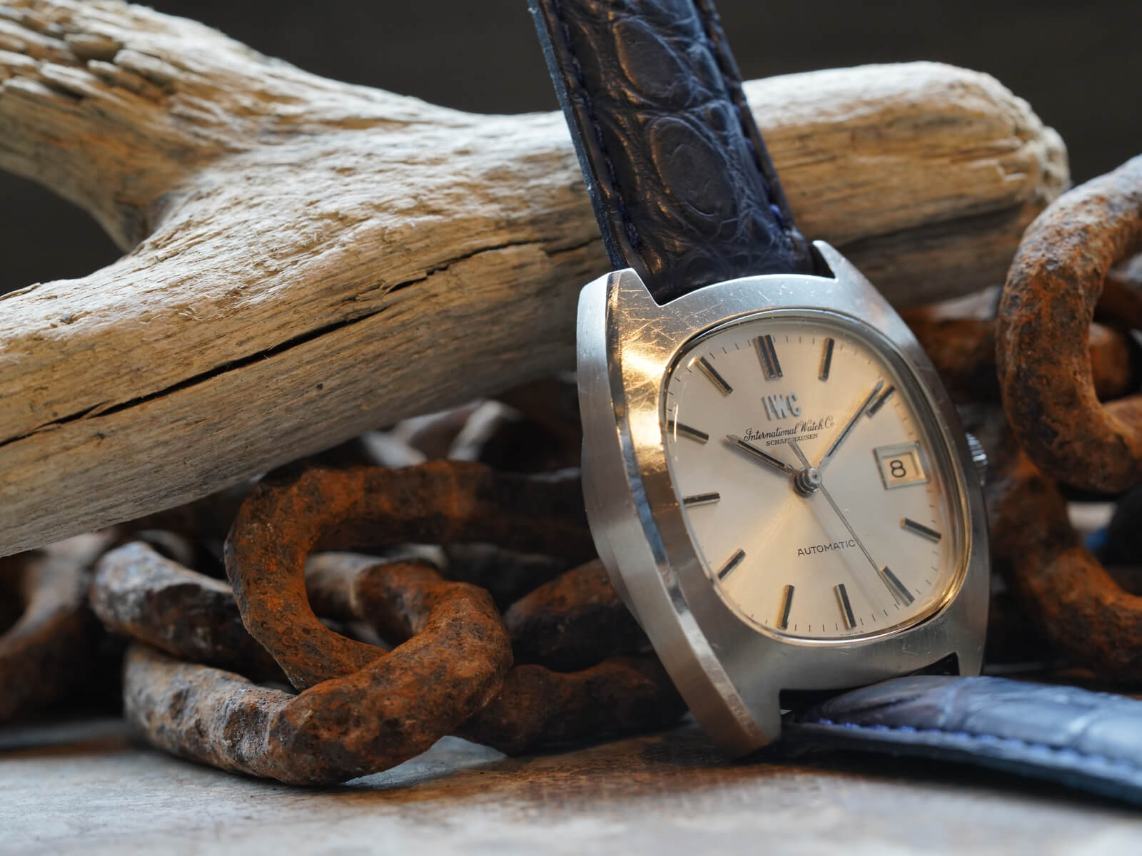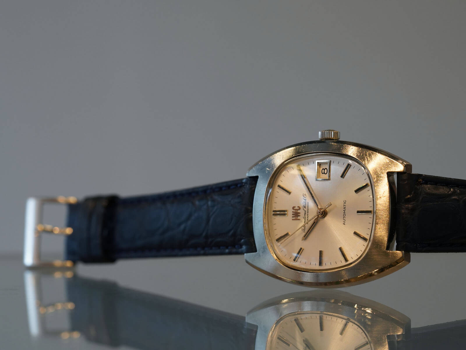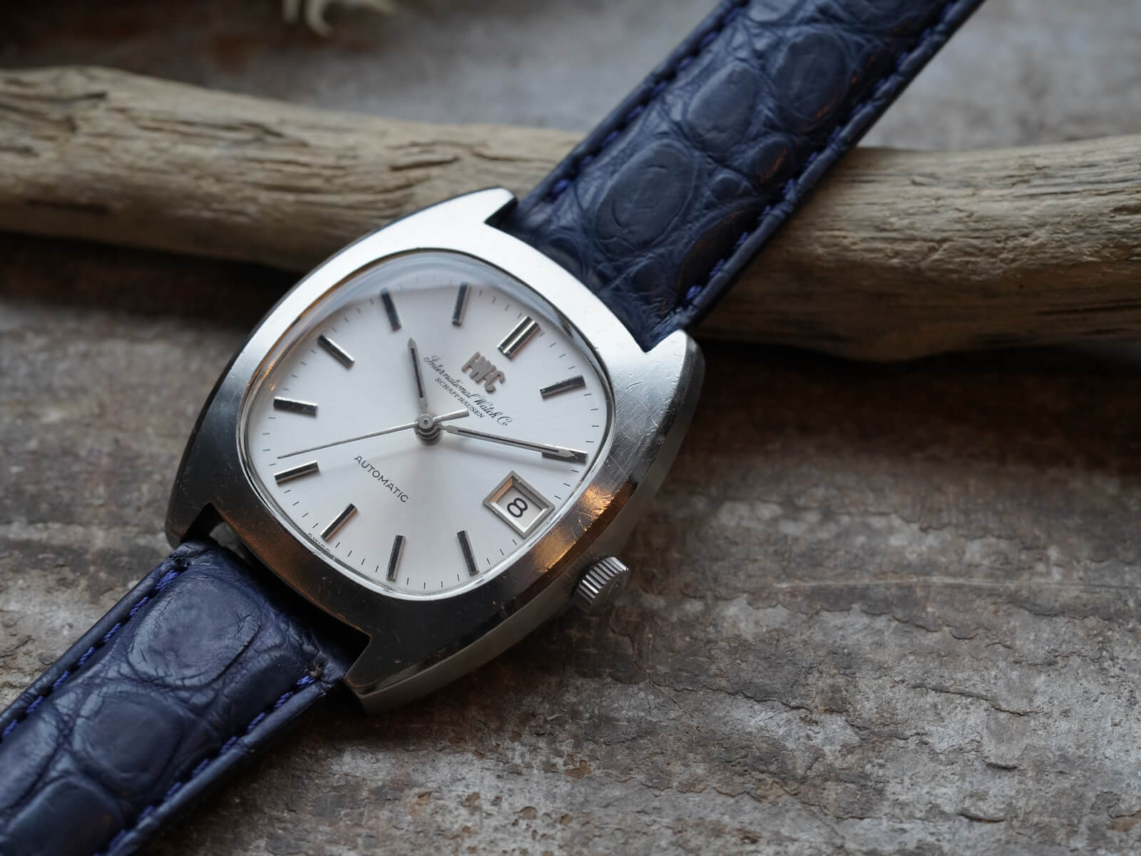 そんなIWCの歴史の中でドレスウォッチの位置づけとなる、デイト付きシルバーダイヤルのRef.1872のご紹介です。当時の風潮として創られたTVスクリーンともいわれる、オールドインターの中でも珍しいトノーケースモデルであり、近代的なケースデザインの35㎜ステンレススチール製スクリューバック式ケース。筆記体と共に現在でも使用されるアップライトの”IWC”ロゴが入る二重表記と、綺麗なサンバースト加工が施されたシルバーダイヤルに、ソードハンドと、墨入りされアップライトされたバーインデックスが視認性も良く、プラスチックドーム風防と魚マークのリューズ、その時代の仕様をそのままに残し、シャープで洗練された印象を感じさせてくれます。特にこのモデルに関しては、独特なのケースデザインを持ちながら、IWC特有である"質実剛健"なデザインをも兼ね備えた、落ち着きも感じさせてくれる綺麗な顔立ち。だからこそお洒落な面白味と上品さを感じさせてくれるデザインです。