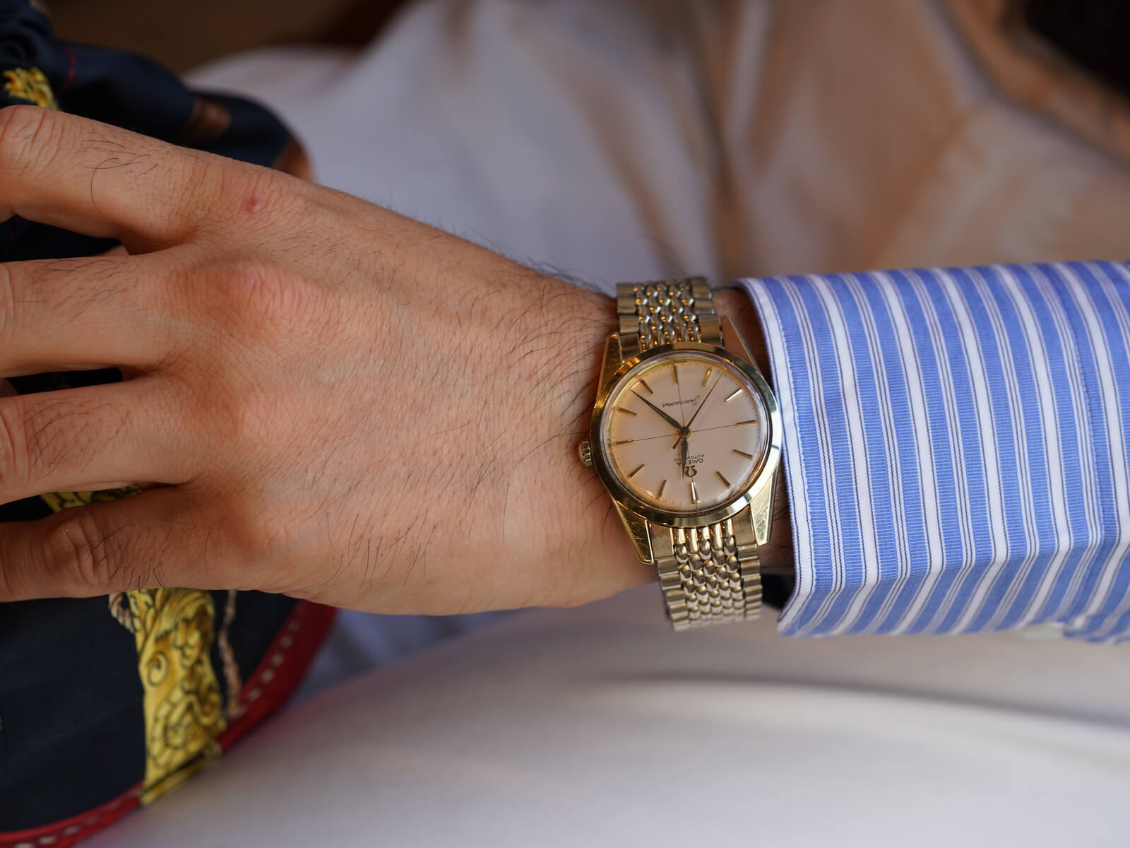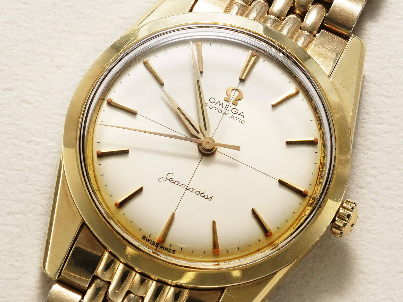 オメガの純正キャップゴールドステンレス製7連ライスジュビリーブレスレットが付属する事に加え、ケースの状態が良い事から、大切に使われていたであろう事が推測できます。アンティークらしさが際立ち、シンプルで味わいのあるシブい金色をお探しの方にお奨めです。是非店頭にてご覧ください。