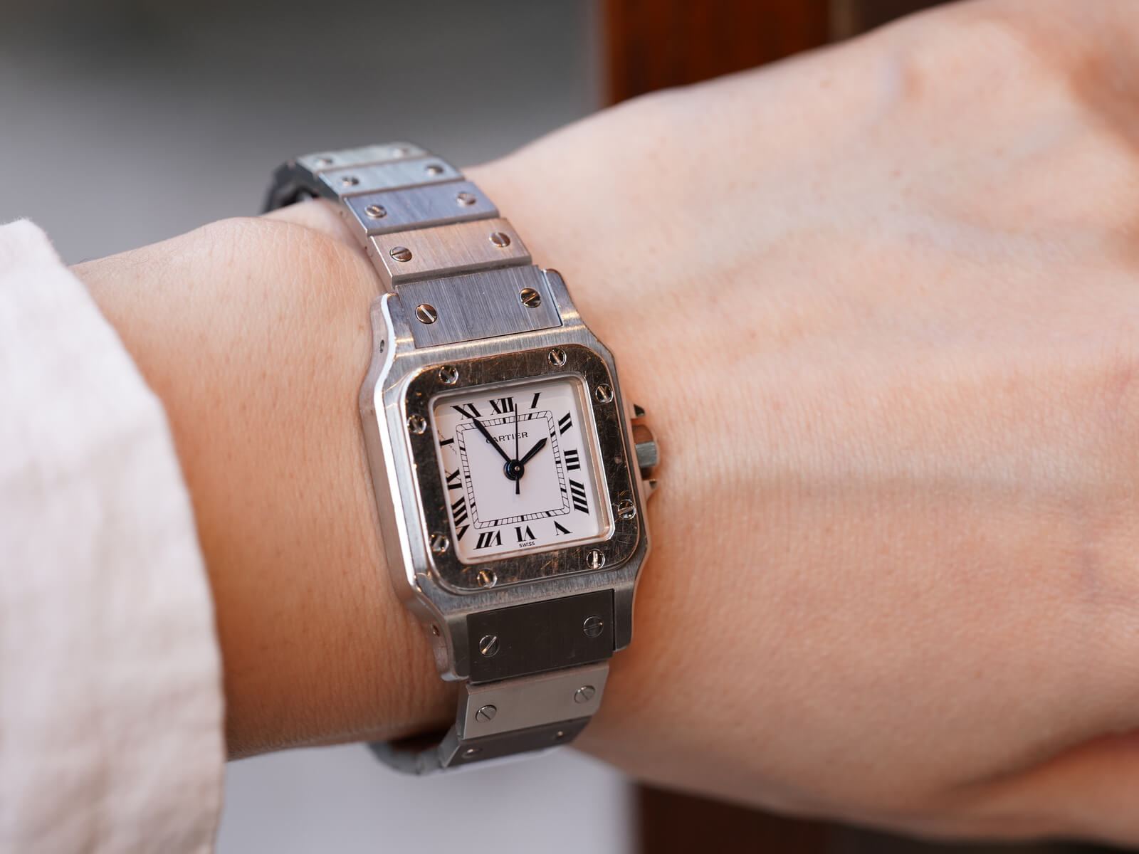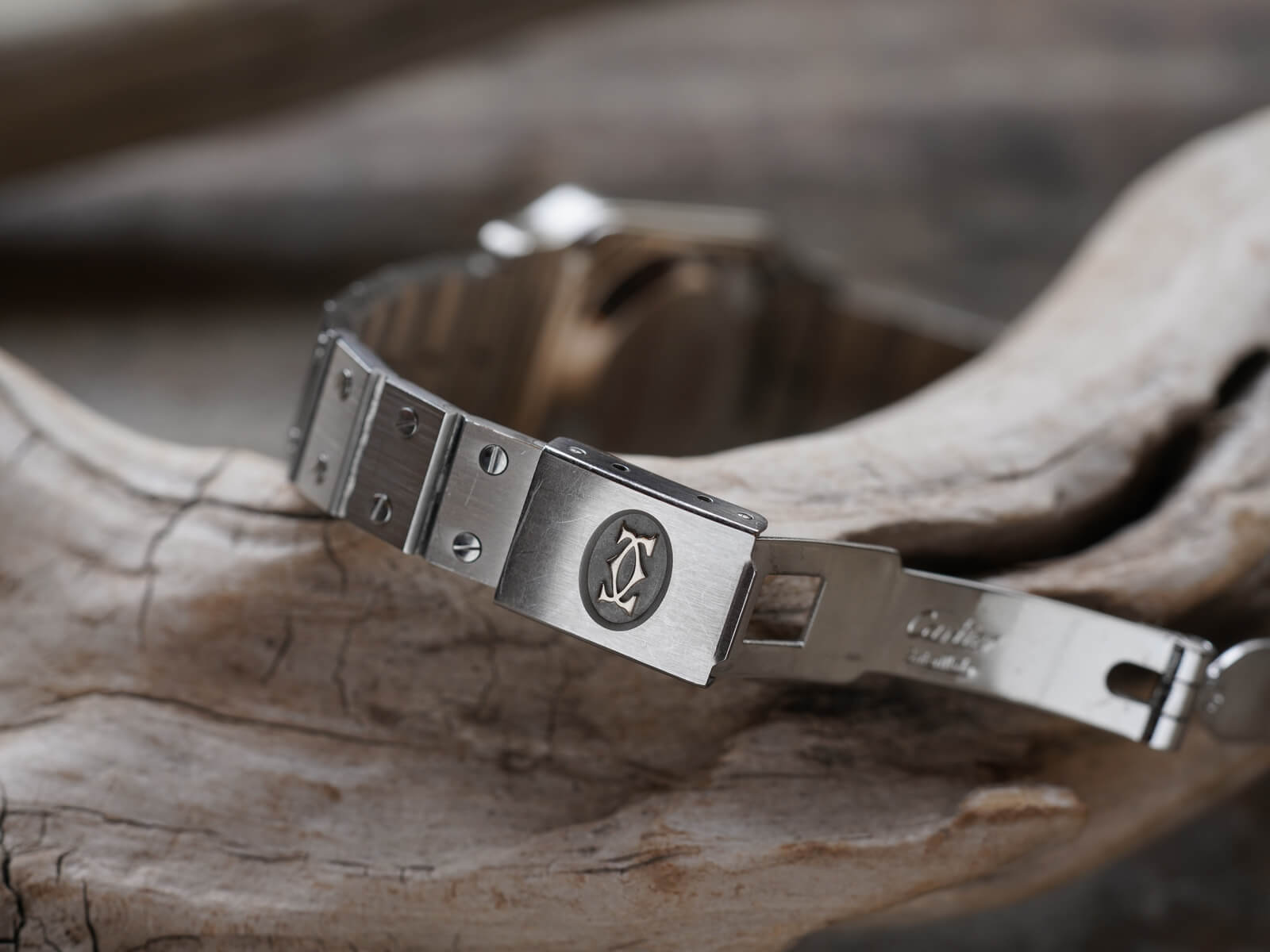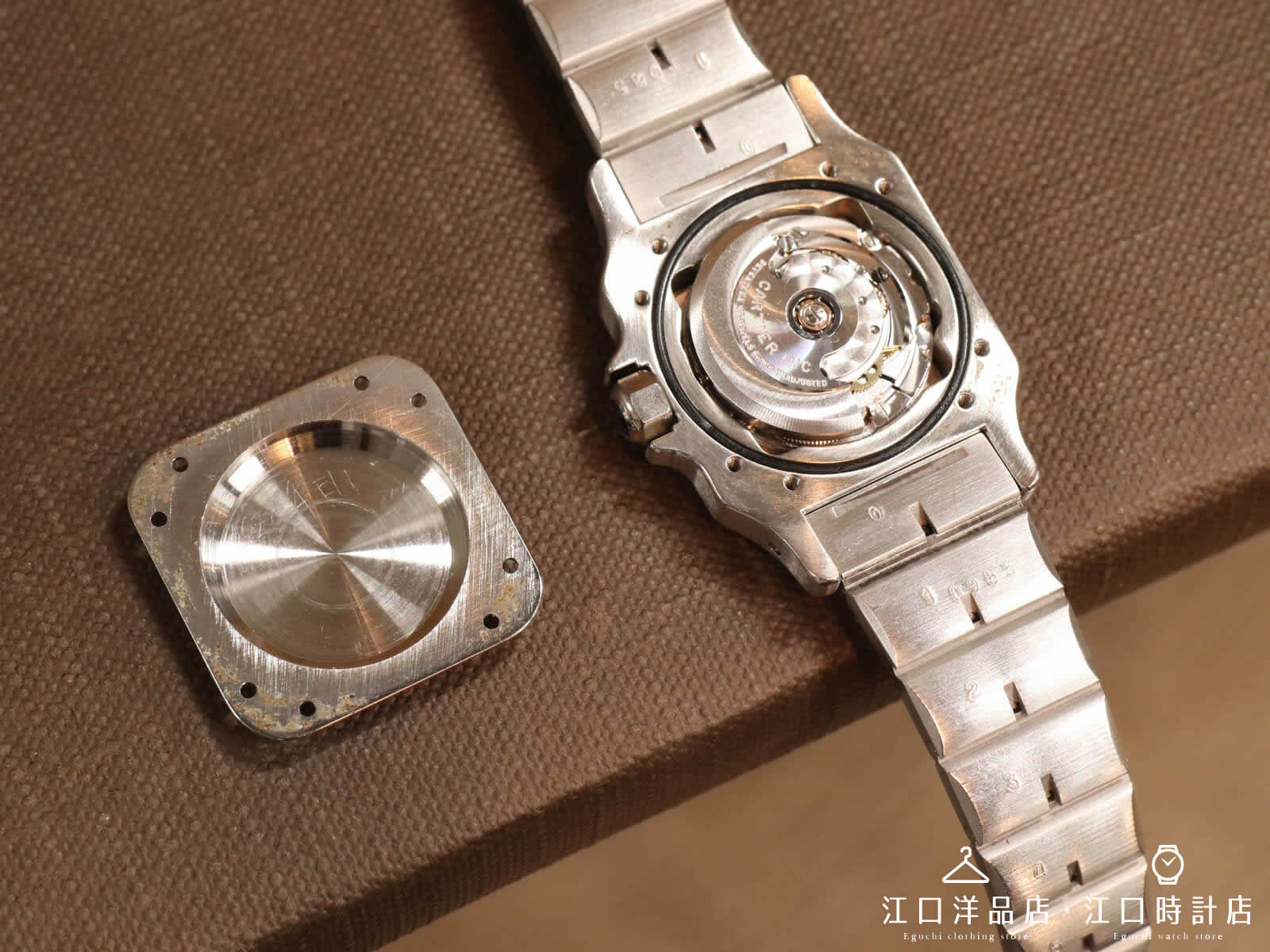 今回ご紹介のRef0901は、カルティエ伝統のホワイトローマンダイヤルにブルースチールハンド、サファイアカボションリューズと80年代のラグジュアリースポーツウォッチブームの流れを汲む洗練されたデザイン。オールステンレスモデルはとても珍しく、正にカルティエだからこそ創ることのできた、ジュエリー要素を感じさせる他にはないスポーツウォッチです。