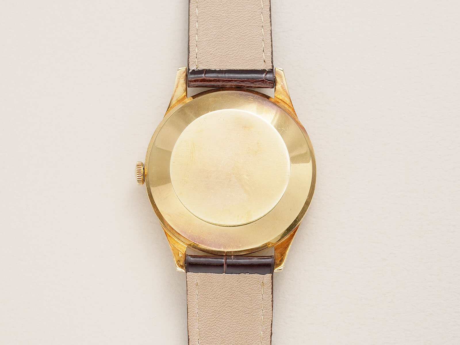 ムーブメントは、「ペラトン式自動巻き/Peraton Automatic」キャリバー852を搭載。1952~1958年の6年間のみ製造された、初めての大量生産モデルで、幅広く使用された優秀なムーブメントです。
