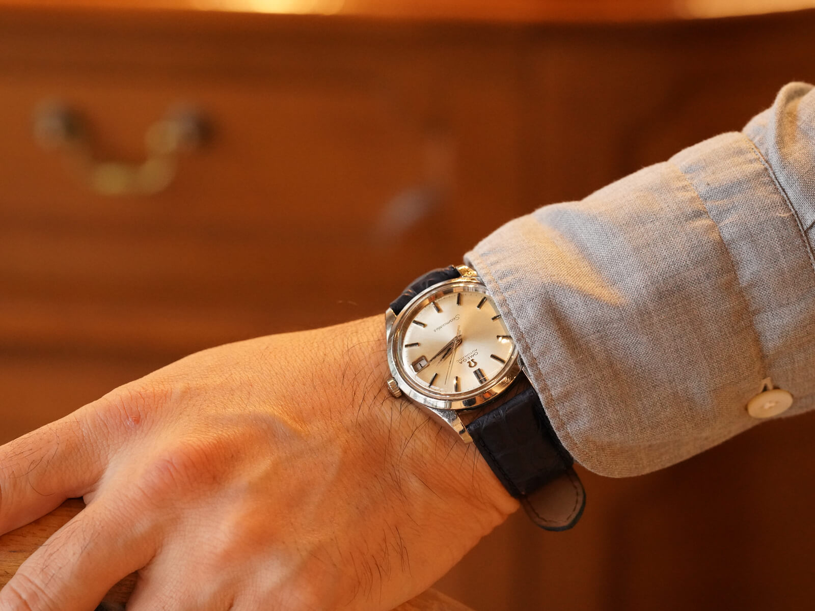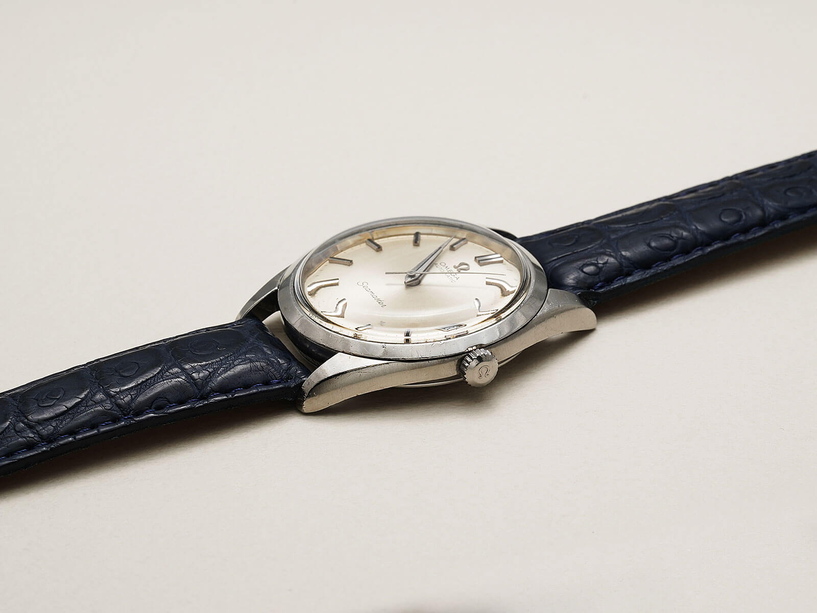 今回ご紹介するRef.166.010は、デイト機能を有する35mmのスクリューバック式ステンレスケースのモデルです。サンバースト加工が施されたシルバーダイヤルに、光の当たる角度によって輝きが変わる、細かなカッティングのされた立体的なインデックス。アップライトされた12時下と竜頭にΩマークが入り、裏蓋に刻印されたシーホースのメダリオンなども健在。それら全てがオメガの代表的モデルとして、スポーティーな要素と伝統的で落ち着きのある魅力を放ち、特別な存在感を堪能できます。