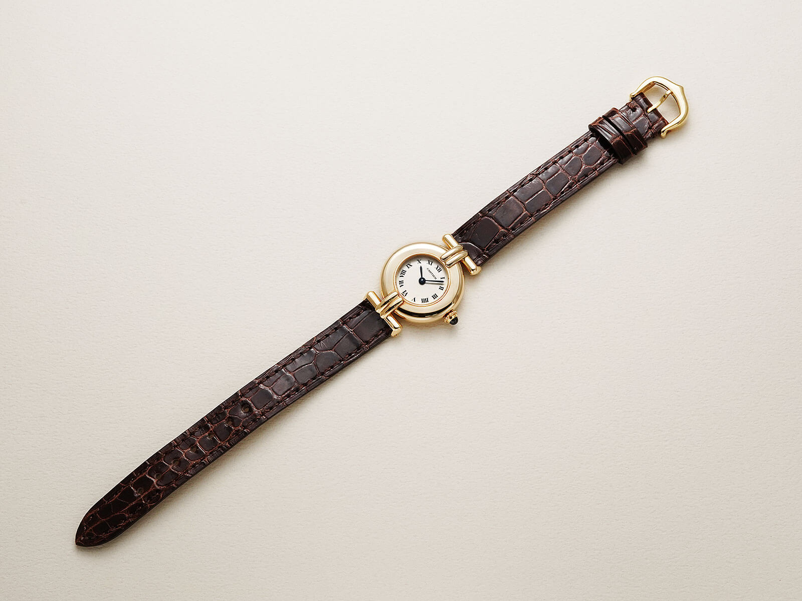 古代ローマの円形競技場の名前をモデル名に持つ[Colisee / コリゼ]。立体的なダブルラインのラグデザインは、まとまりのあるクラシックなディテールを持ち、カルティエらしいエレガントな時計です。