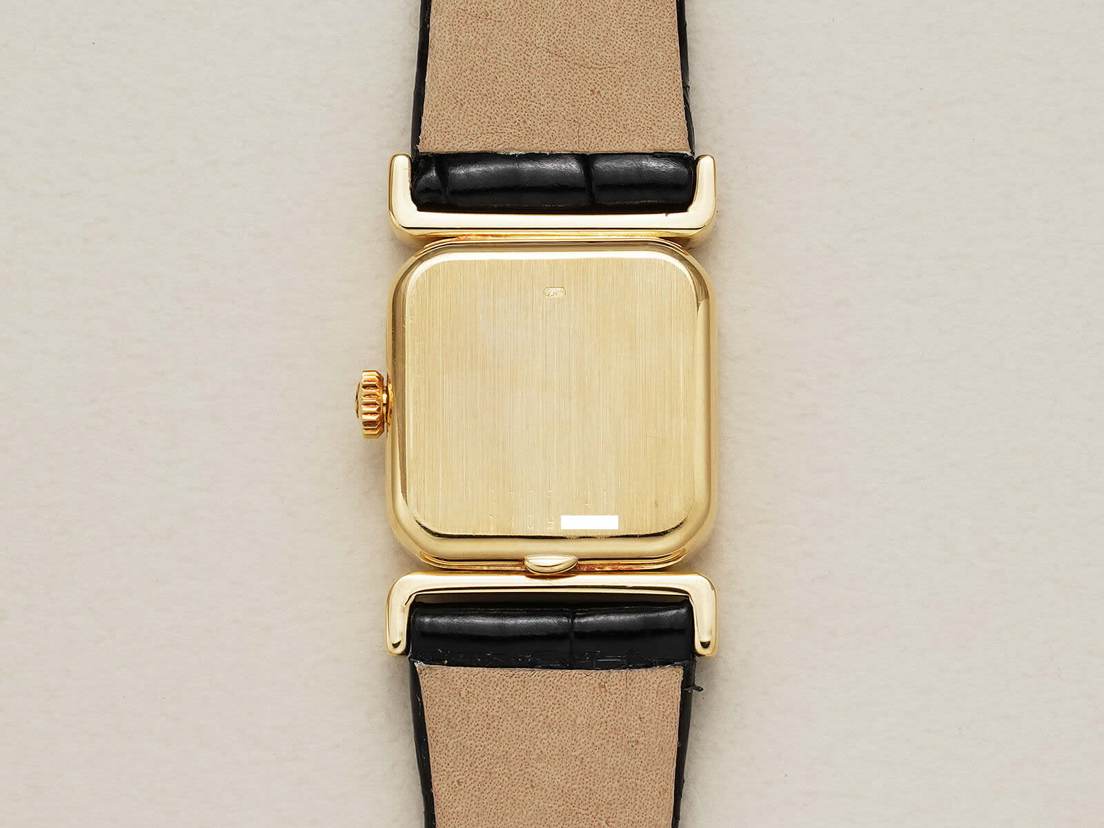 今回ご紹介のRef.6135-21は、変わったラグデザインが特徴的な一本です。イエローゴール製スナップバック式の薄型ゴールドケースと漆黒のオニキスダイヤル、輝きを放つドルフィンハンドが美しく優美なコントラストを表現し、とても綺麗な時計だと感じさせてくれる逸品です。