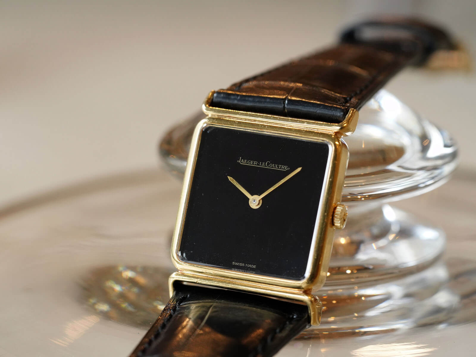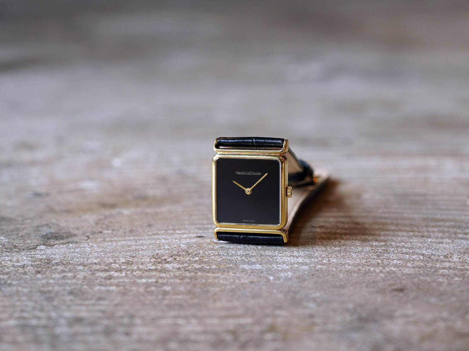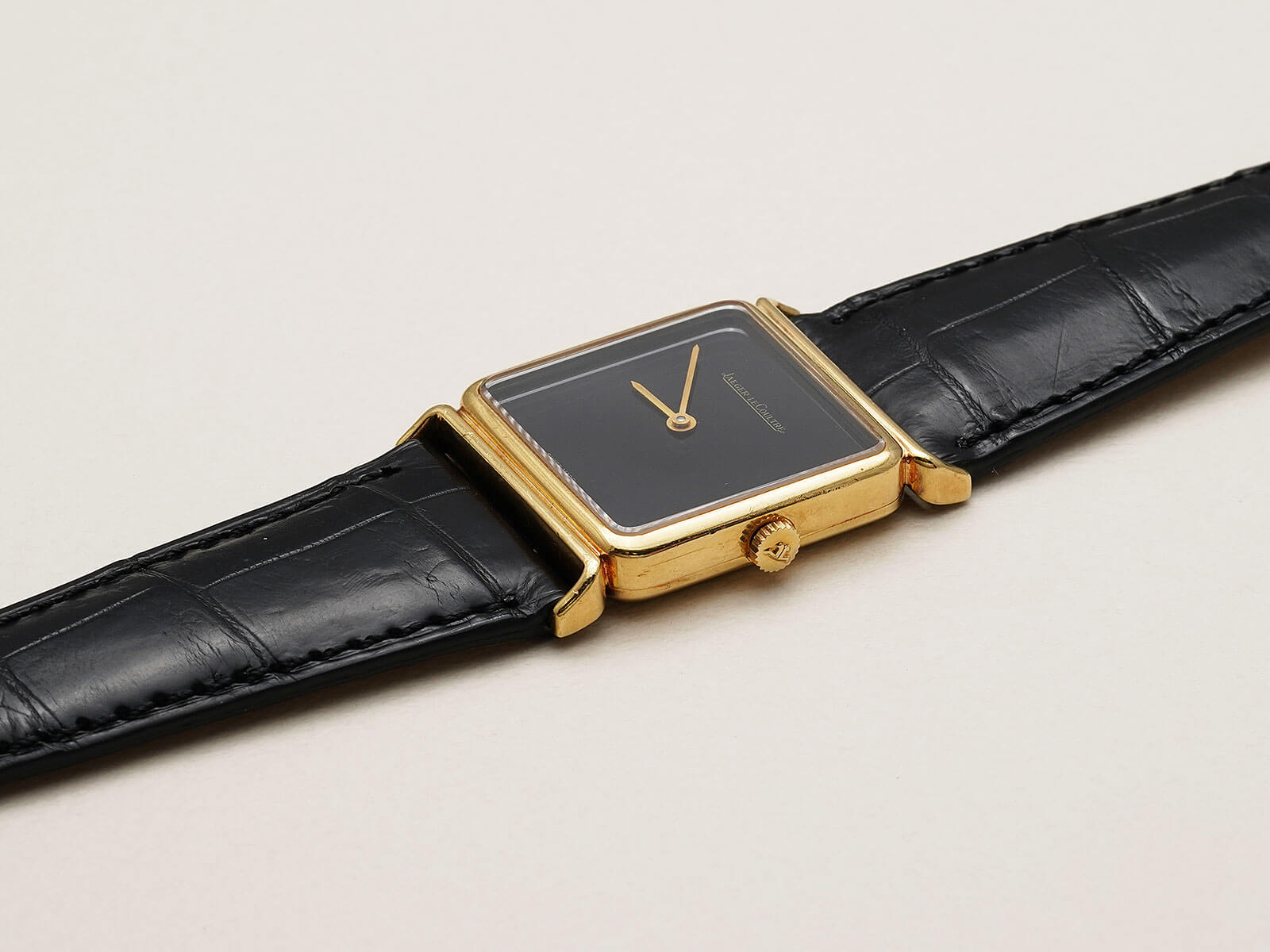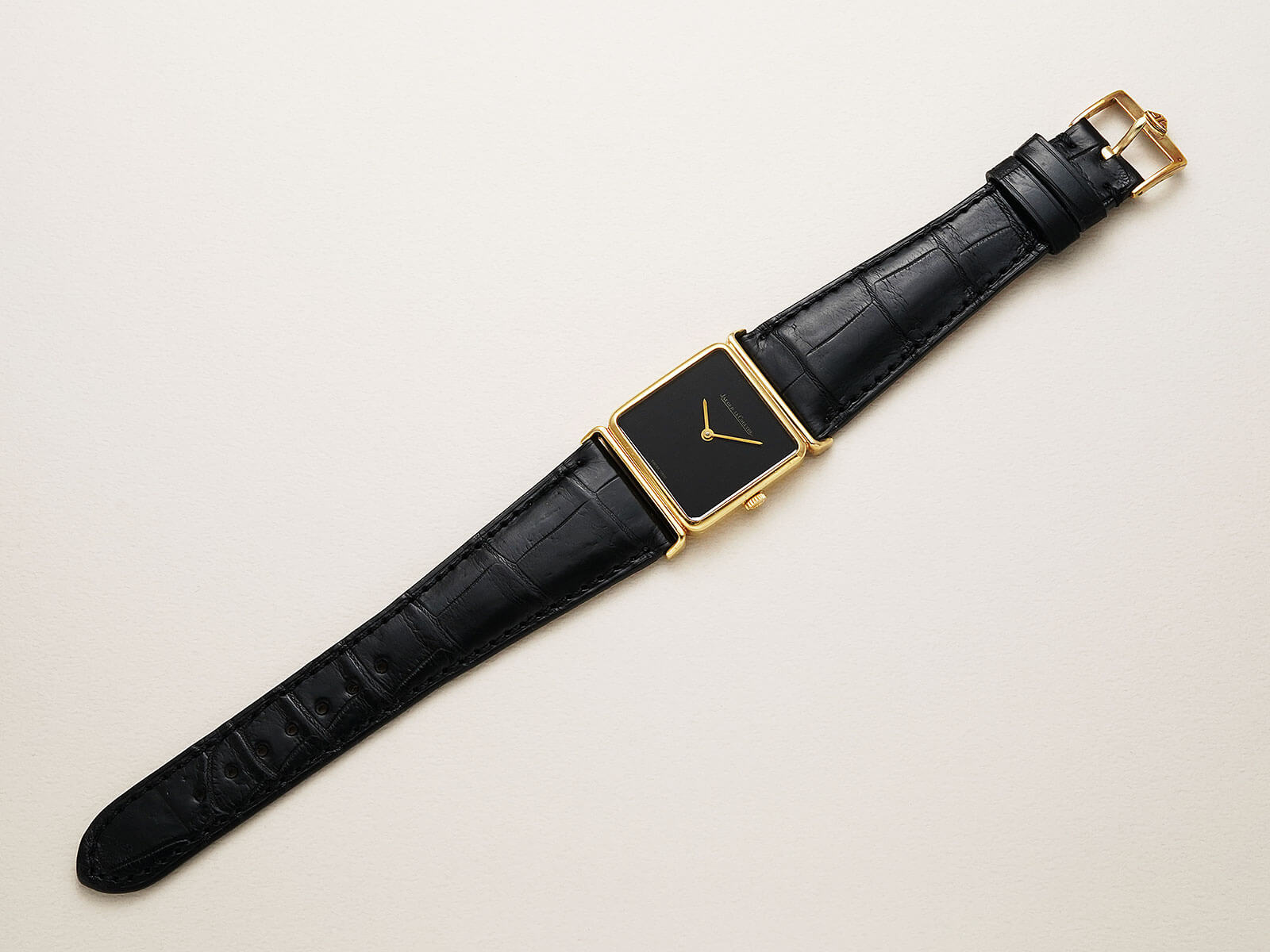 レザーブレスには、当店オリジナルのクロコダイルレザーブレスのブラックをセレクト。貴重な純正尾錠も付属しておりますので、共にお使い頂けることをお勧めいたします。ジャガールクルトらしいエレガントさと、他にはない格別なオーラも感じさせる逸品。是非お手に取ってご覧ください。
