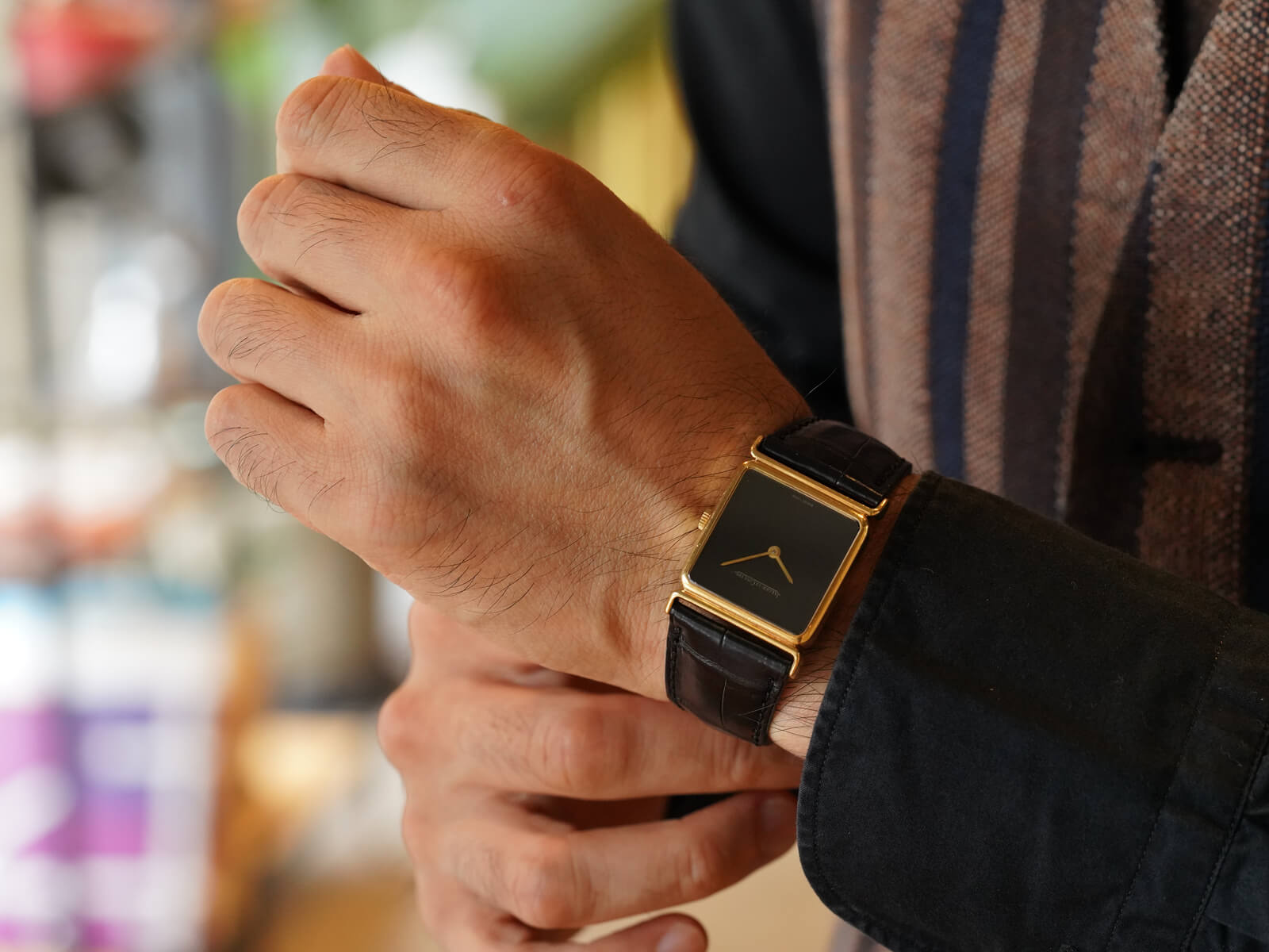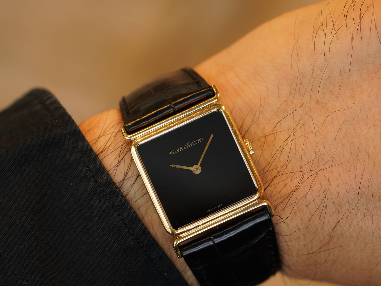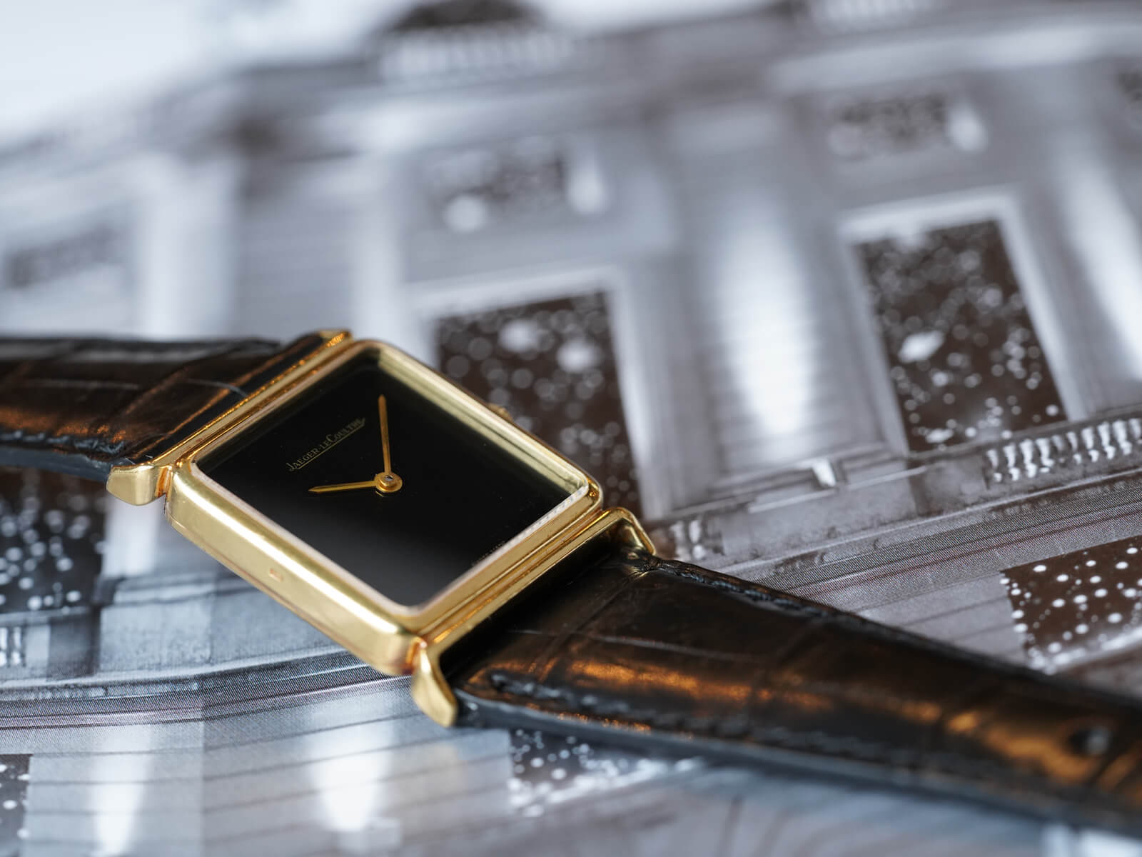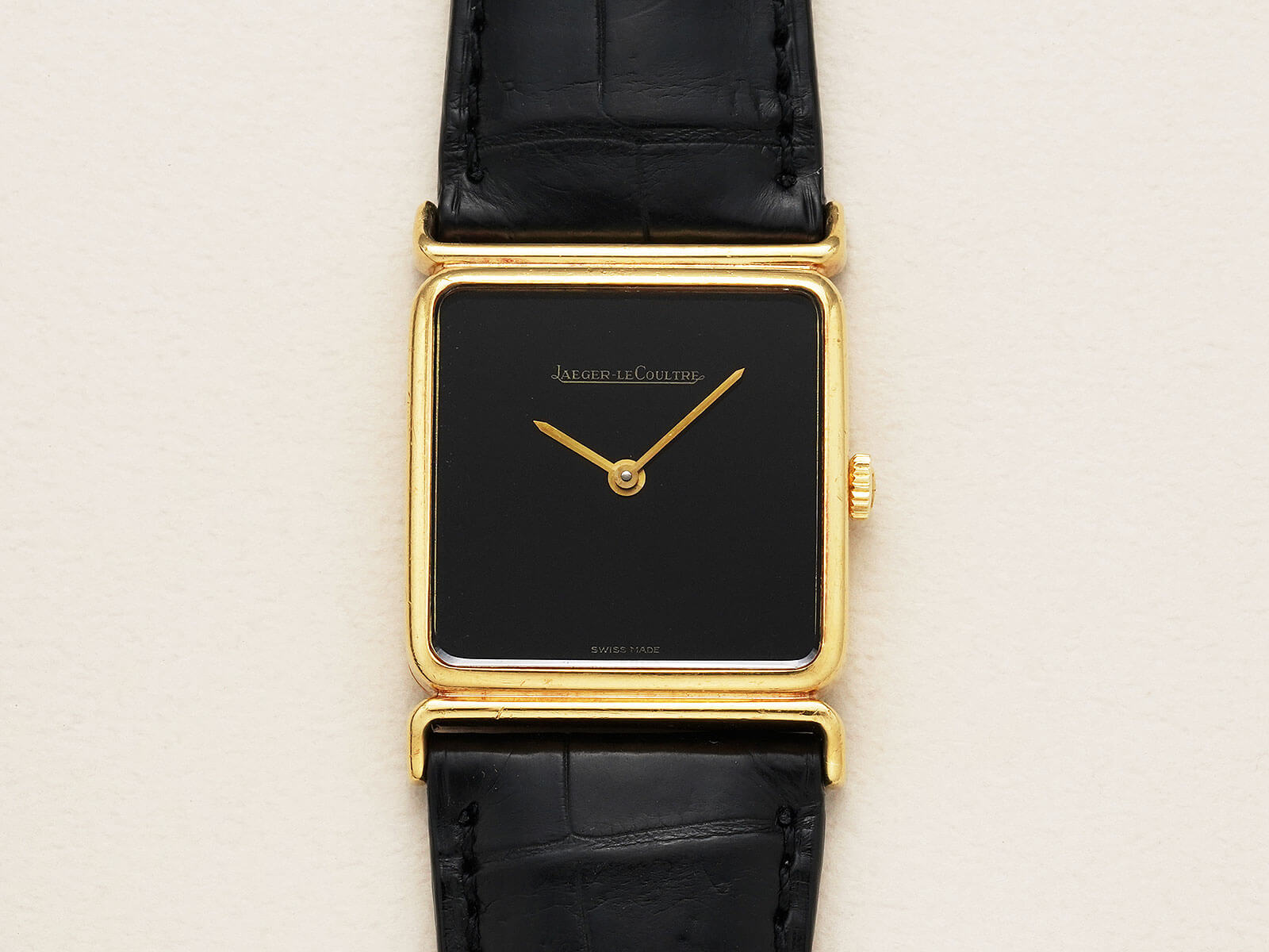 レザーブレスには、当店オリジナルのクロコダイルレザーブレスのブラックをセレクト。貴重な純正尾錠も付属しておりますので、共にお使い頂けることをお勧めいたします。ジャガールクルトらしいエレガントさと、他にはない格別なオーラも感じさせる逸品。是非お手に取ってご覧ください。