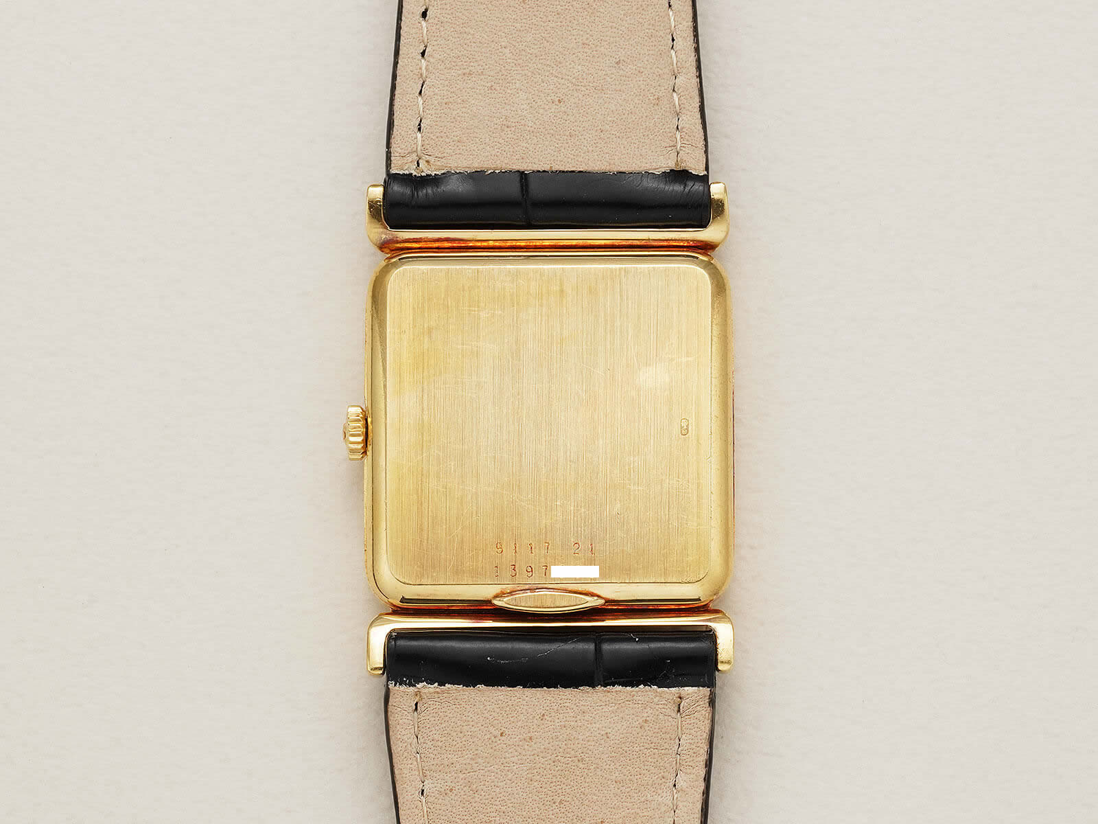 今回ご紹介のRef.9117.21は、イエローゴール製スナップバック式を採用し、変わったラグデザインが特徴的なモデルです。漆黒のオニキスダイヤルとシャープな印象を与えるゴールドのペンシルハンドが、美しいコントラストと針が浮かび上がるかの様な高い視認性を実現。上品な雰囲気で凛々しさのある、シンプルで美しいデザインです。