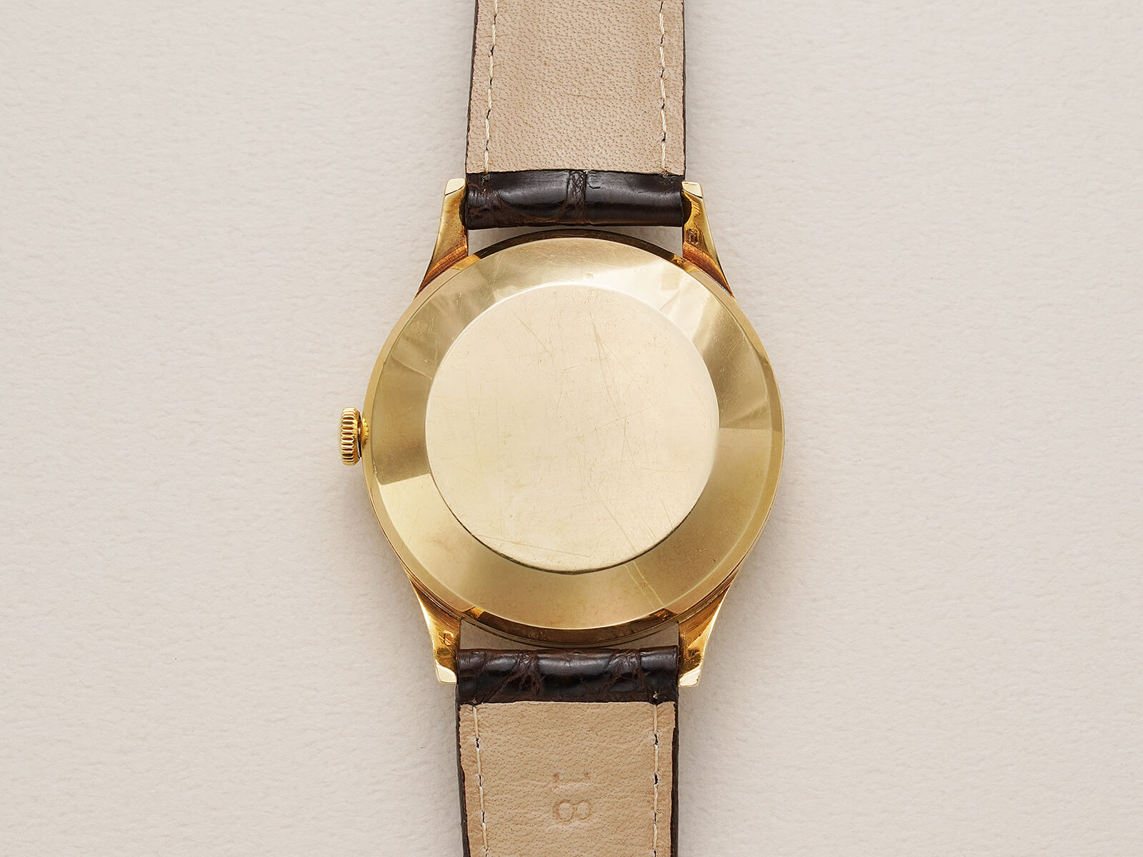 レザーブレスには、当店オリジナルのクロコダイルレザーのブラウンをセレクト。落ち着きのあるドレスウォッチの様な気品を漂わせ、時代を超えた美しさを感じさせる素敵な時計です。ぜひ店頭にて御覧ください。