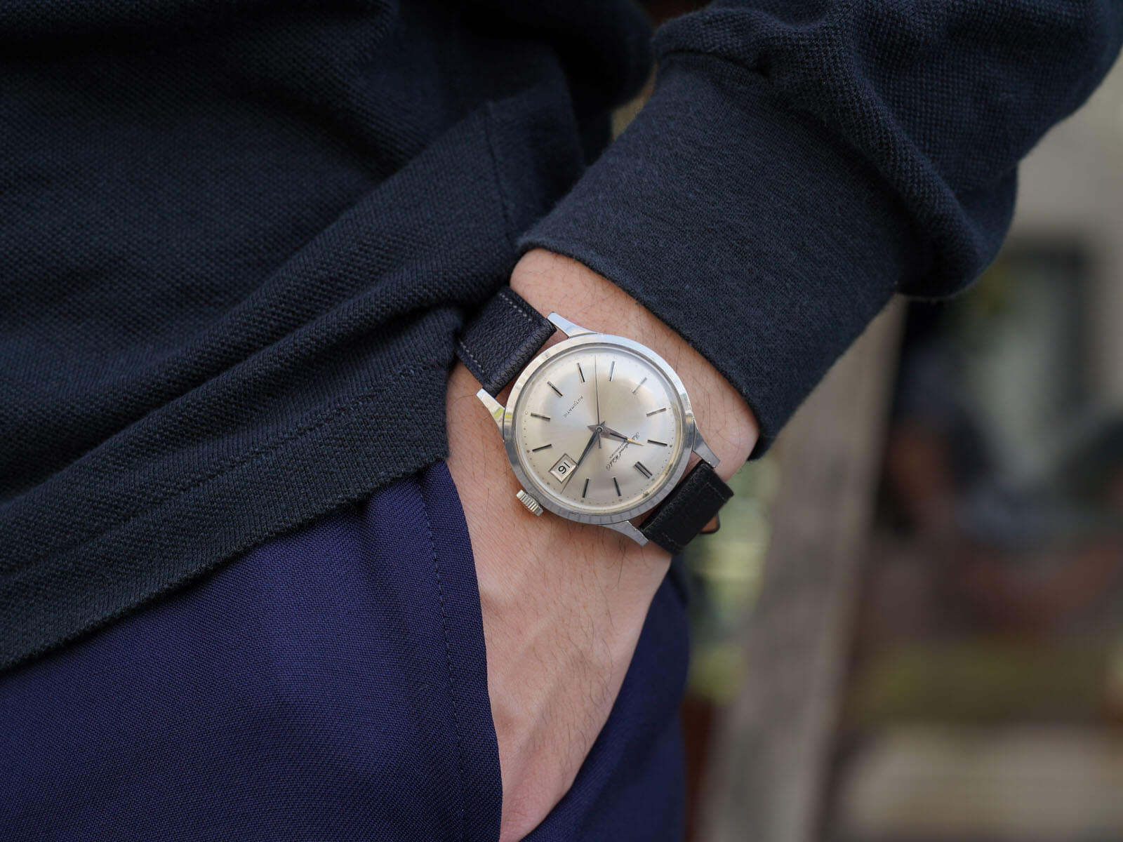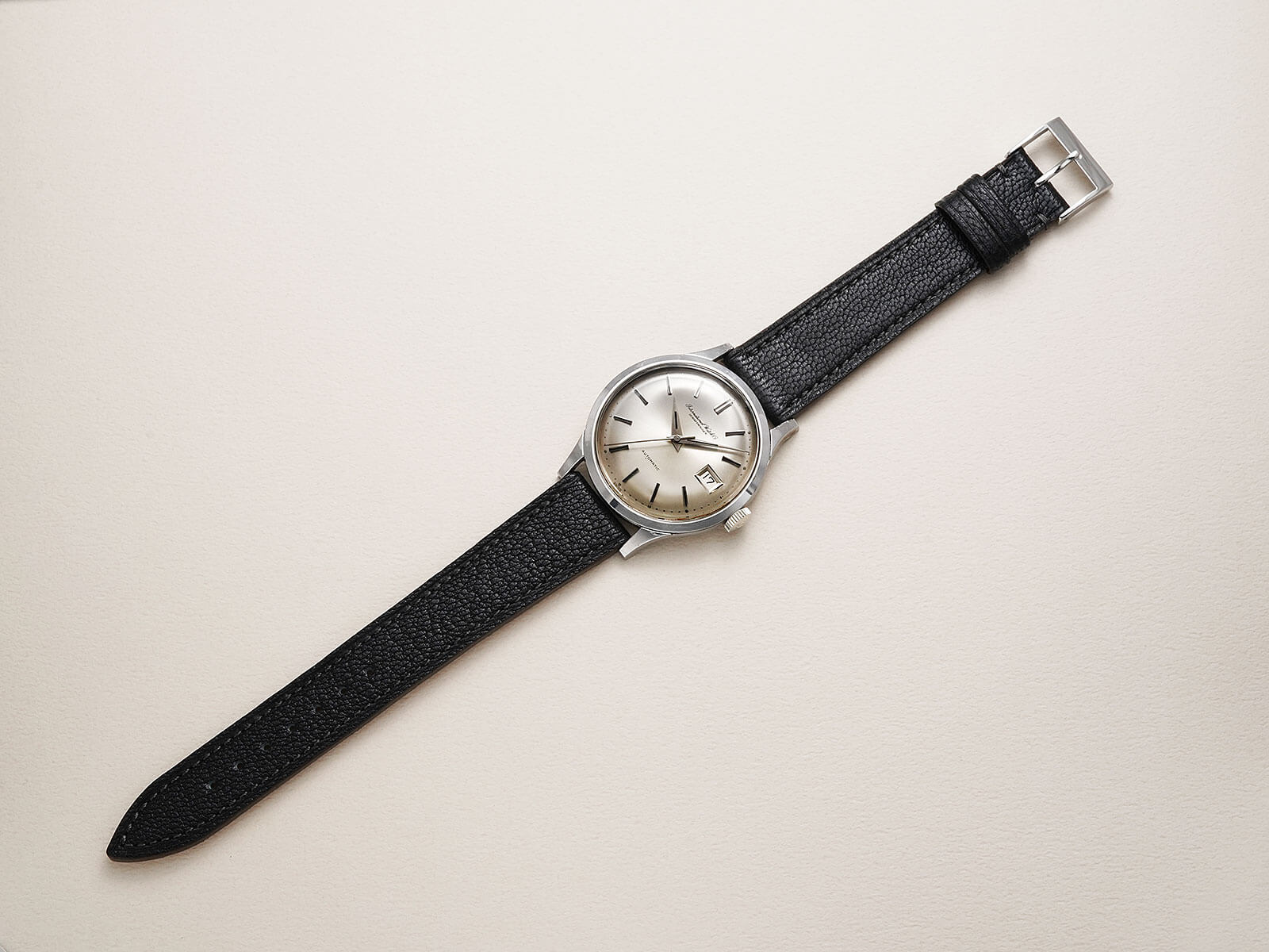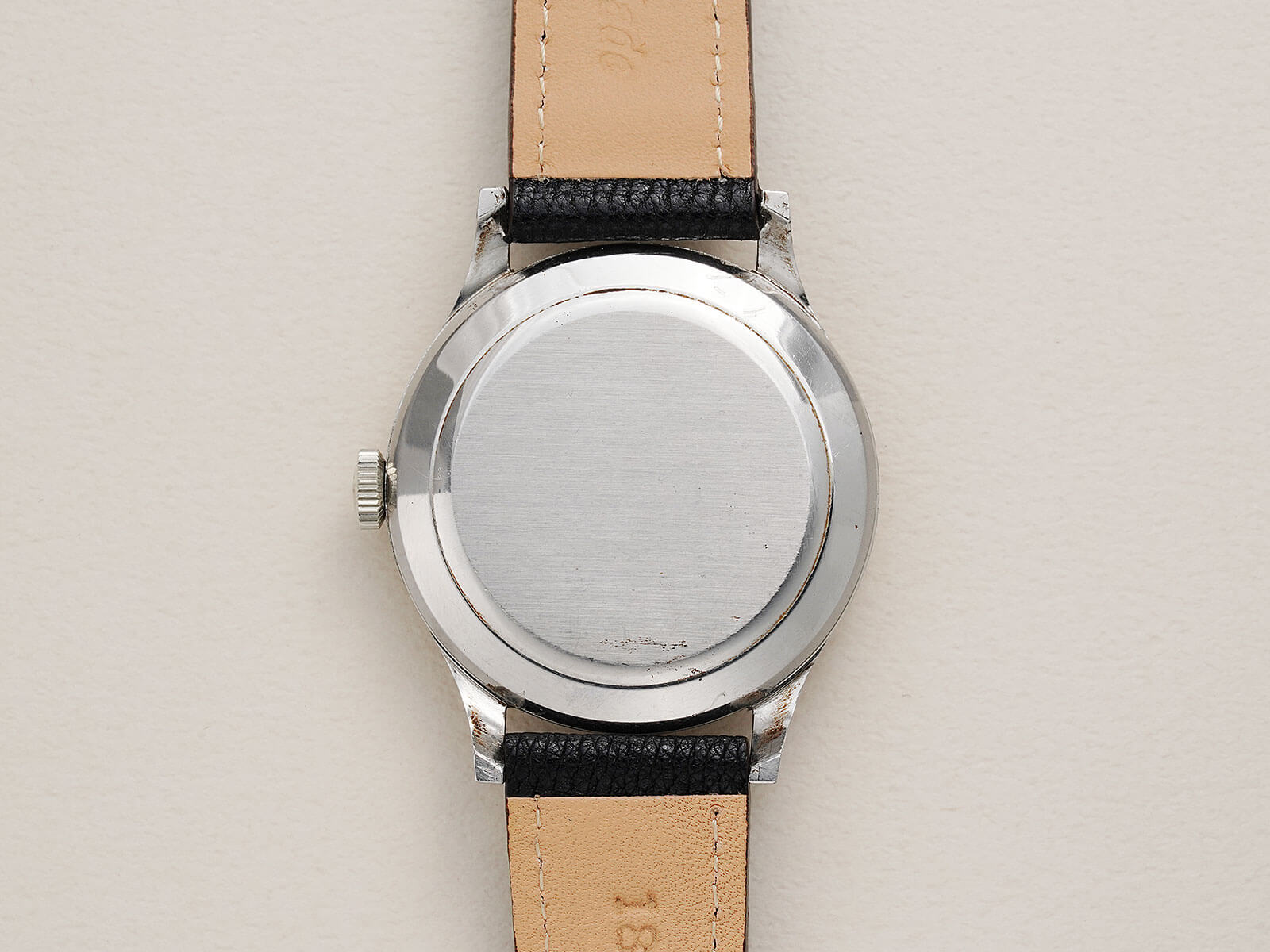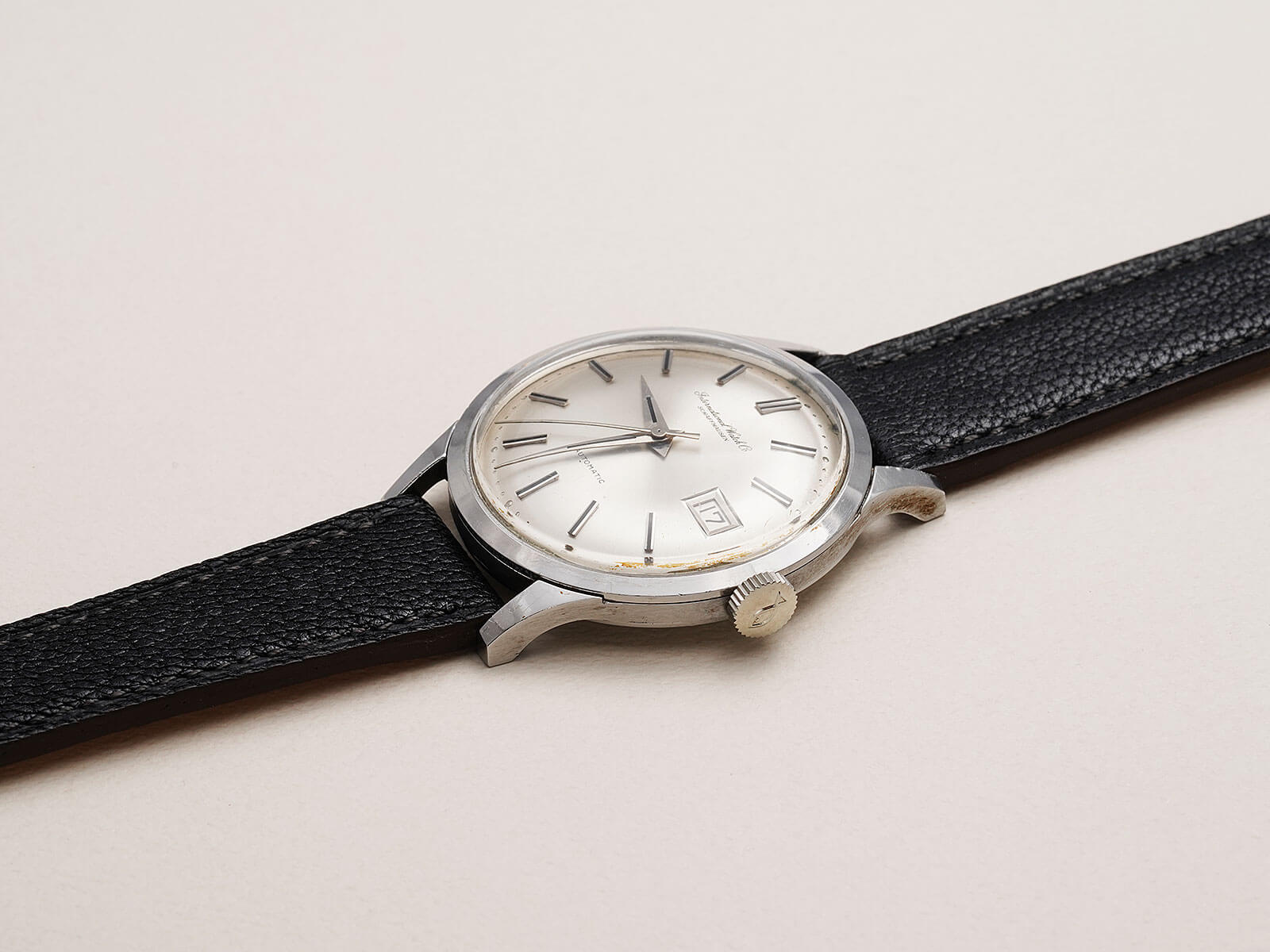 今回は、36.5㎜の大きなステンレス製スナップバック式ケースが特徴的なRefR847Aのご紹介です。綺麗なサンバースト加工のシルバーダイヤルに、オールドインターの特徴である、筆記体ロゴのみの表記とアイコニックな魚リューズ。ミニッツマーカーのドットポイントに、金属のボールを埋め込む[パール・ドロップ手法/Pearl drop]も健在し、職人気質を感じさせる実用性に拘った美しいディテールは、オールドインターの素晴らしさと言えます。