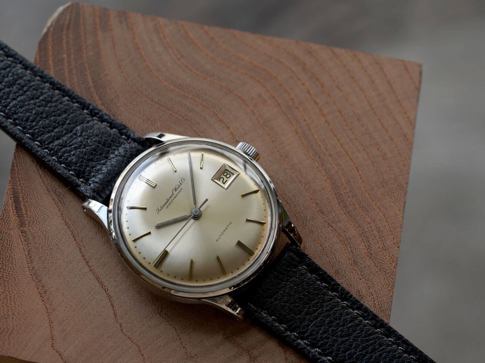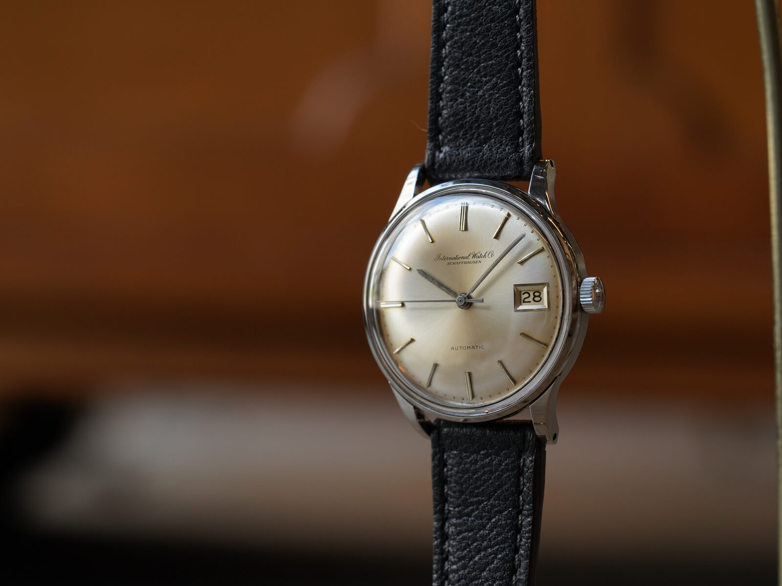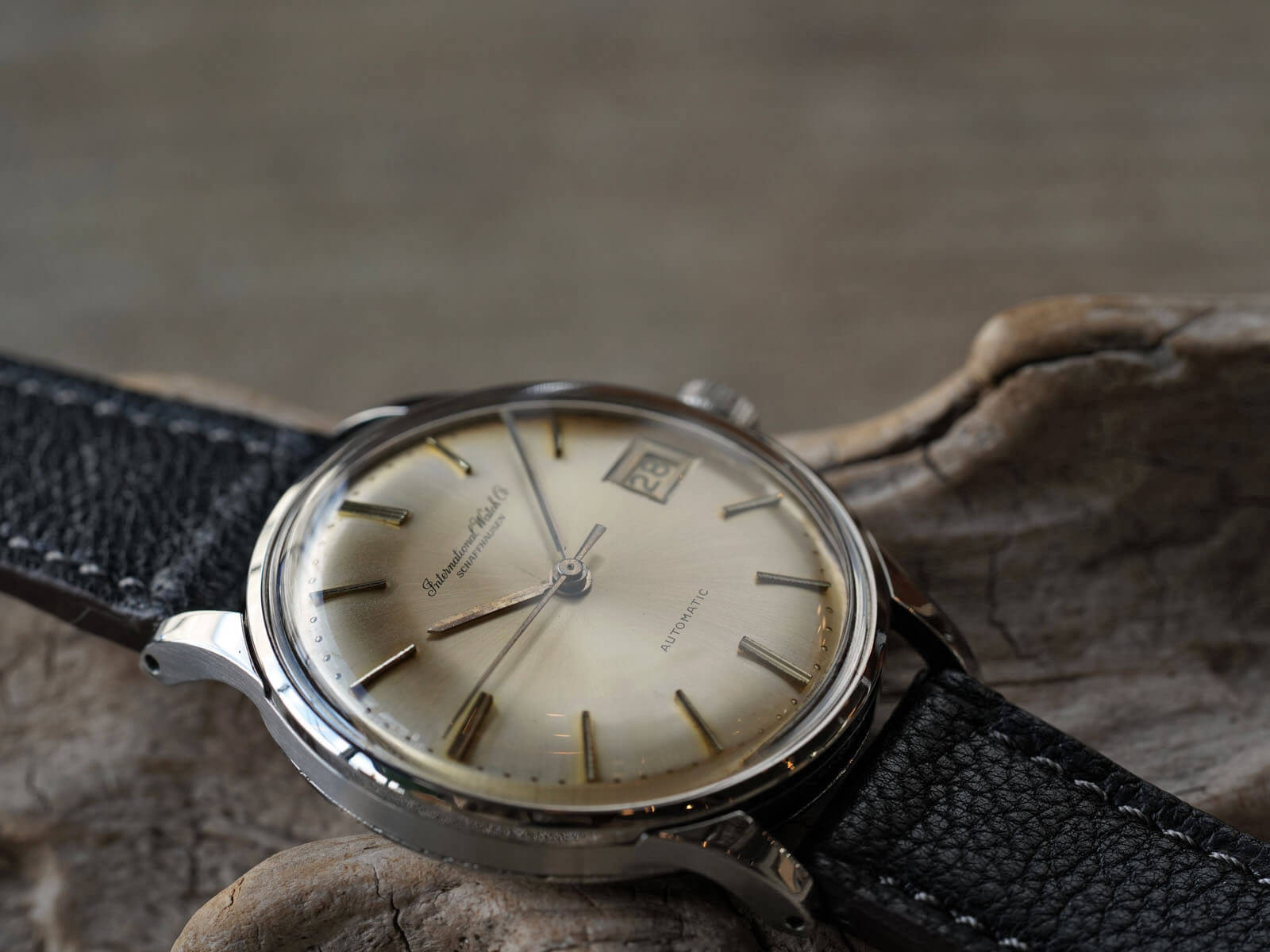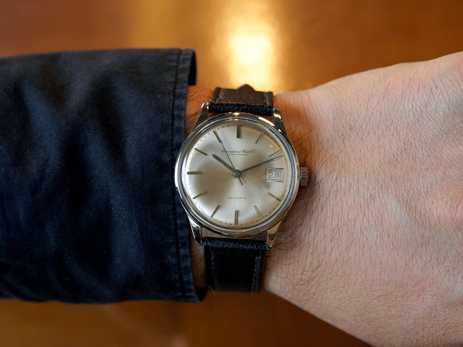今回は、IWCの中でスタンダードなデイト付きのRef809Aをご紹介です。IWCのアプライドロゴとなる以前の証である筆記体ロゴのみの表記に、サンバースト加工のシルバーダイヤルが、経年により風格のある黄金色に変化。オールドインター特有である金属のボールを埋め込まれた、[パール・ドロップ手法/Pearl drop]というミニッツマーカーも健在し、シンプルでありながら実用性を追求された、拘りのあるディテールに味わいも感じさせてくれます。