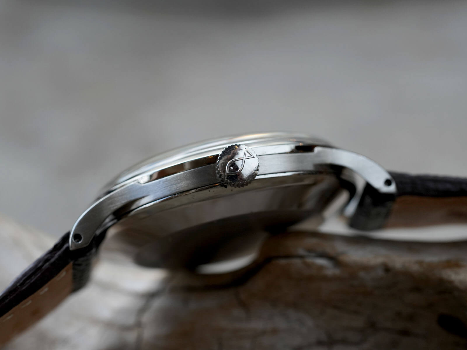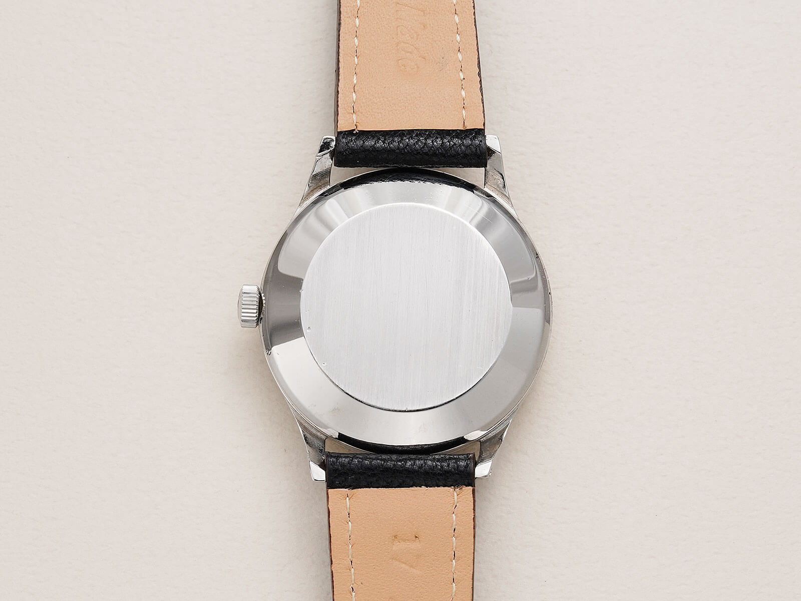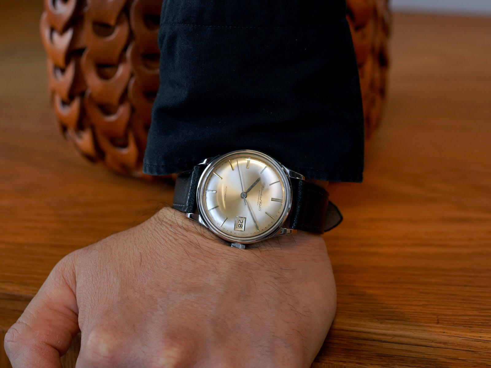 レザーブレスには、当店オリジナルのゴートスキンレザーのブラックをセレクト。シンプルでありながら、独特な風合いも味わえる素晴らしいモデルです。是非お手に取ってご覧ください。
