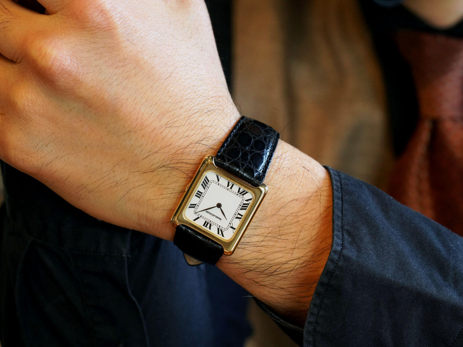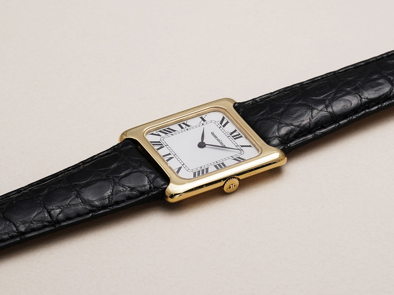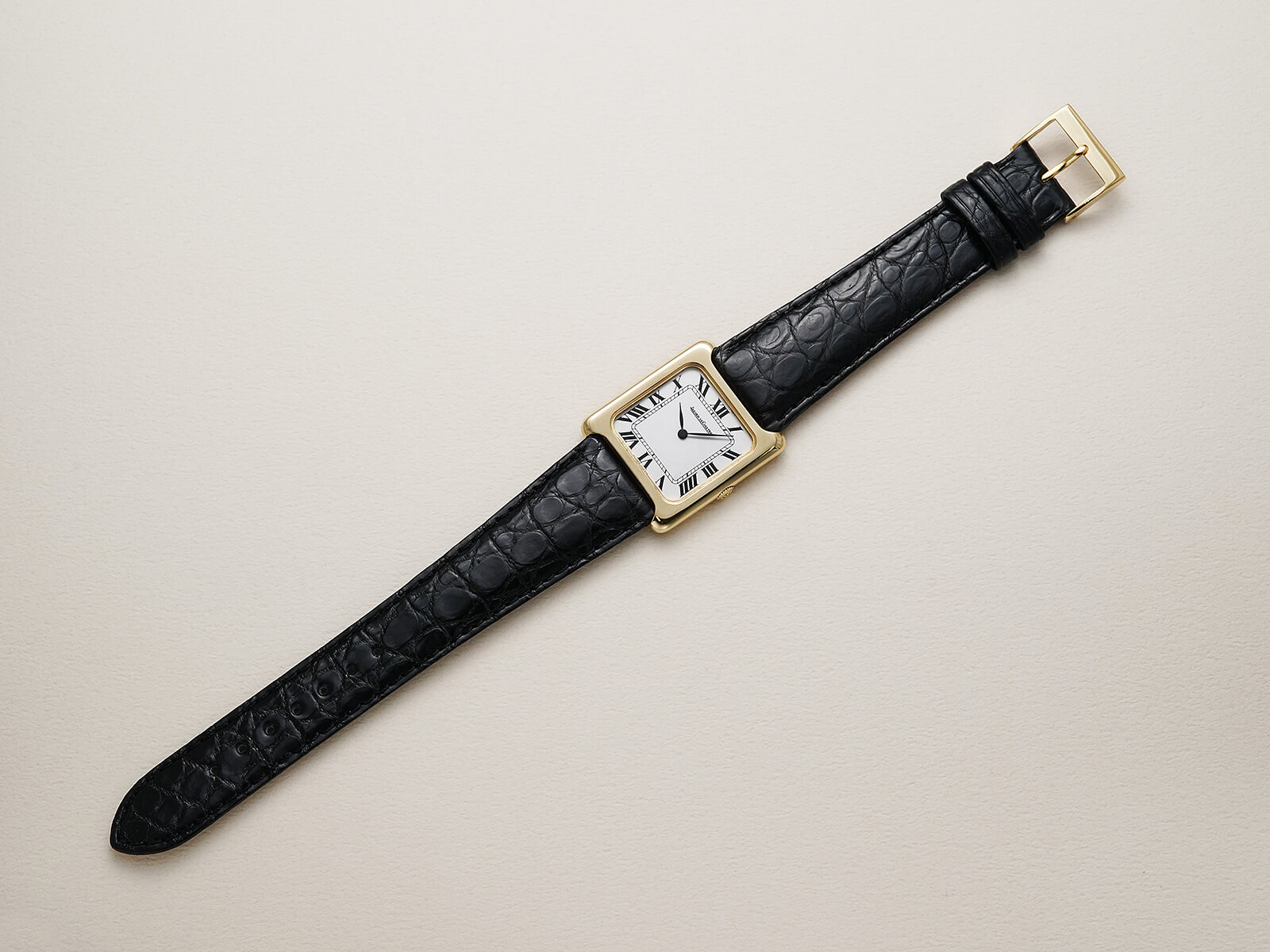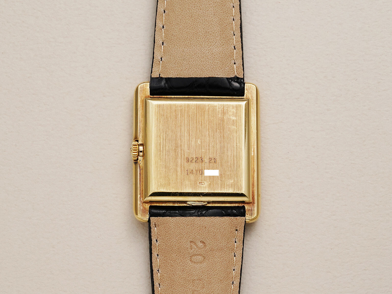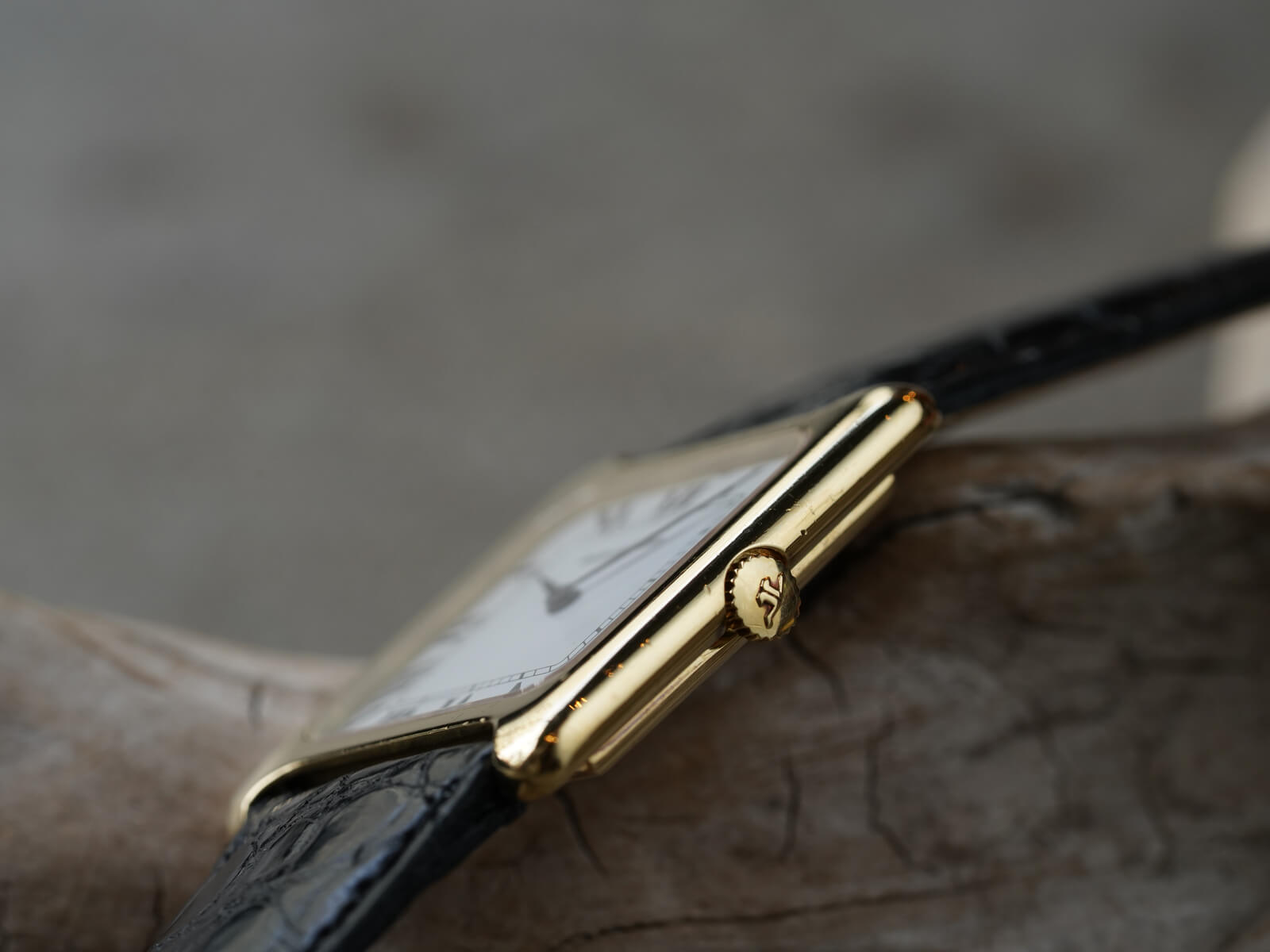 今回は、均整の取れたアールデコの概念を感じる事のできるRef.9223-21のご紹介です。ソリッドゴールド製スナップバック式の独特なラインで形成された、美しいスクエアケースが魅力的な一本。シンプルながらにエレガントさを演出する、ホワイトローマンダイヤルとの組み合わせが、デザインの美しさを強く印象づけてくれる逸品です。
