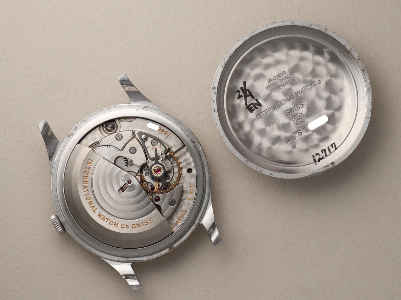 ムーブメントは、キャリバー853ペラトン式自動巻きムーブメントを搭載。この時代のIWCのムーブメントは、細部にわたり丁寧な仕上げが施されているため、とても耐久性に優れ、IWCの代表的モデル、インジュニアにも搭載された名機であると同時に、パテックと同等の評価をされる存在でもあります。