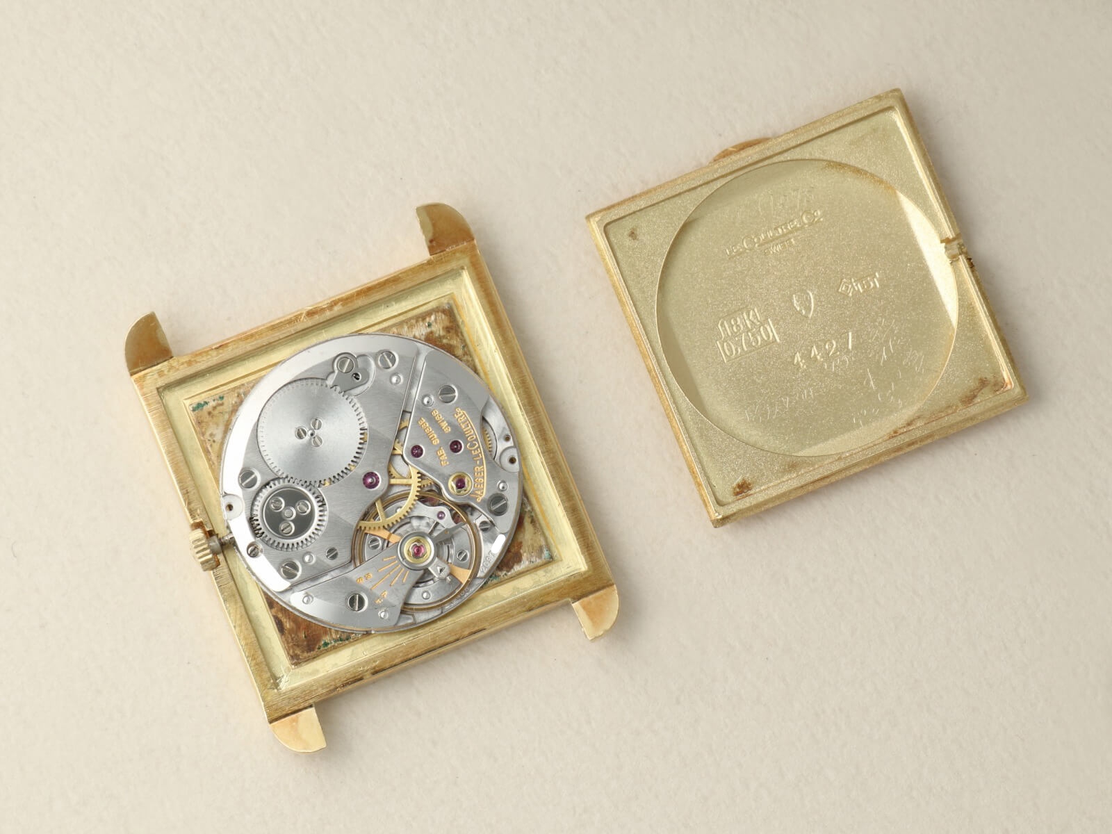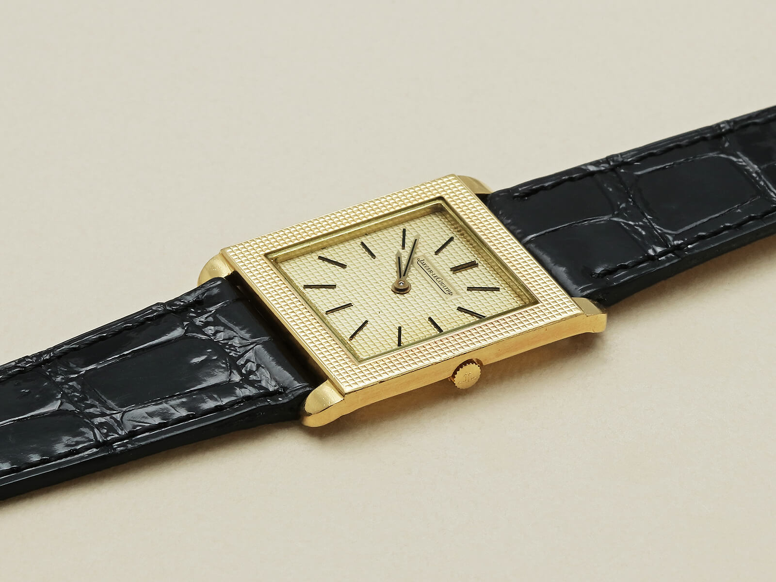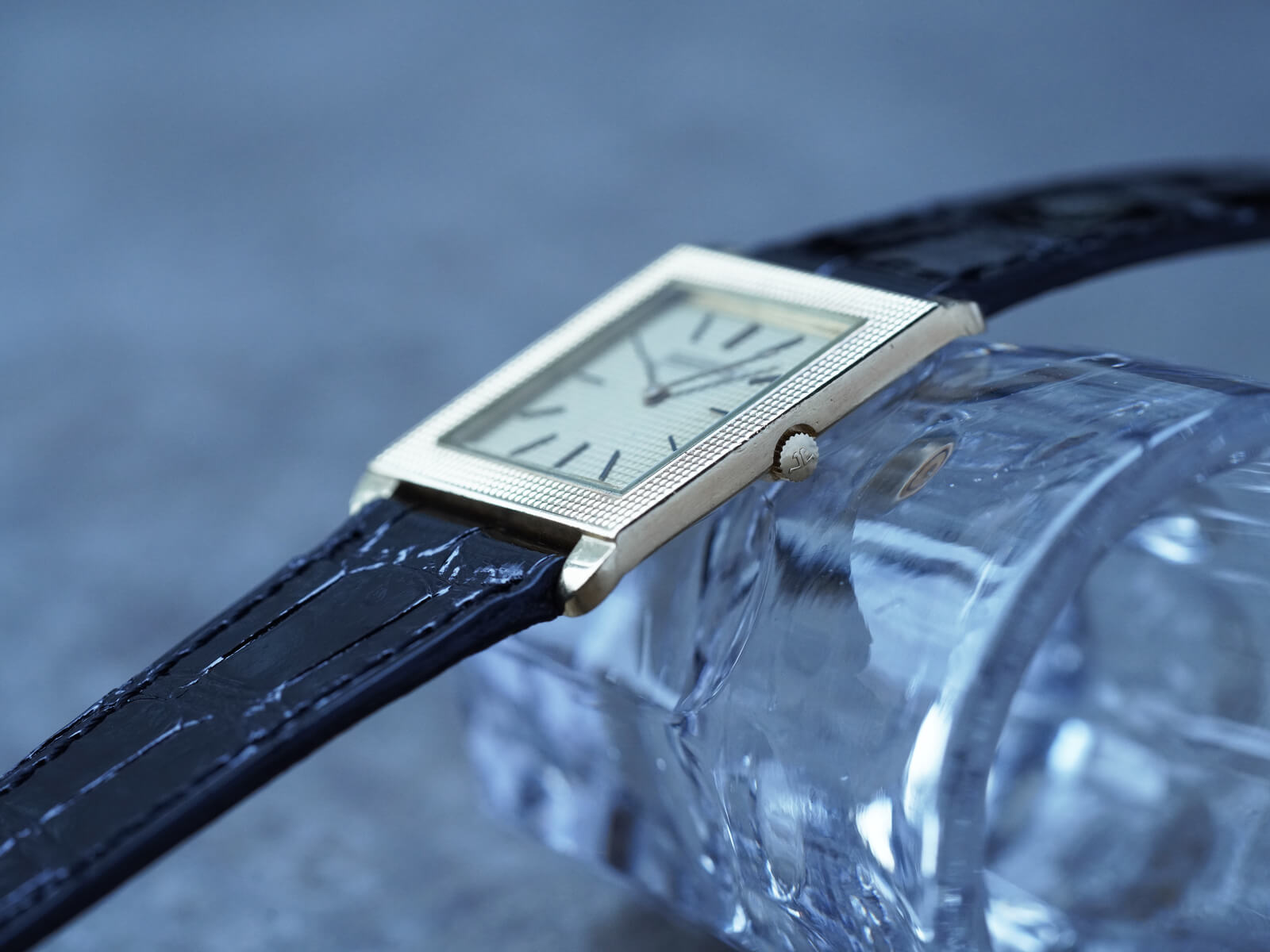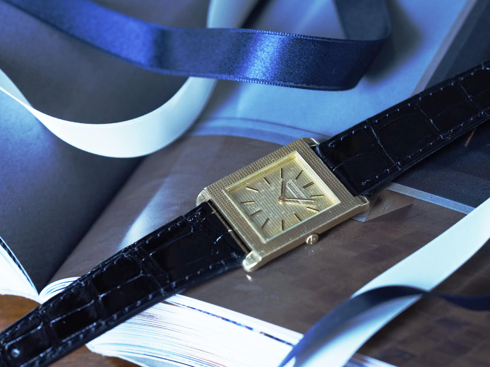 今回は、スクエアケースの独特な美しさが印象的なモデルRef.4427のご紹介です。厚さ5mmの薄型イエローゴールドケースやダイヤルにに、存在感際立つタペストリー加工が施されたことで、お手元に特別な存在感を演出してくれる秀逸の一本。細部まで施されたレベルの高い仕上げが、強い拘りを感じさせてくれる素晴らしいモデルです。