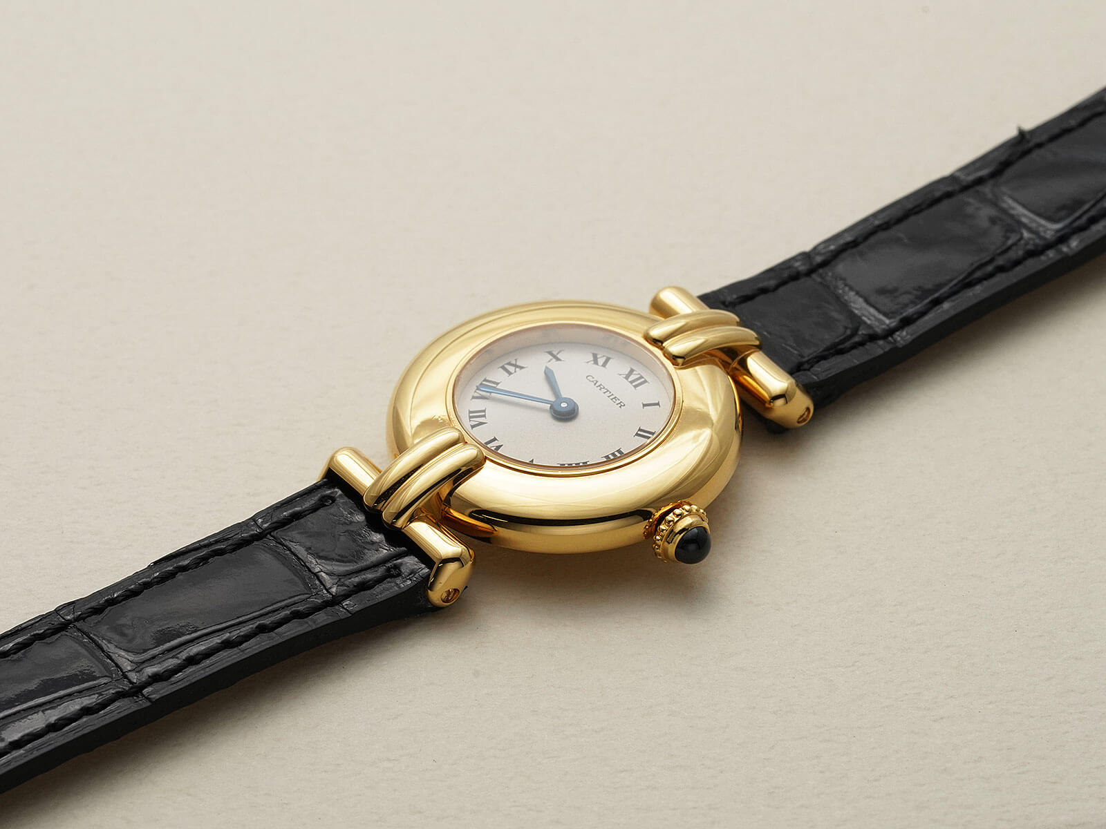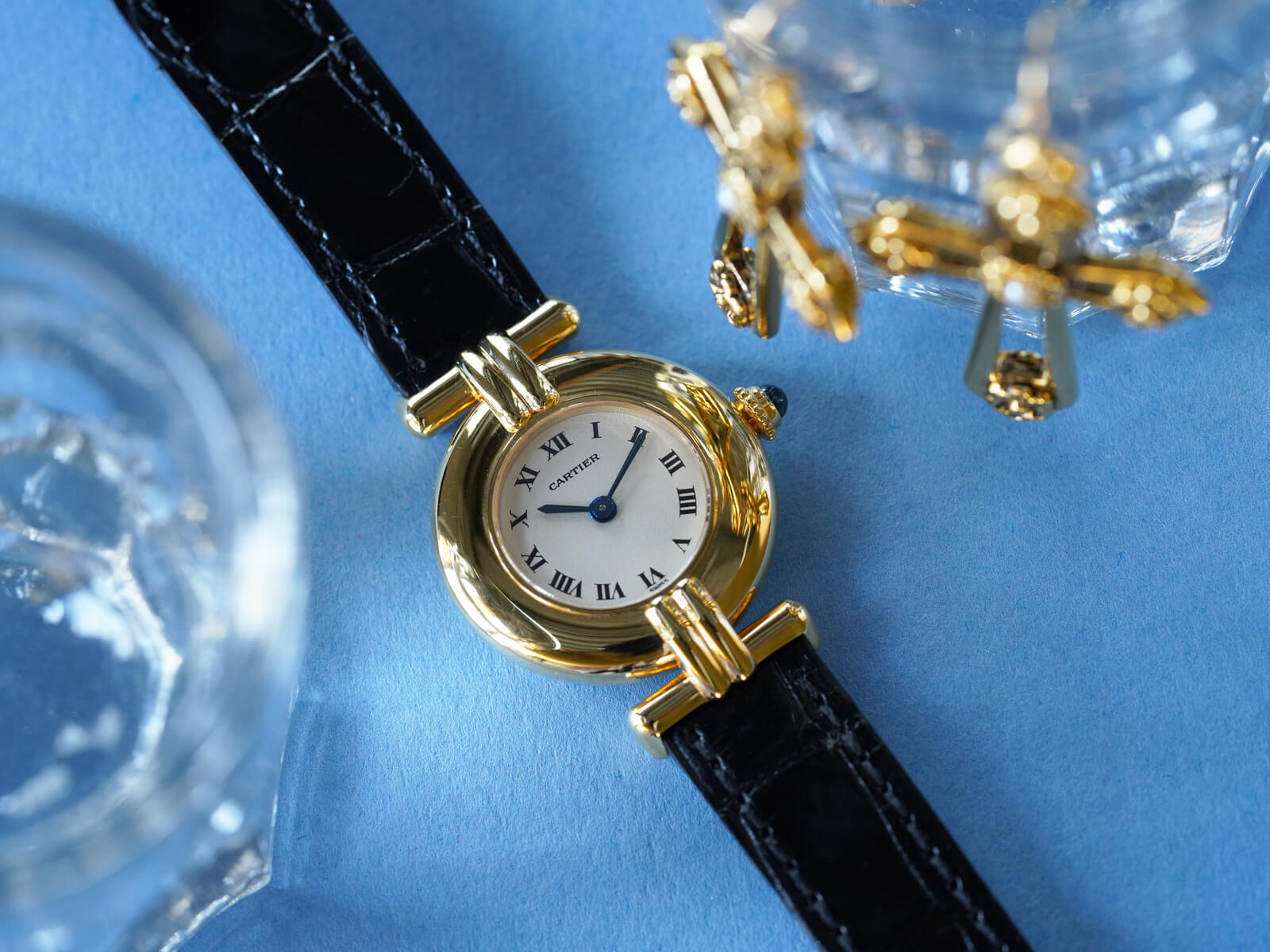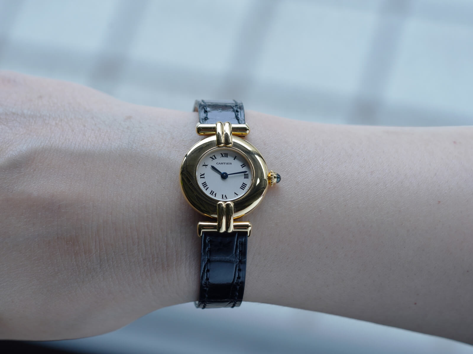 古代ローマの円形競技場(コロッセオ)から名付けられた[Colisee / コリゼ]。立体的なダブルラインのラグデザインがクラシックなディテールを感じさせてくれる、カルティエらしいエレガントな時計です。