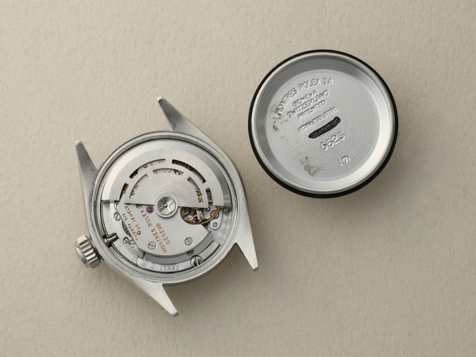 今回は、シンプルでミニマルなデザインのモデル、Ref.6618のご紹介です。ノンデイトのすっきりとしたフェイスデザインに、サンバースト加工の綺麗なシルバーダイヤル、バーインデックスにペンシルハンドの組み合わせで凛々しさを演出。インデックス両端のカッティング部分が煌めきを放ち、上品さも感じさせてくれる一本です。