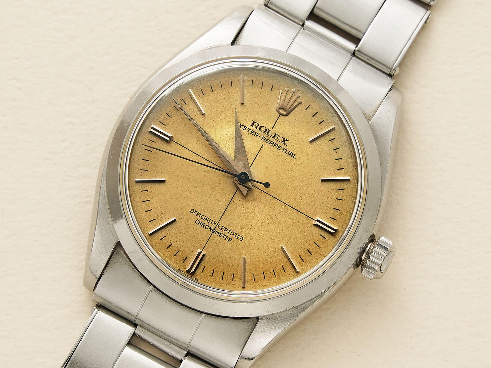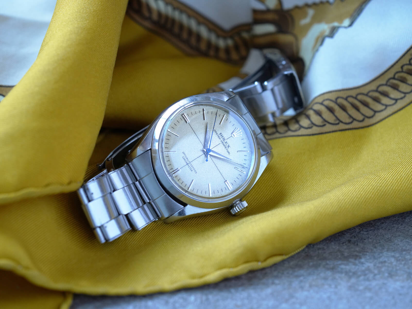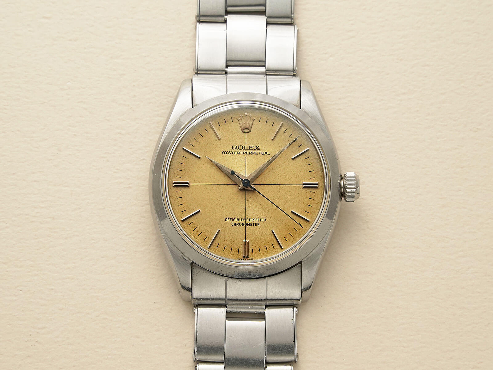 防水性と防塵性を兼ね備えた「オイスターケース」と、革新的な自動巻き「パーペチュアル機構」というロレックスを代表する発明が使われている[Oyster Perpetual / オイスターパーペチュアル]。同ブランドの中では最もシンプルなデザインで人気を博すシリーズです。