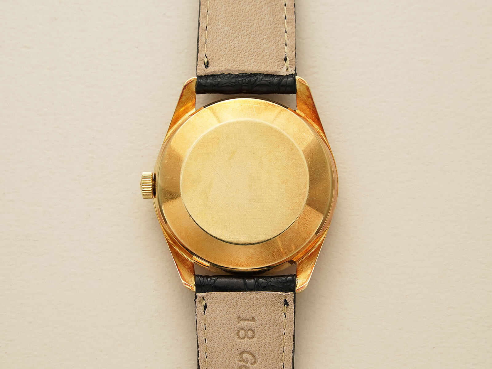 ムーブメントには、自動巻きキャリバー8541を搭載。名機キャリバー854にデイト機能を加えた[Peraton Automatic / ペラトン式自動巻き]85系の最終形モデルです。23:45と24:00を行き来することで日付の早送りが可能な、使いやすく実用性の高い歴史的発明のムーブメントでもあります。