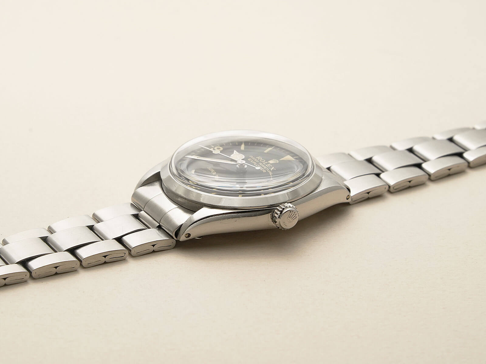 ブレスレットには、純正ステンレス製オイスター巻き込みブレスレットをセッティング。ブレスレットの仕様整合性は合っておりますが、1970年代の純正ブレスに交換がされております。人気の代表的モデルとして、その魅力を堪能することができる至極の一本。ごまかしがきかないシンプルな美しさで、格別なオーラを感じさせてくれる素晴らしい時計です。是非お手に取ってご覧ください。