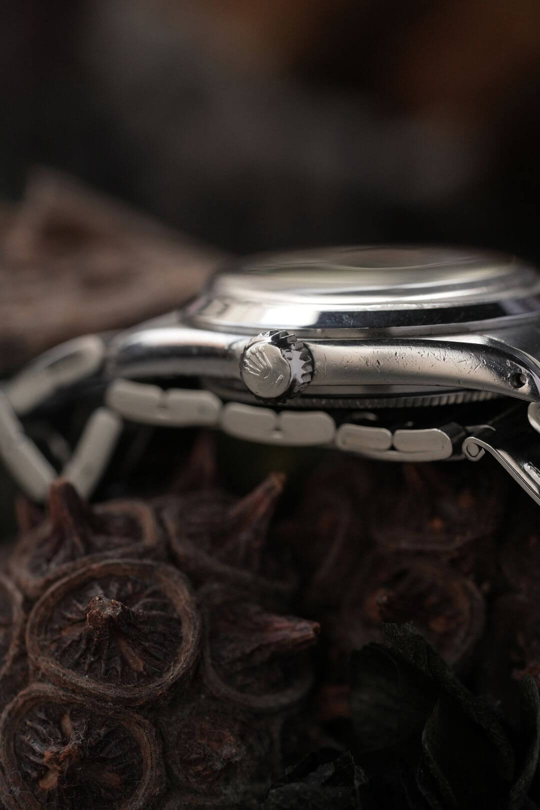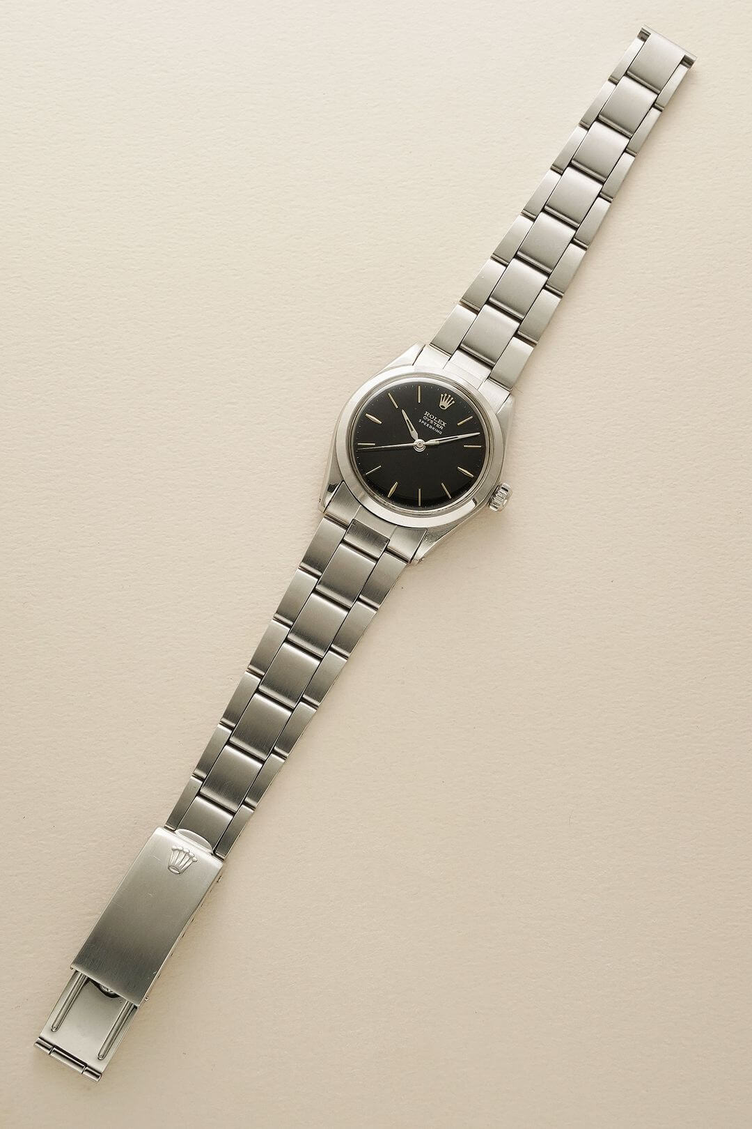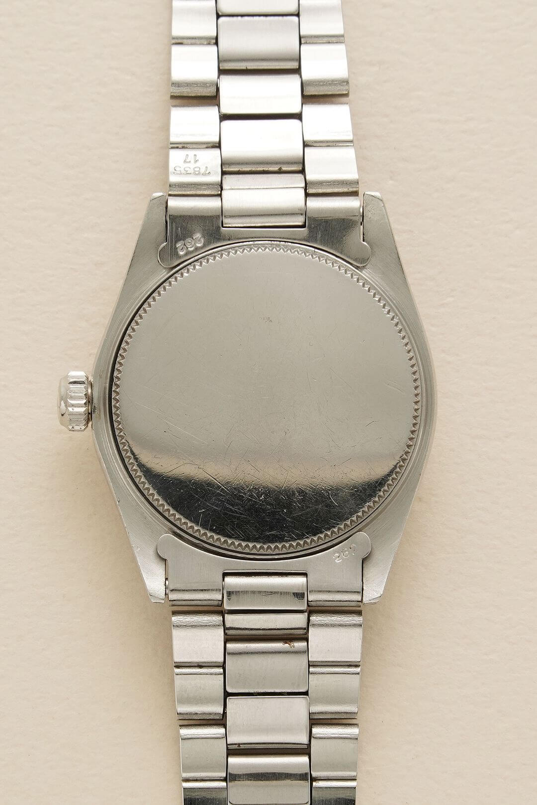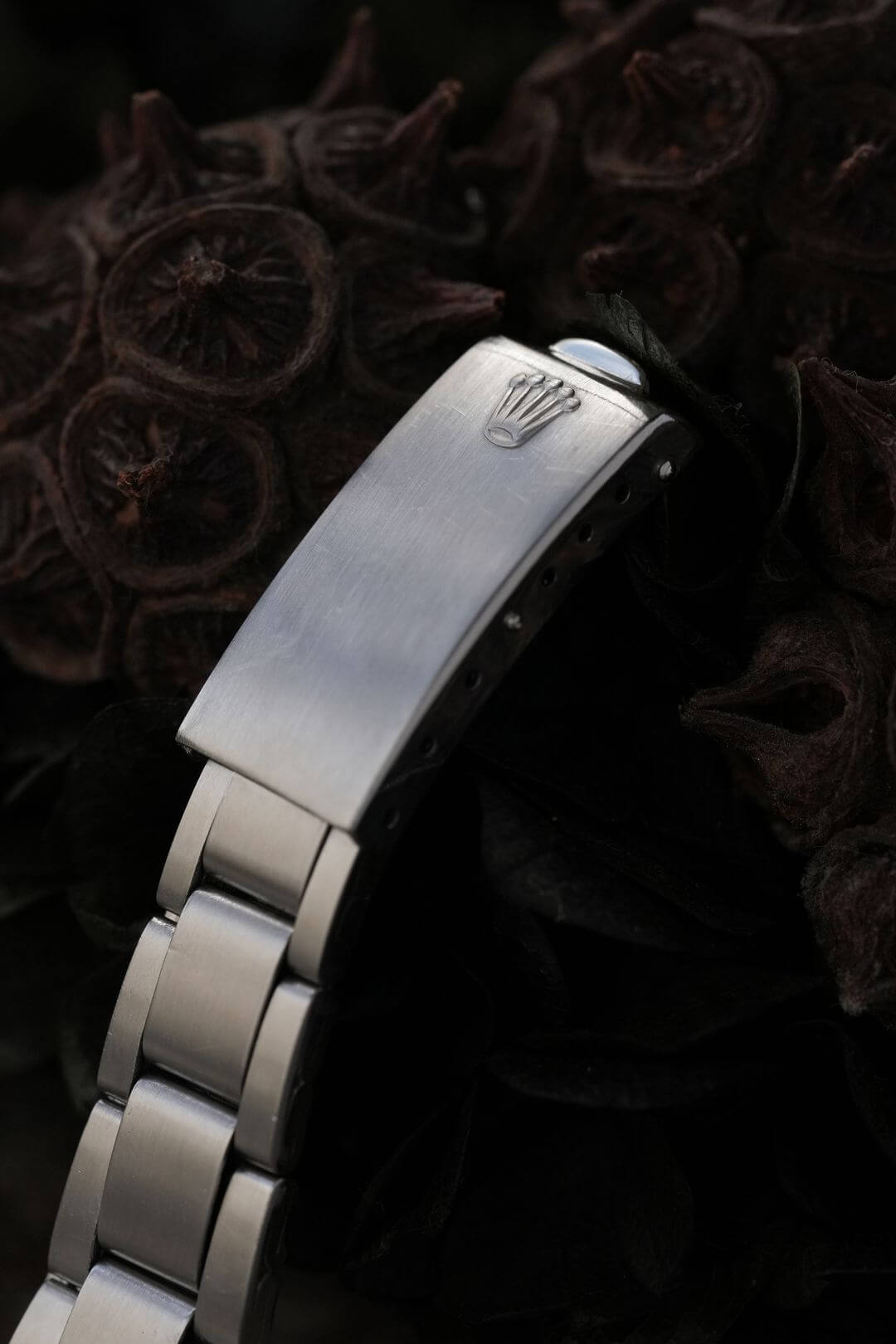 ブレスレットには、ステンレス製のロレックス純正オイスター巻き込みブレスレットをセッティング。