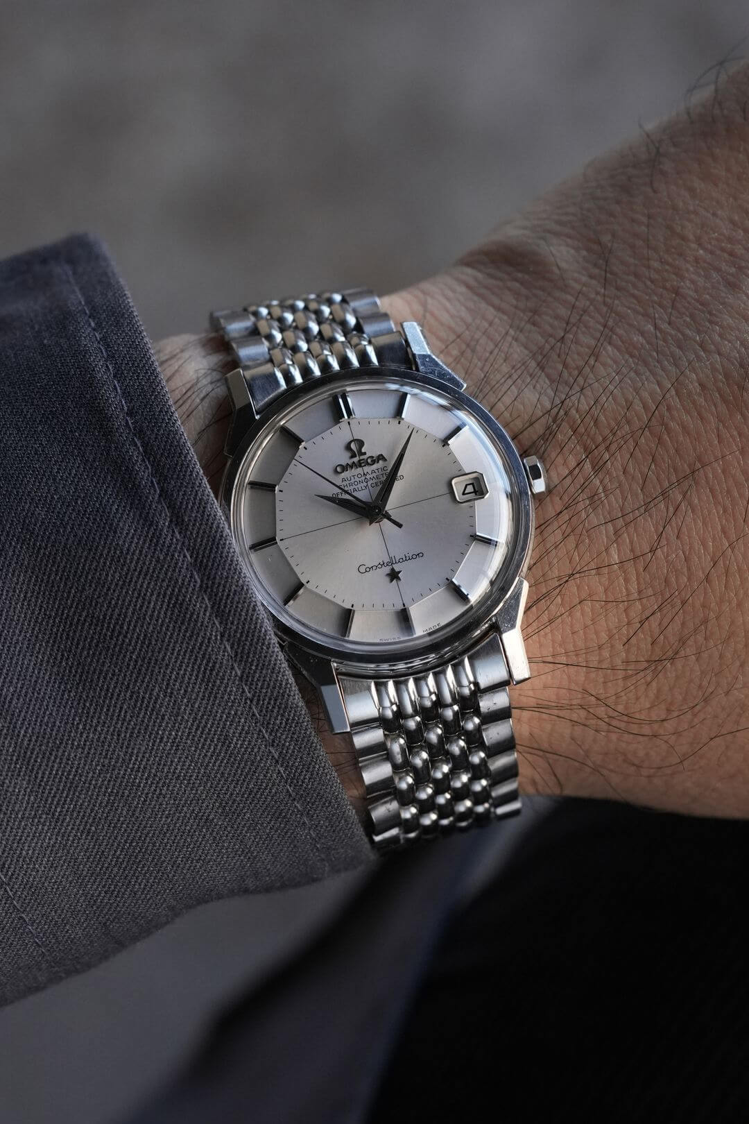 今回は、紳士的で上品な雰囲気を漂わせる、Ref. 168.005のご紹介です。オメガが生産した12角モデルは製造期間が約10年と短く、コンステレーション初期の証として、多くのアンティークオメガ愛好家を魅了してきました。さらに、裏蓋には「天文台の観測ドーム」の刻印が施されており、時計の精度を競う天文台コンクールで常に優秀な成績を収めてきた証でもあります。