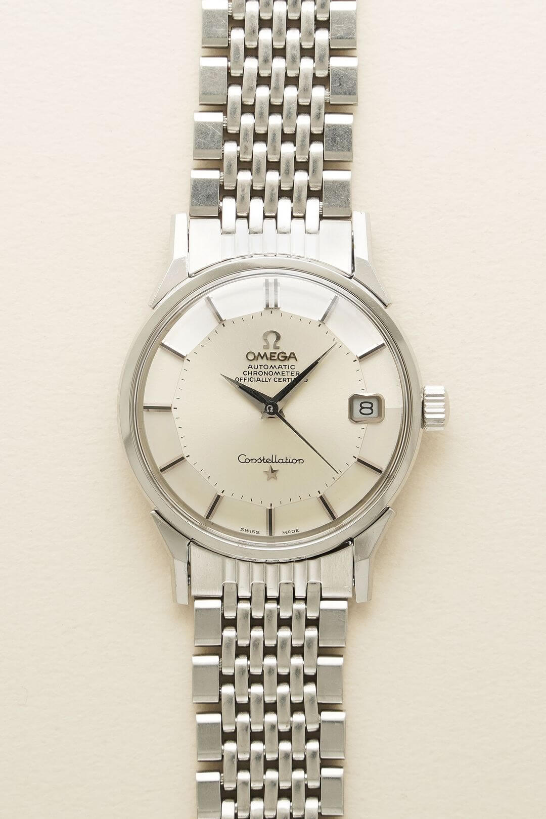 今回は、シンプルでありながらスポーティーな要素も併せ持ち、伝統的な落ち着きと美しさを兼ね備えたモデル、Ref.168.005SPのご紹介です。オメガが製造した12角モデルは、約10年という短い期間しか生産されなかった希少なモデルであり、コンステレーション初期の象徴として、多くのアンティークオメガ愛好家を魅了してきました。さらに、裏蓋には「天文台の観測ドーム」が刻まれており、時計の精度を競う天文台コンクールで常に優秀な成績を収めてきたことを物語っています。
