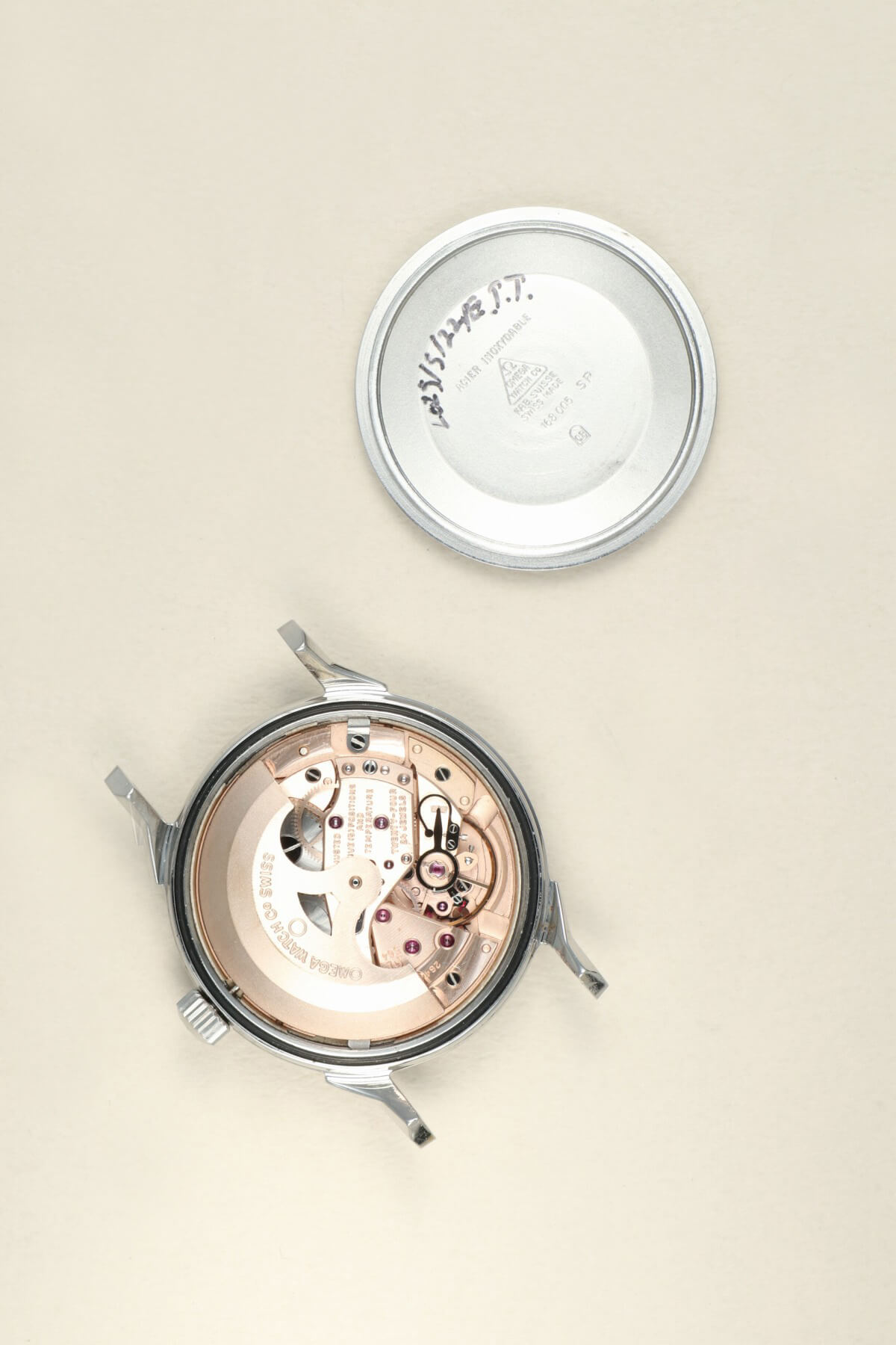 ムーブメントは、自動巻きキャリバー564を搭載。スイス公認のクロノメーター規格を通過しており、60年代後期のムーブメントらしく、デイトのクイックチェンジ機能が付いたムーブメントです。