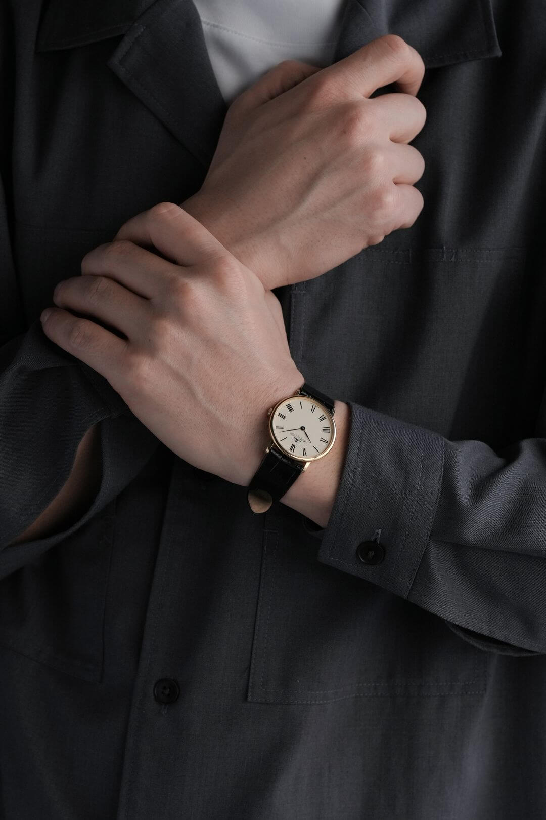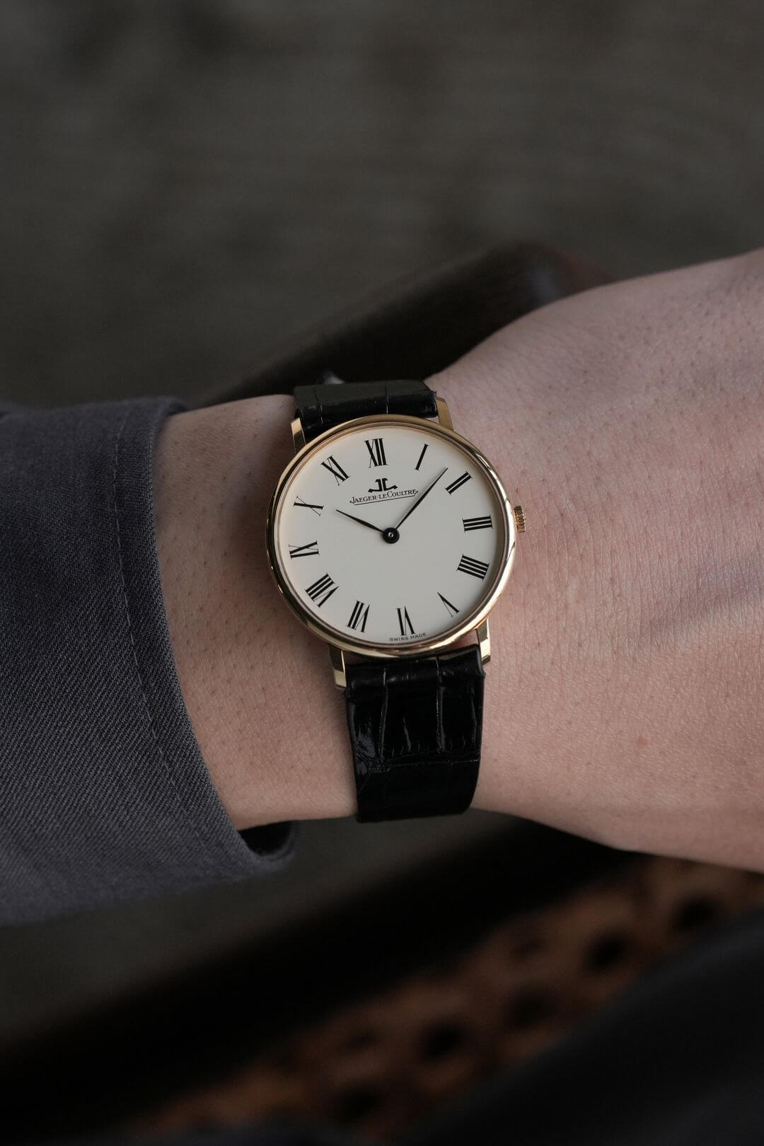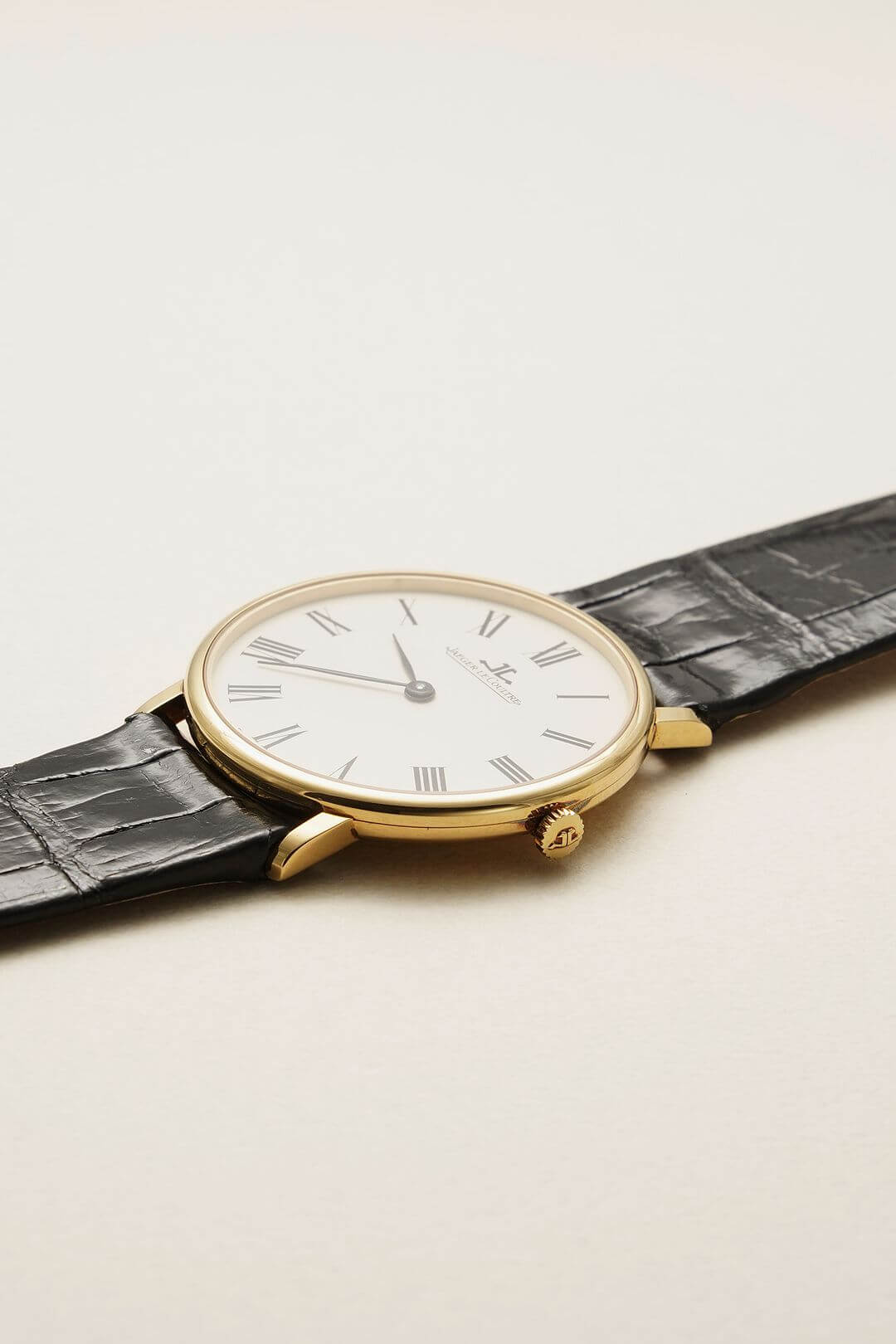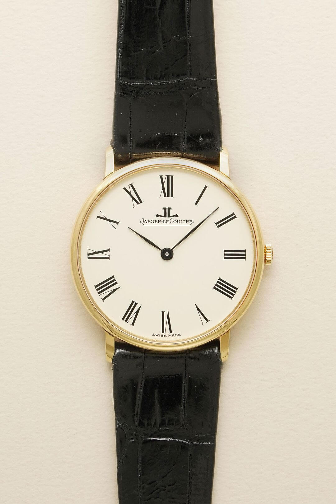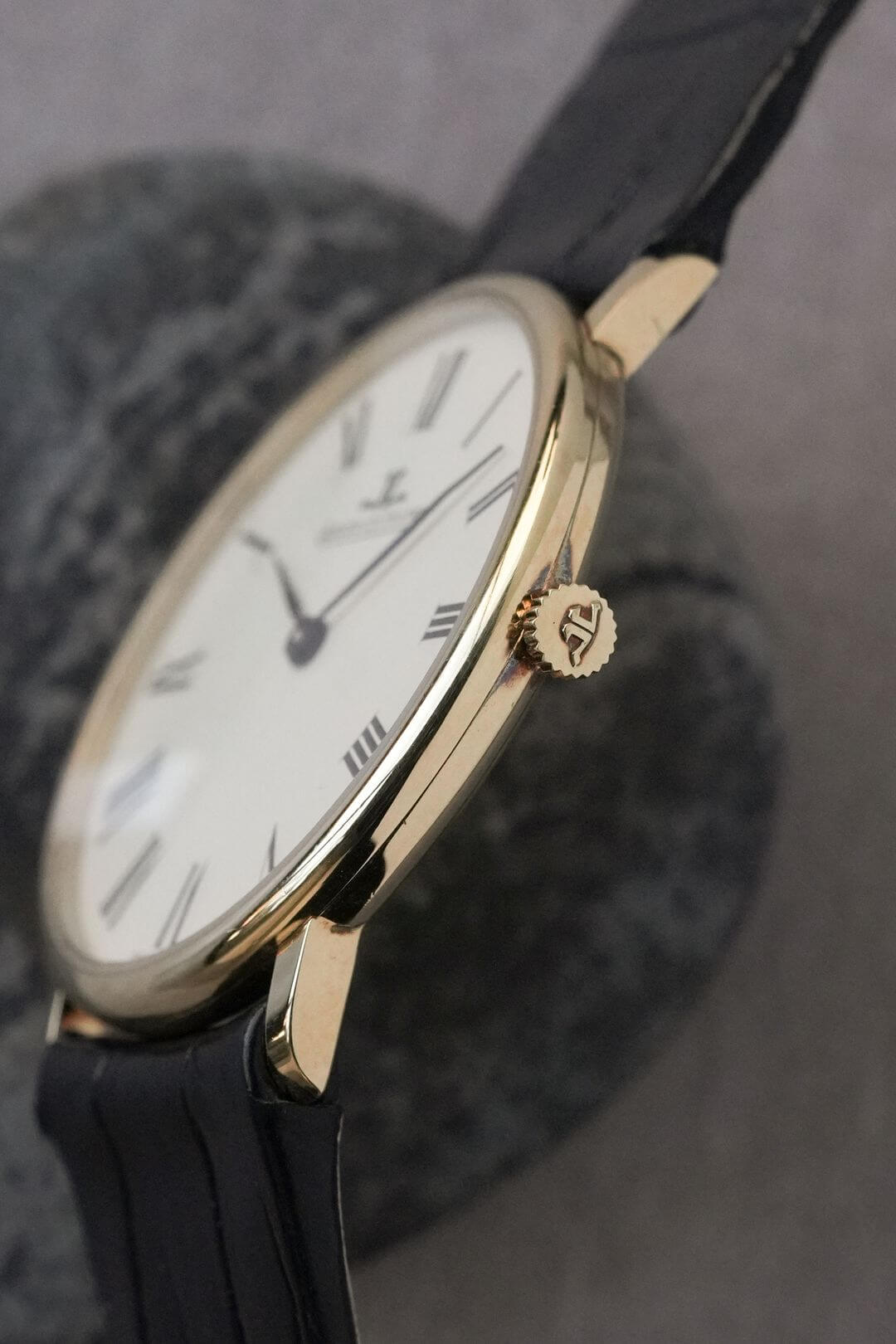 今回は、薄型のイエローゴールドケースが魅力のモデル、Ref.9124-21のご紹介です。ホワイトダイヤルにローマンインデックス、そして繊細なリーフハンドが美しく調和し、ドレスウォッチの理想形ともいえるデザインに仕上がっています。手元に上品な華やかさを添えてくれます。
