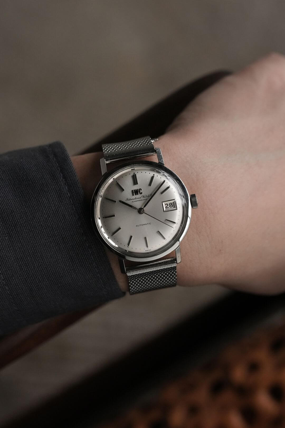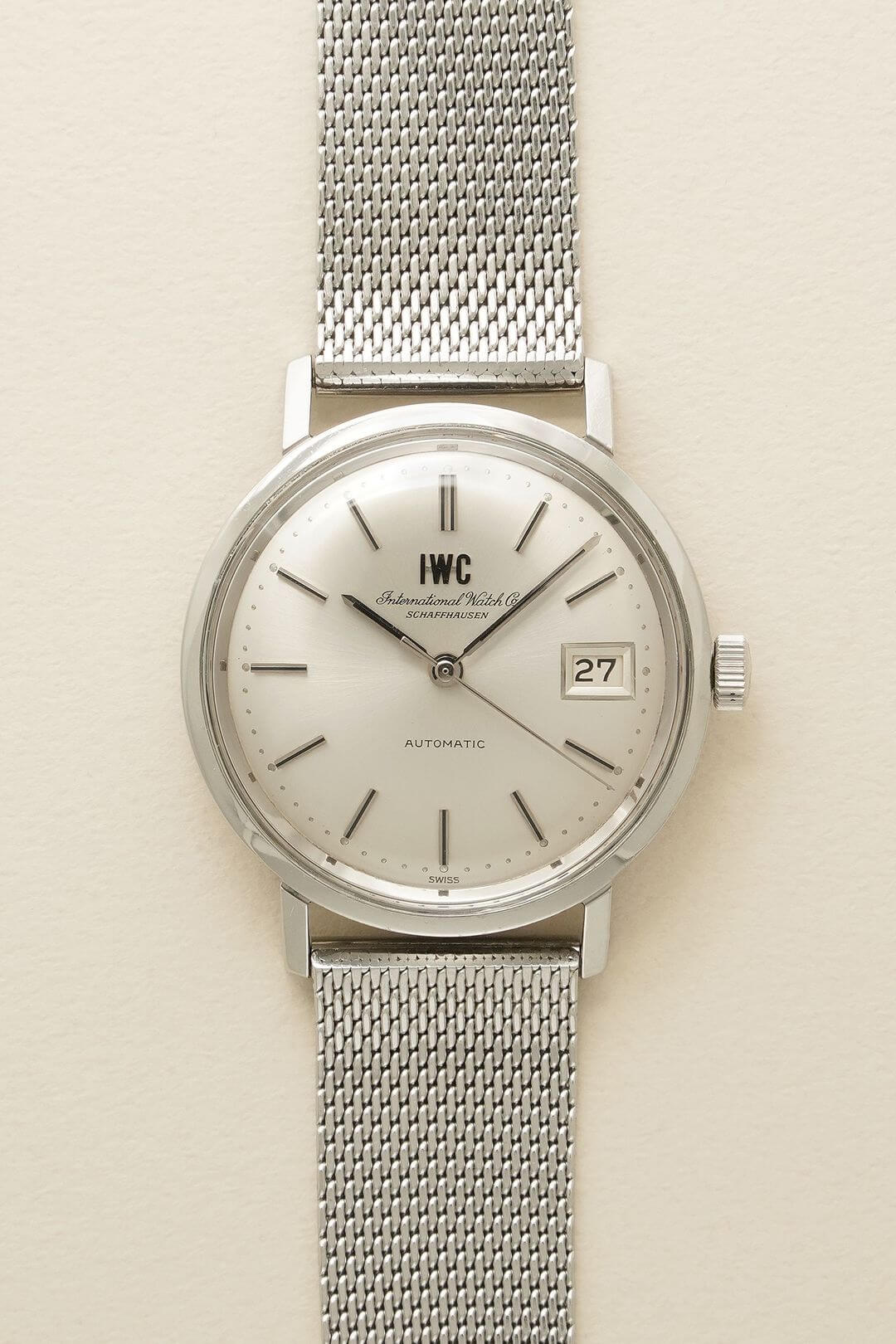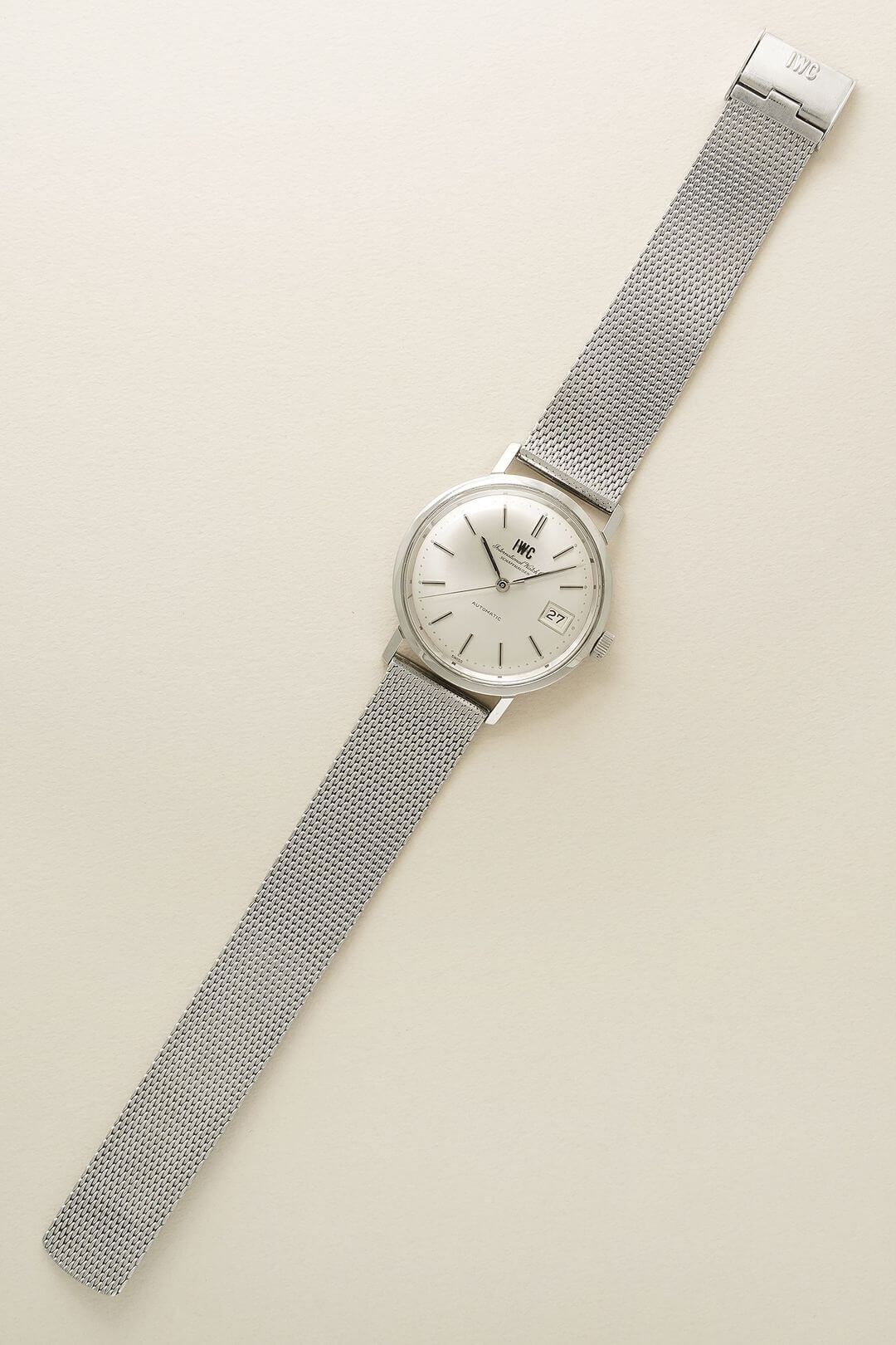 ブレスレットには、ステンレス製のIWC純正メッシュベルトをセッティング。季節や気分に合わせてレザーベルトなどへ付け替えを楽しめるほか、予備のブレスレットとしてお持ちいただくのもおすすめです。